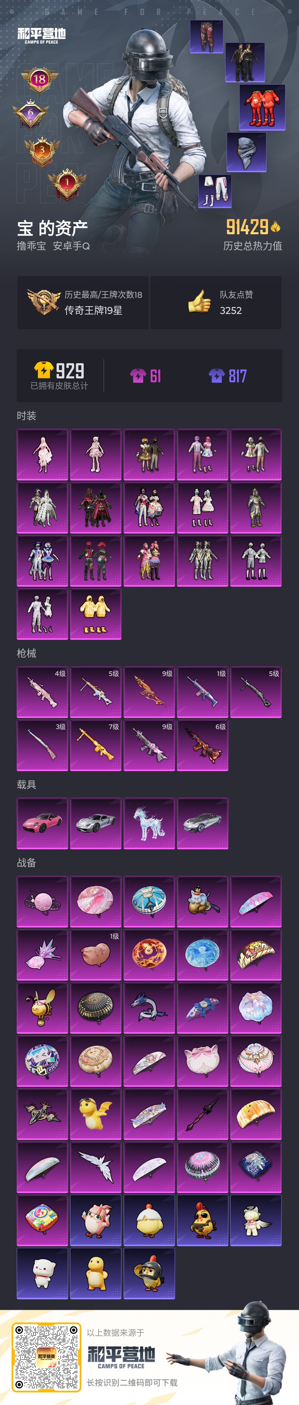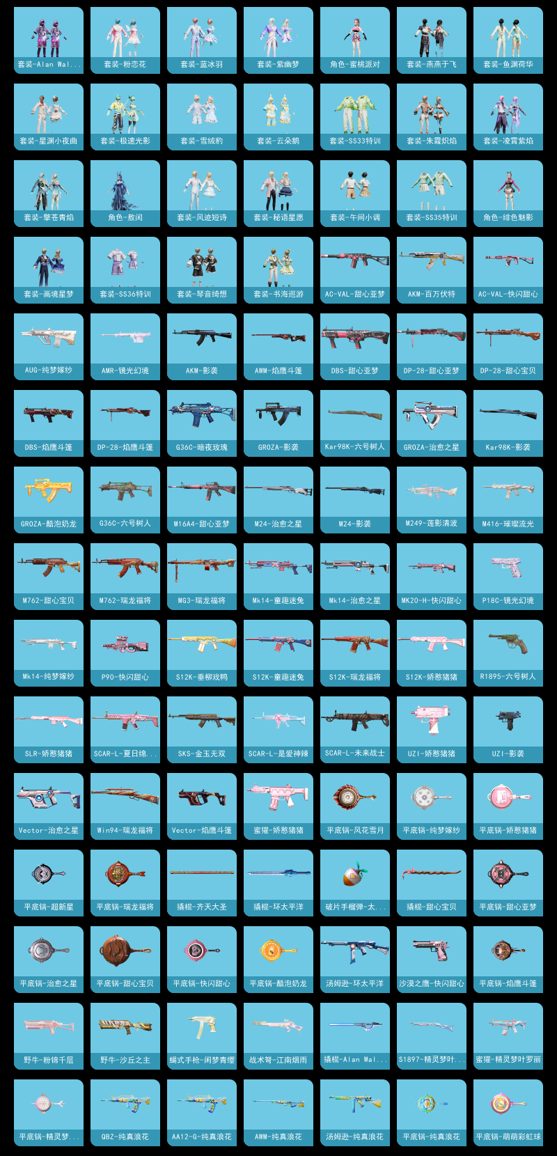 【和平精英】【txhp6860】17粉装,9特效呛,4载具,历史最高段位:传奇王牌19星 王牌印记18次 热力值:91449,156套装,243呛械,349装备,145战备;套装:套装-甜心巧克力,套装-宝贝奶油派,套装-天使彩虹糖,套装-金曜白虎,套装-缤纷油彩,套装-放客神游,套装-星空之魅,套装-冰霜白皇,套装-炙焰红王,套装-绚金战神,套装-岚岚物语,套装-镜光幻境,套装-蜜语绒猫,套装-傲傲奶龙,套装-星穹咏叹调,角色-羊梦糖心,角色-绝对恒星,套装-黄色运动,套装-黄色伏地魔,套装-白色伏地魔,套装-黑色伏地魔,套装-竞技名士,套装-酒红色名流,套装-猛禽,套装-长空猛禽,套装-漫步者,套装-海岛探路者,套装-旭日情侣,套装-赤蝎幽灵,套装-都市猎人,套装-浪漫天命,套装-春日漫步,套装-沙漠毒蛇,套装-鹰眼刺客,套装-冰冻风暴,套装-摇滚舞王,套装-街头潮人,套装-魅力单车,套装-狂战萌兔,套装-幻世保卫者,套装-热血青春,套装-派对绅士,套装-酷潮明星,套装-蓝调潮人,套装-夏日倾情,套装-缤纷果语,套装-龙魂突击队,套装-风暴特警,套装-冰川特警,套装-天网终结者,套装-破蛋小黄鸡,套装-霓虹街区,套装-智慧之神,套装-萌黄之夏,套装-顽皮玉兔,套装-战术大师,套装-ss18特训,套装-治愈之星,套装-科技之星,套装-ss13特训,套装-热情海星,套装-纯真浪花,套装-ss14特训,套装-快乐星愿,套装-ss15特训,套装-ss16特训,套装-ss17特训,套装-瑞龙福将,套装-团圆交子,套装-福星高照,角色-军刀雅典娜,套装-ss20特训,套装-甜心亚梦,套装-虚音幻奏,套装-ss21特训,套装-萌趣咩咩,套装-红熊茄茄,套装-花羊椰椰,套装-绯格组合,套装-王牌教练,套装-柠萌假日,套装-华灯初上,套装-龟仙人,套装-ss25特训,套装-惊鸿侠骨,套装-锦衣飞扬,套装-云霞荷露,套装-晨曦薄雾,套装-香桃花海,套装-六号树人,套装-龙的传人,套装-冰河战士,套装-ss26特训,套装-快闪甜心,套装-春光漫游,套装-漫游都市,套装-空岛之星,套装-贝斯之夜,套装-焰鹰斗篷,套装-幽夜迷踪,套装-幻羽潜行,角色-蝶吟花词,角色-湖雨初晴,套装-alan walker电音教主,玩偶服-卖崽青蛙,角色-米开朗基罗,角色-白光莹,角色-冰公主,套装-海盐绵绵冰,套装-小熊娃娃,套装-雏菊兔兔,套装-萝兰蝴蝶,角色-绯色魅影,套装-异域银装,角色-蜜桃派对,角色-俏兔智灵,套装-ss30特训,套装-ss31特训,套装-鱼渊荷华,套装-燕燕于飞,套装-紫幽梦,套装-粉恋花,套装-ss33特训,套装-云朵鹅,套装-ss32特训,套装-青翼流星,套装-蓝冰羽,套装-顶瓜瓜,套装-雪绒豹,套装-狂鲨锋刃,套装-大橘大利,套装-极速光影,套装-星渊小夜曲,套装-炫彩糖果,套装-元气之梦,套装-ss34特训,套装-擎苍青焰,套装-朱霞炽焰,套装-凌霄紫焰,角色-敖闰,套装-薄荷星砂,套装-ss35特训,套装-午间小调,套装-秘语星愿,套装-风迹短诗,套装-琴音绮想,套装-粉黛兰香,角色-超感刻度,套装-画境星梦,套装-书海巡游,角色-甜心蒙太奇,套装-阳光菠萝,套装-ss37特训,套装-ss36特训,套装-雪国风尚,套装-萌鸡速递;呛皮:aug-终结者,aug-纯梦嫁纱,aug-天降萌叽,aug-异域银装,aug-绝对恒星,aug-冰晶雪宝,aug-紫晶流影,mk47-乌木金纹,mk47-风迹短诗,akm-生命誓言,akm-影袭,akm-百万伏特,akm-破晓战魂,akm-涂鸦街区,akm-霓彩脉冲,6级m416-风花雪月,9级m416-超新星,m416-蓝色火焰,m416-糯团青竹,m416-璀璨流光,m416-魔童闹海 敖闰,蜜獾-娇憨猪猪,蜜獾-精灵梦叶罗丽,蜜獾-风迹短诗,蜜獾-冰澜龙吟,蜜獾-乌木金纹,groza-影袭,groza-治愈之星,groza-彩虹符号,groza-酷泡奶龙,1级scar-l-童趣迷兔,9级scar-l-魔童闹海 哪吒,scar-l-未来战士,scar-l-夜灯,scar-l-夏日绵绵冰,scar-l-炫彩节奏,scar-l-彩虹符号,scar-l-是爱神辣,scar-l-绊爱,scar-l-绿洲时空,famas-霓彩脉冲,famas-乌木金纹,ace32-画境星梦,ace32-冰晶雪宝,g36c-暗夜玫瑰,g36c-六号树人,g36c-乌木金纹,q-纯真浪花,m16a4-甜心亚梦,m16a4-冰河战士,m762-甜心宝贝,m762-瑞龙福将,m762-雏菊兔兔,m762-云朵鹅,ac-val-甜心亚梦,ac-val-快闪甜心,arx-凌霄紫焰,3级kar98k-巳巳如意,kar98k-影袭,kar98k-彩虹符号,kar98k-六号树人,kar98k-乌木金纹,m24-影袭,m24-治愈之星,m24-炫彩节奏,莫辛纳甘-兔兔小魔女,莫辛纳甘-风迹短诗,svd-冷漠罗丽,svd-云朵鹅,amr-镜光幻境,amr-喜羊羊与灰太狼,amr-乌木金纹,m200-惊鸿侠骨,m200-罪夜之冕,m200-乌木金纹,awm-雷霆特警,awm-焰鹰斗篷,awm-纯真浪花,awm-乌木金纹,win94-瑞龙福将,win94-乌木金纹,mini14-雏菊兔兔,mk14-童趣迷兔,mk14-治愈之星,mk14-乌木金纹,mk14-纯梦嫁纱,mk14-冰河战士,mk14-紫幽梦,mk14-薄荷星砂,mk14-紫晶流影,slr-娇憨猪猪,slr-霓彩脉冲,mk20-h-快闪甜心,mk20-h-狂鲨锋刃,mk20-h-乌木金纹,m417-惊鸿侠骨,m1加兰德-画境星梦,sks-金玉无双,mk12-风迹短诗,mk12-乌木金纹,vss-香桃花海,uzi-影袭,uzi-炫彩节奏,uzi-娇憨猪猪,uzi-天降萌叽,uzi-冰河战士,uzi-啾咪啾咪,uzi-炫彩糖果,野牛-粉锦千层,野牛-沙丘之主,野牛-奶油梦幻熊,野牛-雏菊兔兔,野牛-燕燕于飞,野牛-魔童闹海 敖闰,野牛-乌木金纹,vect-生命誓言,vect-彩虹符号,vect-治愈之星,vect-焰鹰斗篷,vect-燕燕于飞,汤姆逊-环太平洋,汤姆逊-纯真浪花,p90-快闪甜心,p90-玩趣呆呆,p90-乌木金纹,mp5k-画境星梦,mp5k-乌木金纹,ump45-夜灯,ump45-生命誓言,ump45-海盐豹豹,aks-74u-乌木金纹,js9-凌霄紫焰,dbs-甜心亚梦,dbs-焰鹰斗篷,dbs-创世·救赎,dbs-风迹短诗,dbs-乌木金纹,s12k-夜灯,s12k-童趣迷兔,s12k-瑞龙福将,s12k-娇憨猪猪,s12k-垂柳戏鸭,s12k-智耀战神,s12k-霓彩脉冲,spas-12-燕燕于飞,spas-12-狂鲨锋刃,spas-