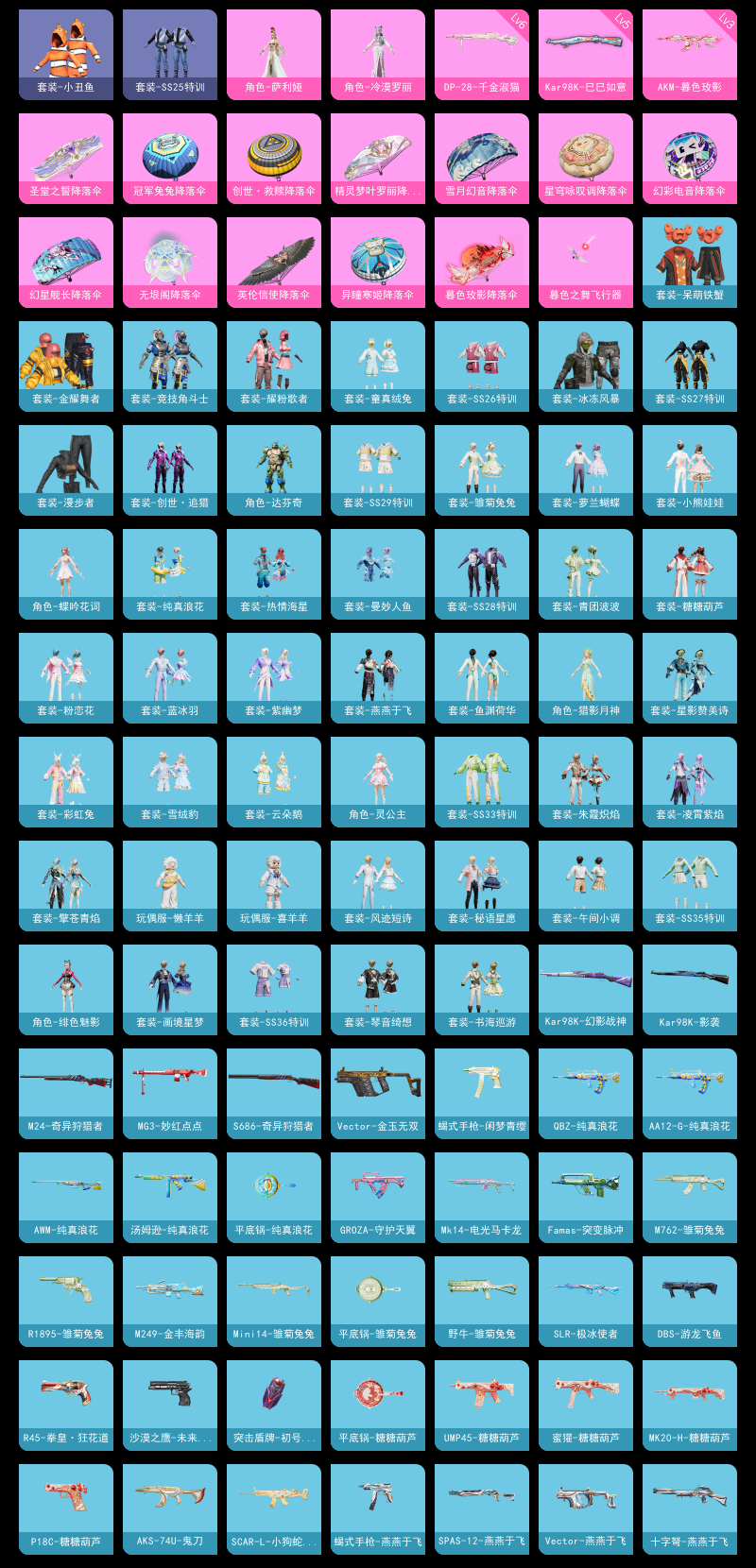 【和平精英】【txhp6851】3粉装,5特效呛,0载具,历史最高段位:传奇王牌13星 王牌印记8次 热力值:50975,139套装,181呛械,243装备,122战备;套装:角色-萨利娅,角色-冷漠罗丽,角色-罪夜之冕,套装-特训学院,套装-猎鹰,套装-青年教官,套装-橘黑制服,套装-红色运动,套装-黄色运动,套装-蓝色运动,套装-黄色伏地魔,套装-白色伏地魔,套装-黑色伏地魔,套装-竞技名士,套装-深蓝色名流,套装-酒红色名流,套装-湖蓝色名流,套装-黄色名流,套装-猛禽,套装-长空猛禽,套装-漫步者,套装-海岛探路者,套装-旭日情侣,套装-冷焰舞者,套装-灼焰舞者,套装-特战装甲,套装-战地督导,套装-春日漫步,套装-沙漠毒蛇,套装-冰冻风暴,套装-完美偶像,套装-人气偶像,套装-幻影武者,套装-街头潮人,套装-蓝彩潮人,套装-魅力单车,套装-绮丽涂鸦,套装-竞技达人朋克,套装-超能勇士,套装-破晓战魂,套装-幻世保卫者,套装-森林游猎者,套装-都市魅力,套装-甜蜜菠萝,套装-金耀舞者,套装-呆萌铁蟹,套装-夏日倾情,套装-青涩时光,套装-缤纷果语,套装-滨海厨神,套装-龙魂突击队,套装-冰川特警,套装-元素星魂,套装-极速红龙,套装-小丑鱼,套装-破蛋小黄鸡,套装-霓虹街区,套装-白熊同盟,套装-白糯汤圆,套装-战术大师,套装-耀粉歌者,套装-竞技角斗士,套装-曼妙人鱼,套装-热情海星,套装-纯真浪花,套装-吉莉礼服,套装-王牌教练,套装-柠萌假日,套装-ss25特训,套装-香桃花海,套装-龙的传人,套装-冰河战士,套装-ss26特训,套装-漫游都市,套装-空岛之星,套装-童真绒兔,套装-云魄琉璃,套装-ss27特训,套装-恋语绒绒,套装-ss28特训,角色-蝶吟花词,角色-达芬奇,套装-街头风暴,套装-海盐绵绵冰,套装-蝶变,套装-创世·追猎,套装-小熊娃娃,套装-ss29特训,套装-雏菊兔兔,套装-萝兰蝴蝶,角色-绯色魅影,套装-异域银装,套装-星途旅人,套装-ss30特训,套装-青团波波,套装-糖糖葫芦,套装-ss31特训,套装-鱼渊荷华,套装-燕燕于飞,套装-智谋强哥,套装-紫幽梦,套装-粉恋花,套装-ss33特训,角色-猎影月神,套装-云朵鹅,套装-巳巳如意,套装-ss32特训,套装-彩虹兔,套装-青翼流星,套装-蓝冰羽,套装-顶瓜瓜,套装-雪绒豹,套装-狂鲨锋刃,套装-大橘大利,角色-灵公主,套装-炫彩糖果,套装-星影赞美诗,玩偶服-懒羊羊,玩偶服-喜羊羊,套装-元气之梦,套装-ss34特训,套装-擎苍青焰,套装-朱霞炽焰,套装-游乐,套装-凌霄紫焰,套装-薄荷星砂,套装-ss35特训,套装-午间小调,套装-秘语星愿,套装-风迹短诗,套装-琴音绮想,套装-画境星梦,套装-书海巡游,角色-月烬之祷,套装-ss37特训,套装-ss36特训,角色-霜刃之御,套装-雪国风尚,套装-萌鸡速递;呛皮:m762-雏菊兔兔,m762-云朵鹅,3级akm-暮色玫影,akm-破晓战魂,akm-涂鸦街区,akm-龙的传人,akm-霓彩脉冲,m416-蓝色火焰,m416-红色方程式,m416-糯团青竹,m416-错位像素,2级aug-罪夜之冕,aug-甜蜜菠萝,aug-天降萌叽,aug-异域银装,aug-绝对恒星,aug-冰晶雪宝,aug-紫晶流影,q-彩虹符号,q-纯真浪花,蜜獾-天降萌叽,蜜獾-糖糖葫芦,蜜獾-鸡智如我,蜜獾-风迹短诗,蜜獾-乌木金纹,arx-凌霄紫焰,scar-l-红色方程式,scar-l-夜灯,scar-l-星途旅人,scar-l-海盐豹豹,scar-l-小狗蛇点点,scar-l-绿洲时空,groza-守护天翼,groza-海盐豹豹,groza-暮色玫影,mk47-风迹短诗,famas-突变脉冲,famas-霓彩脉冲,famas-乌木金纹,ace32-画境星梦,ace32-冰晶雪宝,m16a4-幻世战舞者,m16a4-冰河战士,amr-鸡智如我,amr-喜羊羊与灰太狼,amr-乌木金纹,m24-奇异狩猎者,awm-天降萌叽,awm-纯真浪花,awm-暮色玫影,svd-云朵鹅,5级kar98k-巳巳如意,kar98k-红色方程式,kar98k-影袭,kar98k-幻影战神,win94-乌木金纹,m200-罪夜之冕,m200-乌木金纹,莫辛纳甘-风迹短诗,m417-玩趣呆呆,mk20-h-星途旅人,mk20-h-糖糖葫芦,mk20-h-狂鲨锋刃,mk20-h-乌木金纹,mk14-冰河战士,mk14-电光马卡龙,mk14-紫幽梦,mk14-薄荷星砂,m1加兰德-画境星梦,mk12-风迹短诗,mk12-乌木金纹,mini14-香桃花海,mini14-雏菊兔兔,slr-极冰使者,slr-霓彩脉冲,sks-炫彩节奏,vss-香桃花海,vect-生命誓言,vect-金玉无双,vect-彩虹符号,vect-燕燕于飞,野牛-雏菊兔兔,野牛-燕燕于飞,汤姆逊-炫彩节奏,汤姆逊-天降萌叽,汤姆逊-纯真浪花,p90-玩趣呆呆,p90-巳巳如意,p90-乌木金纹,ump45-夜灯,ump45-蓝色火焰,ump45-生命誓言,ump45-海盐豹豹,ump45-糖糖葫芦,ump45-极意拳锋,aks-74u-鬼刀,aks-74u-鸡智如我,aks-74u-乌木金纹,uzi-炫彩节奏,uzi-天降萌叽,uzi-冰河战士,uzi-炫彩糖果,mp5k-画境星梦,mp5k-乌木金纹,js9-凌霄紫焰,s12k-夜灯,s12k-玩趣呆呆,s12k-霓彩脉冲,spas-12-燕燕于飞,spas-12-狂鲨锋刃,spas-12-云朵鹅,spas-12-罪夜之冕,spas-12-乌木金纹,aa12-g-纯真浪花,aa12-g-画境星梦,s686-奇异狩猎者,s686-生命誓言,s686-彩虹符号,s686-巳巳如意,s1897-炫彩节奏,s1897-紫幽梦,s1897-糯团青竹,dbs-游龙飞鱼,dbs-风迹短诗,dbs-乌木金纹,6级dp-28-千金淑猫,5级dp-28-豹影疾电,dp-28-彩虹符号,mg3-幻世战舞者,mg3-妙红点点,mg3-智耀战神,mg3-霓彩脉冲,mg-36-凌霄紫焰,mg-36-薄荷星砂,m249-破晓战魂,m249-彩虹符号,m249-金丰海韵,m249-无面战甲,m249-冰晶雪宝,pkm-啾咪啾咪,pkm-紫幽梦,信号呛-异瞳寒姬,沙墨之鹦-未来领航者,沙墨之鹦-云朵鹅,r45-拳皇·狂花道,蝎式手呛-闲梦青缨,蝎式手呛-燕燕于飞,p92-紫幽梦,p92-凌霄紫焰,短管霰弹-星穹咏叹调,p18c-糖糖葫芦,r1895-雏菊兔兔,电击呛-喜羊羊与灰太狼,撬棍-冷漠罗丽,撬棍-暮色玫影,撬棍-冰晶雪宝,平底锅-空岛之星,平底锅-纯真浪花,平底锅-雏菊兔兔,平底锅-墨金战记,平底锅-糖糖