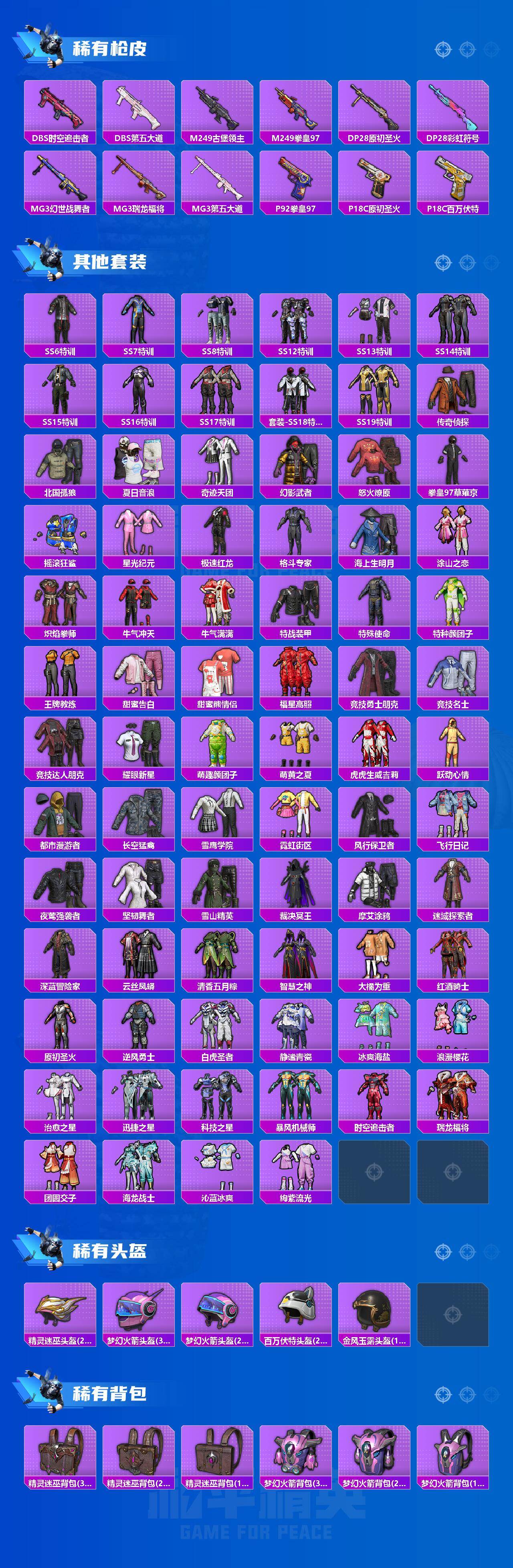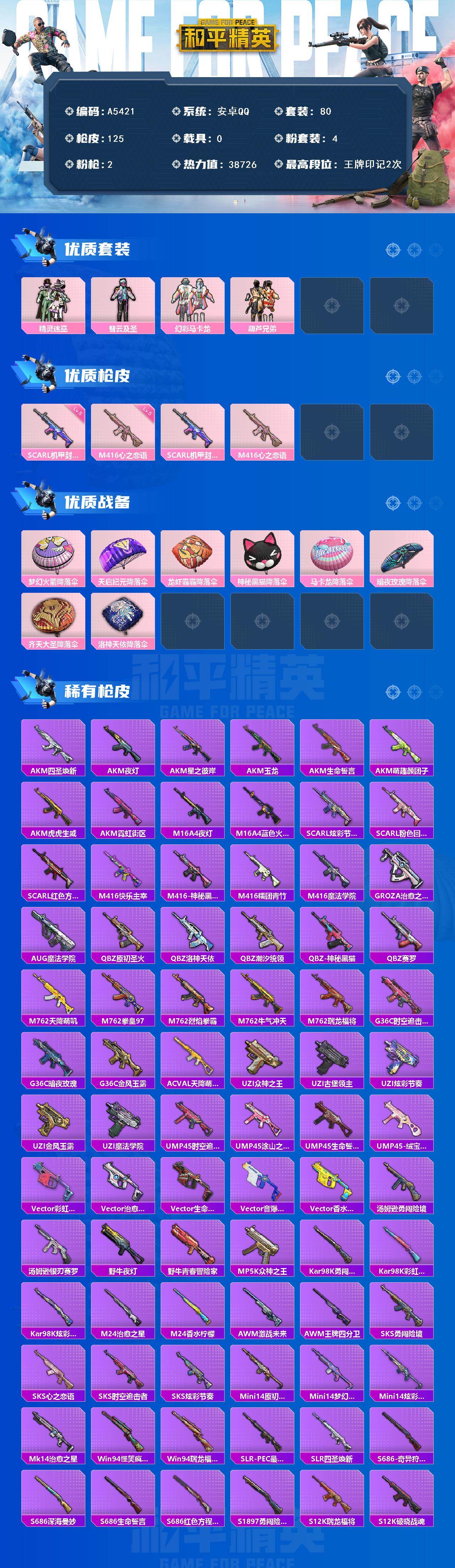 [16360803]安卓【小号 粉装-精灵迷巫/粉装-彗云及圣/scar-l-机甲封神五级/m416-心之恋语五级/百万伏特背包3级】 手q-4粉装-2特效呛-0载具-0粉色飞行器-38726热力值-2王牌印记-80套装-125呛皮 【粉色套装】:粉装-精灵迷巫,粉装-彗云及圣,粉装-幻彩马卡龙,粉装-葫芦兄弟 【粉色呛皮等级】:scar-l-机甲封神五级,m416-心之恋语五级 【粉色呛皮】:scar-l-机甲封神,m416-心之恋语 【粉色降落伞】:梦幻火箭降落伞,天启纪元降落伞,龙虾霸霸降落伞,神秘黑猫降落伞,马卡龙降落伞,暗夜玫瑰降落伞,齐天大圣降落伞,洛神天依降落伞 【稀有呛皮】:akm-四圣焕新,akm-夜灯,akm-星之彼岸,akm-玉龙,akm-生命誓言,akm-萌趣颜团子,akm-虎虎生威,akm-霓虹街区,m16a4-夜灯,m16a4-蓝色火焰,scar-l-炫彩节奏,scar-l-粉色回忆,scar-l-红色方程式,m416-快乐主宰,m416-神秘黑猫,m416-糯团青竹,m416-魔法学院,groza-治愈之星,aug-魔法学院,q-原初圣火,q-洛神天依,q-潮汐统领,q-神秘黑猫,q-赛罗,m762-天降萌叽,m762-拳皇97,m762-烈焰拳霸,m762-牛气冲天,m762-瑞龙福将,g36c-时空追击者,g36c-暗夜玫瑰,g36c-金风玉露,ac-val-天降萌叽,uzi-众神之王,uzi-古堡领主,uzi-炫彩节奏,uzi-金风玉露,uzi-魔法学院,ump45-时空追击者,ump45-涂山之恋,ump45-生命誓言,ump45-绒宝小鹅,vect-彩虹符号,vect-治愈之星,vect-生命誓言,vect-音爆索尼克,vect-香水柠檬,汤姆逊-勇闯险境,汤姆逊-银刃赛罗,野牛-夜灯,野牛-青春冒险家,mp5k-众神之王,kar98k-勇闯险境,kar98k-彩虹符号,kar98k-炫彩节奏,m24-治愈之星,m24-香水柠檬,awm-激战未来,awm-王牌四分卫,sks-勇闯险境,sks-心之恋语,sks-时空追击者,sks-炫彩节奏,mini14-原初圣火,mini14-梦幻火箭,mini14-炫彩节奏,mk14-治愈之星,win94-怪笑疯兔,win94-瑞龙福将,slr-pe