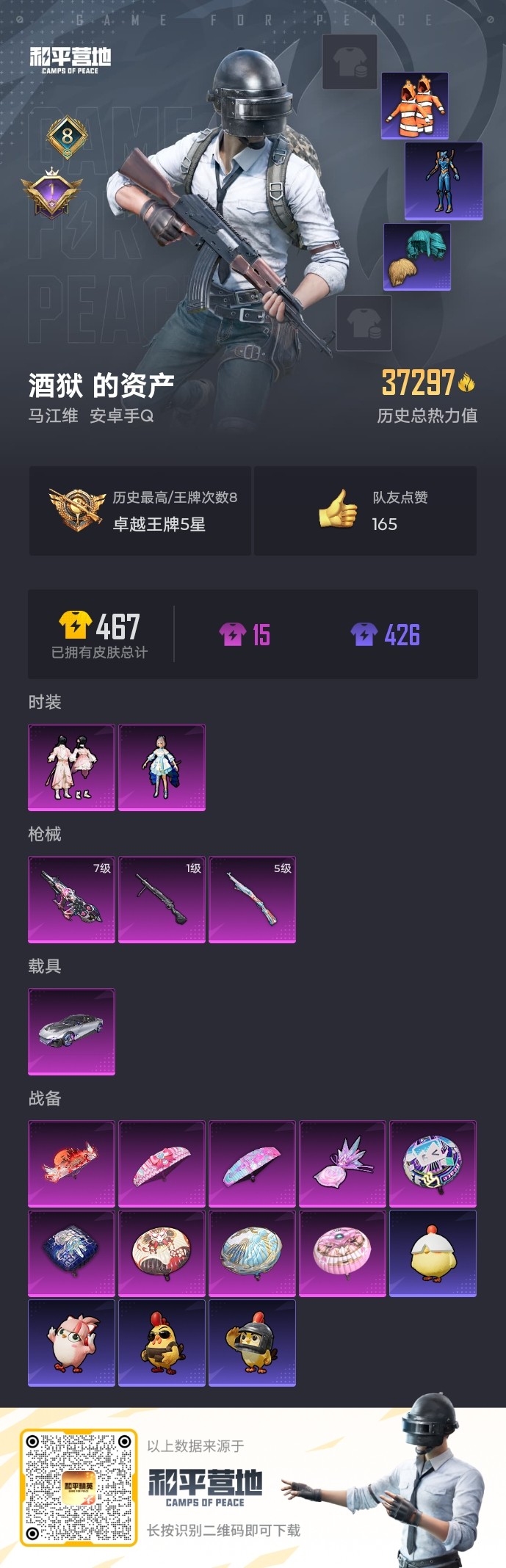 【和平精英】【txhp6900】2粉装,3特效呛,1载具,历史最高段位:卓越王牌5星 王牌印记8次 热力值:37297,84套装,139呛械,164装备,64战备;套装:角色-洛天依,套装-桃粉嫣然,套装-蓝色运动,套装-竞技名士,套装-长空猛禽,套装-特殊使命,套装-蓝彩潮人,套装-魅力单车,套装-幻世战舞者,套装-弄潮海豚,套装-呆萌铁蟹,套装-深海小丑鱼,套装-青涩时光,套装-缤纷果语,套装-龙魂突击队,套装-麻辣教官,套装-小丑鱼,套装-霓虹街区,套装-白熊同盟,套装-牛气满满,套装-战术大师,套装-曼妙人鱼,套装-热情海星,套装-纯真浪花,套装-天籁歌者,角色-英勇保护者,套装-ss21特训,套装-玉兔迎春,套装-ss22特训,套装-轻风白浪,套装-光之冒险,套装-ss23特训,套装-柠萌假日,套装-ss24特训,套装-日照花林,套装-龟仙人,套装-ss25特训,套装-惊鸿侠骨,套装-锦衣飞扬,套装-香桃花海,套装-龙的传人,套装-冰河战士,套装-ss26特训,套装-空岛之星,套装-ss27特训,套装-老实芭蕉,套装-ss28特训,角色-达芬奇,角色-情公主,角色-mark.06,套装-街头风暴,套装-海盐绵绵冰,套装-蝶变,套装-ss29特训,套装-雏菊兔兔,套装-萝兰蝴蝶,角色-都市丽猫,套装-星途旅人,套装-旋风灵鼠,套装-ss30特训,套装-青团波波,套装-棉花软糖,套装-糖糖葫芦,套装-ss31特训,套装-鱼渊荷华,套装-燕燕于飞,套装-智谋强哥,套装-紫幽梦,套装-ss33特训,套装-巳巳如意,套装-ss32特训,套装-青翼流星,套装-蓝冰羽,套装-顶瓜瓜,套装-大橘大利,套装-极速光影,套装-炫彩糖果,套装-薄荷星砂,套装-琴音绮想,套装-画境星梦,套装-书海巡游,套装-ss37特训,套装-ss36特训,套装-萌鸡速递;呛皮:groza-异彩先驱,groza-海盐豹豹,蜜獾-天降萌叽,蜜獾-糖糖葫芦,蜜獾-鸡智如我,蜜獾-乌木金纹,m416-蓝色火焰,m416-糯团青竹,q-彩虹符号,q-纯真浪花,akm-破晓战魂,akm-龙的传人,7级aug-罪夜之冕,aug-耀粉歌者,aug-冰晶雪宝,famas-霓彩脉冲,famas-乌木金纹,ac-val-乌木金纹,ac-val-天降萌叽,m762-天降萌叽,m762-雏菊兔兔,ace32-画境星梦,ace32-冰晶雪宝,mk47-洛神天依,mk47-乌木金纹,scar-l-玉兔迎春,scar-l-星途旅人,scar-l-海盐豹豹,m16a4-冰河战士,m200-惊鸿侠骨,m200-罪夜之冕,m200-乌木金纹,svd-霓彩脉冲,win94-乌木金纹,5级kar98k-巳巳如意,kar98k-星穹咏叹调,莫辛纳甘-乌木金纹,awm-音爆索尼克,awm-天降萌叽,awm-纯真浪花,amr-乌木金纹,mini14-穿刺龙虾,mini14-耀粉歌者,mini14-香桃花海,mini14-雏菊兔兔,mk14-乌木金纹,mk14-冰河战士,mk14-紫幽梦,vss-香桃花海,mk20-h-星途旅人,mk20-h-糖糖葫芦,mk20-h-狂鲨锋刃,mk20-h-乌木金纹,slr-彩虹符号,slr-守护天翼,slr-霓彩脉冲,mk12-乌木金纹,sks-迅猛狂鲨,sks-炫彩节奏,m417-惊鸿侠骨,m1加兰德-画境星梦,汤姆逊-耀粉歌者,汤姆逊-环太平洋,汤姆逊-天降萌叽,汤姆逊-纯真浪花,汤姆逊-雾都回忆,mp5k-未来领航者,mp5k-画境星梦,mp5k-乌木金纹,野牛-雏菊兔兔,野牛-燕燕于飞,vect-炎氏战神,vect-燕燕于飞,p90-飞驰魅影,p90-巳巳如意,p90-乌木金纹,ump45-夜灯,ump45-糖糖葫芦,uzi-红色方程式,uzi-冰河战士,uzi-啾咪啾咪,uzi-炫彩糖果,aks-74u-鬼刀,dbs-乌木金纹,spas-12-燕燕于飞,spas-12-罪夜之冕,spas-12-乌木金纹,s1897-炫彩节奏,s1897-紫幽梦,s12k-破晓战魂,s12k-玩趣呆呆,s686-红色方程式,s686-彩虹符号,s686-巳巳如意,aa12-g-纯真浪花,aa12-g-画境星梦,m249-破晓战魂,m249-星之彼岸,m249-彩虹符号,m249-糯团青竹,mg-36-薄荷星砂,pkm-啾咪啾咪,pkm-紫幽梦,mg3-幻世战舞者,mg3-乌木金纹,mg3-惊鸿侠骨,mg3-霓彩脉冲,1级dp-28-豹影疾电,dp-28-彩虹符号,p92-紫幽梦,r45-拳皇·狂花道,短管霰弹-星穹咏叹调,p18c-糖糖葫芦,蝎式手呛-奶油梦幻熊,蝎式手呛-燕燕于飞,沙墨之鹦-羲和光序,tmp-9-霓彩节奏,r1895-雏菊兔兔,平底锅-惊鸿侠骨,平底锅-空岛之星,平底锅-纯真浪花,平底锅-雏菊兔兔,平底锅-糖糖葫芦,平底锅-紫幽梦,平底锅-画境星梦,撬棍-环太平洋,撬棍-冰晶雪宝,铝热弹-炫彩糖果,破片手留单-呆爆全场,破片手留单-星途旅人,破片手留单-拽到爆炸,破片手留单-巳巳如意,爆炸猎弓-惊鸿侠骨,轻型迫击炮-无垠阁,燃烧瓶-福马献瑞,燃点复合弓-罪夜之冕,十子怒-燕燕于飞,十子怒-异域银装,突击盾牌-初号机 觉醒ver.;载具:星河领航磐石银;降落伞:炫彩糖果飞行器,异域银装飞行器,顶峰精英尾迹; 详情看图8印记-3.7w热力-2粉-3特-1车 小丑鱼/洛天依/深海小丑鱼/桃粉嫣然 满级罪夜之冕aug 星河领航