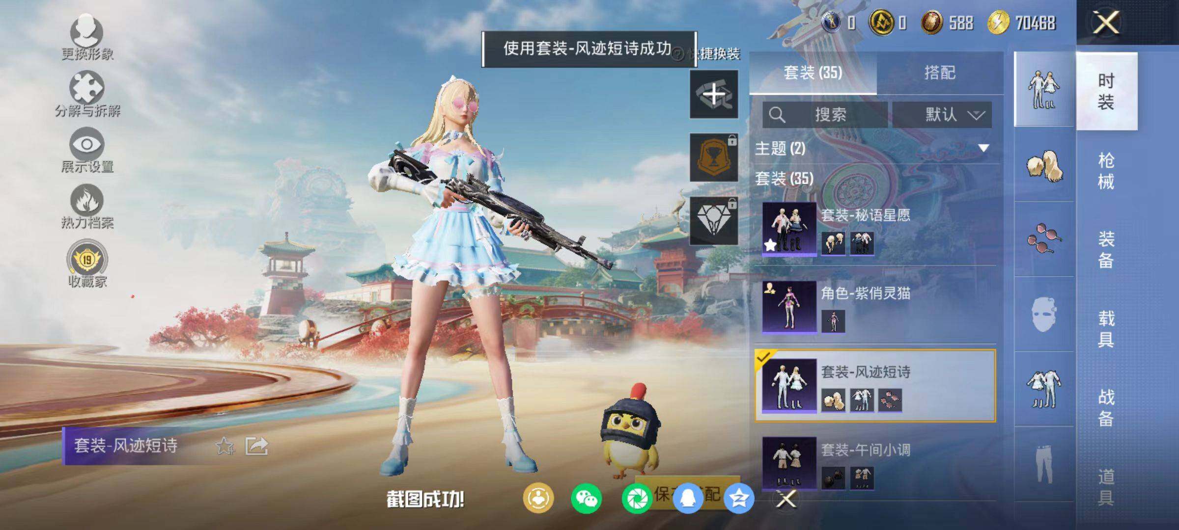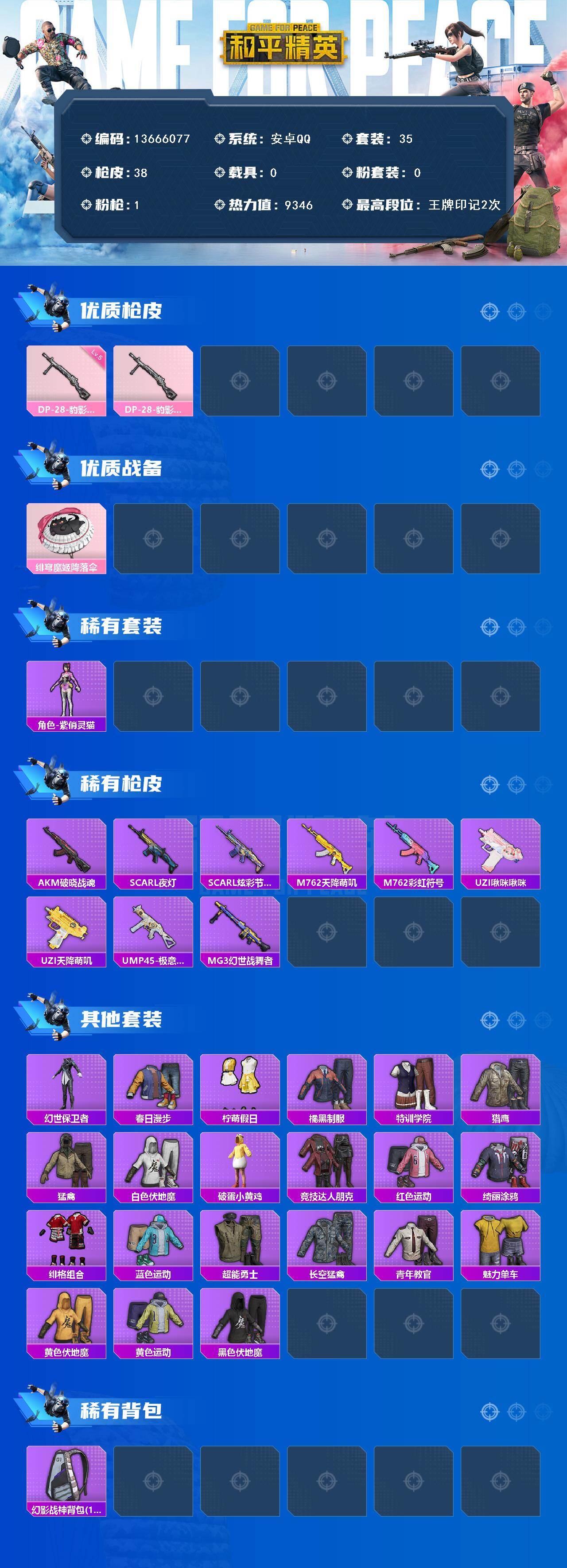 6487 【1特效呛1粉色飞行器9346热力值2王牌印记35套装38呛皮】 【粉色呛皮】:dp-28-豹影疾电 【粉色降落伞】:绯穹魔姬降落伞,炫彩糖果降落伞 【稀有套装】:套装-雪国风尚,角色-紫俏灵猫 【稀有呛皮】:akm-破晓战魂,m762-天降萌叽,m762-彩虹符号,mg3-幻世战舞者,scar-l-夜灯,scar-l-炫彩节奏,uzi-啾咪啾咪,uzi-天降萌叽,ump45-极