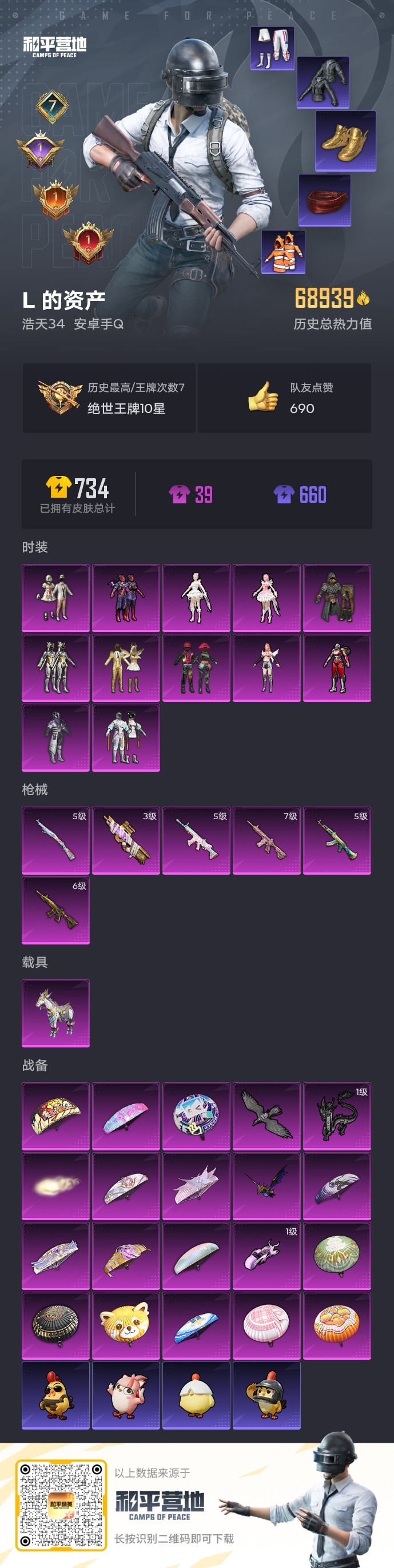 【和平精英】【txhp6922】12粉装,6特效呛,1载具,历史最高段位:绝世王牌10星 王牌印记7次 热力值:68939,154套装,199呛械,240装备,119战备;套装:套装-极限特训,套装-幻影战神,套装-宝贝奶油派,套装-金属狂野,套装-智能音符,套装-放客神游,套装-绚金战神,套装-星之彼岸,角色-阿尔茜,角色-水仙星,角色-美雪,角色-千金淑猫,套装-特训学院,套装-青年教官,套装-橘黑制服,套装-红色运动,套装-黄色运动,套装-蓝色运动,套装-白色伏地魔,套装-黑色伏地魔,套装-竞技名士,套装-深蓝色名流,套装-猛禽,套装-长空猛禽,套装-漫步者,套装-蓝色守护者,套装-海岛探路者,套装-灼焰舞者,套装-都市猎人,套装-水银刺客,套装-浪漫天命,套装-街舞达人,套装-迎春赐吉,套装-春日漫步,套装-滨海假日,套装-沙漠毒蛇,套装-鹰眼刺客,套装-冰冻风暴,套装-冷酷挑战者,套装-特战英豪,套装-魅力单车,套装-绮丽涂鸦,套装-坚韧舞者,套装-竞技达人朋克,套装-狂沙舞者,套装-森林游猎者,套装-荣耀,套装-沙漠兵团,套装-派对舞王,套装-酷潮明星,套装-幻世战舞者,套装-金耀舞者,套装-血色贵族,套装-暗影哥特,套装-弄潮海豚,套装-迅捷狂鲨,套装-呆萌铁蟹,套装-青涩时光,套装-缤纷果语,套装-滨海厨神,套装-龙魂突击队,套装-元素星魂,套装-忍者信条,套装-极速红龙,套装-小丑鱼,套装-粉红小猪,套装-幻世猎手,套装-鹤鸣,套装-霓虹街区,套装-探宝勇士,套装-牛气满满,套装-萌趣颜团子,套装-特种颜团子,套装-战术大师,套装-牛气冲天,套装-ss18特训,套装-曼妙人鱼,套装-热情海星,套装-纯真浪花,套装-ss16特训,套装-暴风机械师,套装-时空追击者,套装-ss17特训,套装-瑞龙福将,套装-团圆交子,套装-极乐追光,套装-tt追光队服,套装-ss19特训,套装-飞驰魅影,套装-音速流光,套装-tt战队服,套装-ss20特训,套装-ss21特训,套装-玉兔迎春,套装-ss22特训,套装-光之冒险,套装-绯格组合,套装-ss23特训,套装-甜梦熊熊,套装-神气柴柴,套装-懵萌河马,套装-青玉碎影,套装-ss24特训,套装-源星混沌,套装-华灯初上,套装-龟仙人,套装-涂山之恋,套装-ss25特训,套装-惊鸿侠骨,套装-锦衣飞扬,套装-深海梦境,套装-龙的传人,套装-冰河战士,套装-ss26特训,套装-快闪甜心,套装-春光漫游,套装-漫游都市,套装-空岛之星,套装-无暇誓言,套装-贝斯之夜,套装-焰鹰斗篷,套装-幽夜迷踪,套装-幻羽潜行,套装-ss27特训,套装-恋语绒绒,套装-老实芭蕉,套装-ss28特训,角色-多纳泰罗,角色-情公主,角色-银尘,套装-白辉玉蕊,套装-街头风暴,套装-海盐绵绵冰,套装-蝶变,套装-ss29特训,角色-临安公主,套装-ss30特训,套装-青团波波,套装-糖糖葫芦,套装-ss31特训,套装-鱼渊荷华,套装-燕燕于飞,套装-智谋强哥,角色-海琴烟,套装-ss33特训,套装-巳巳如意,套装-ss32特训,套装-云鹰凌岚,套装-蓝海鲸歌,套装-ss34特训,套装-ss35特训,角色-月烬之祷,套装-ss36特训,套装-萌鸡速递;呛皮:5级akm-绿萝繁花,akm-生命誓言,akm-影袭,akm-缤纷海域,akm-破晓战魂,akm-霓虹街区,akm-星之彼岸,akm-萌趣颜团子,akm-虎虎生威,akm-2p战斗服款,akm-龙的传人,akm-江南烟雨,akm-霓彩脉冲,g36c-时空追击者,g36c-懵萌河马,g36c-桃粉嫣然,g36c-镜域双华,g36c-乌木金纹,蜜獾-天降萌叽,蜜獾-精灵梦叶罗丽,蜜獾-糖糖葫芦,蜜獾-乌木金纹,groza-影袭,groza-懵萌河马,groza-2b战斗服款,groza-海盐豹豹,groza-暮色玫影,5级scar-l-锦绣绵绵,scar-l-红色方程式,scar-l-黄金龙骨,scar-l-夜灯,scar-l-炫彩节奏,scar-l-玉兔迎春,scar-l-星途旅人,scar-l-海盐豹豹,ac-val-乌木金纹,ac-val-彩虹甜喵,ac-val-天降萌叽,ac-val-闲梦青缨,ac-val-快闪甜心,6级m416-五爪金龙,7级m416-心之恋语,m416-黄金狮王,m416-糯团青竹,m16a4-幻世战舞者,m16a4-冰河战士,m16a4-千金淑猫,aug-甜蜜菠萝,aug-幻影战神,aug-耀粉歌者,aug-异域银装,famas-突变脉冲,famas-乌木金纹,m762-绯红前夜,m762-快乐主宰,m762-甜心宝贝,m762-瑞龙福将,m762-暖熊萌萌,q-飞驰魅影,q-纯真浪花,mk47-乌木金纹,m200-惊鸿侠骨,m200-乌木金纹,amr-鸡智如我,amr-乌木金纹,m24-影袭,m24-未来战士,m24-炫彩节奏,m24-乌木金纹,莫辛纳甘-乌木金纹,莫辛纳甘-懵萌河马,5级kar98k-巳巳如意,kar98k-影袭,kar98k-幻影战神,kar98k-深海曼妙,kar98k-彩虹符号,kar98k-飞驰魅影,kar98k-2b战斗服款,kar98k-乌木金纹,awm-焰鹰斗篷,awm-纯真浪花,win94-瑞龙福将,vss-未来战士,vss-碧影闪光,vss-彩虹符号,vss-香桃花海,m417-惊鸿侠骨,m417-玩趣呆呆,m417-猪猪侠,m417-幻影飞狐,mk20-h-莲影清波,mk20-h-快闪甜心,mk20-h-糖糖葫芦,mk20-h-圣域龙灵,mk20-h-乌木金纹,mini14-金玉无双,mini14-穿刺龙虾,mini14-涂山之恋,mini14-香桃花海,sks-迅猛狂鲨,sks-炫彩节奏,sks-时空追击者,mk14-乌木金纹,mk14-冰河战士,mk12-金蛇镇世,ump45-夜灯,ump45-生命誓言,ump45-金玉无双,ump45-电音之王,ump45-时空追击者,ump45-涂山之恋,ump45-糖糖葫芦,野牛-夜灯,野牛-燕燕于飞,野牛-乌木金纹,3级p90-沙丘之主,p90-飞驰魅影,p90-快闪甜心,p90-玩趣呆呆,p90-乌木金纹,汤姆逊-奇异狩猎者,汤姆逊-幻影战神,汤姆逊-炫彩节奏,汤姆逊-庄周梦蝶,汤姆逊-天降萌叽,汤姆逊-纯真浪花,uzi-影袭,uzi-金玉无双,uzi-幻影战神,uzi-墨染幽兰,uzi-天降萌叽,uzi-冰河战士,uzi-啾咪啾咪,uzi-幻影飞狐,uzi-炫彩糖果,aks-74u-鬼刀,aks-74u-乌木金纹,vect-生命誓言,vect-焰鹰斗篷,vect-燕燕于飞,mp5k-蓝莓炮弹,mp5k-乌木金纹,spas-12-燕燕于飞,spas-12-乌木金纹,aa12-g-纯真浪花,s12k-夜灯,s12k-瑞龙福将,s12k-幻世战舞者,s12k-是爱神辣,s12k
