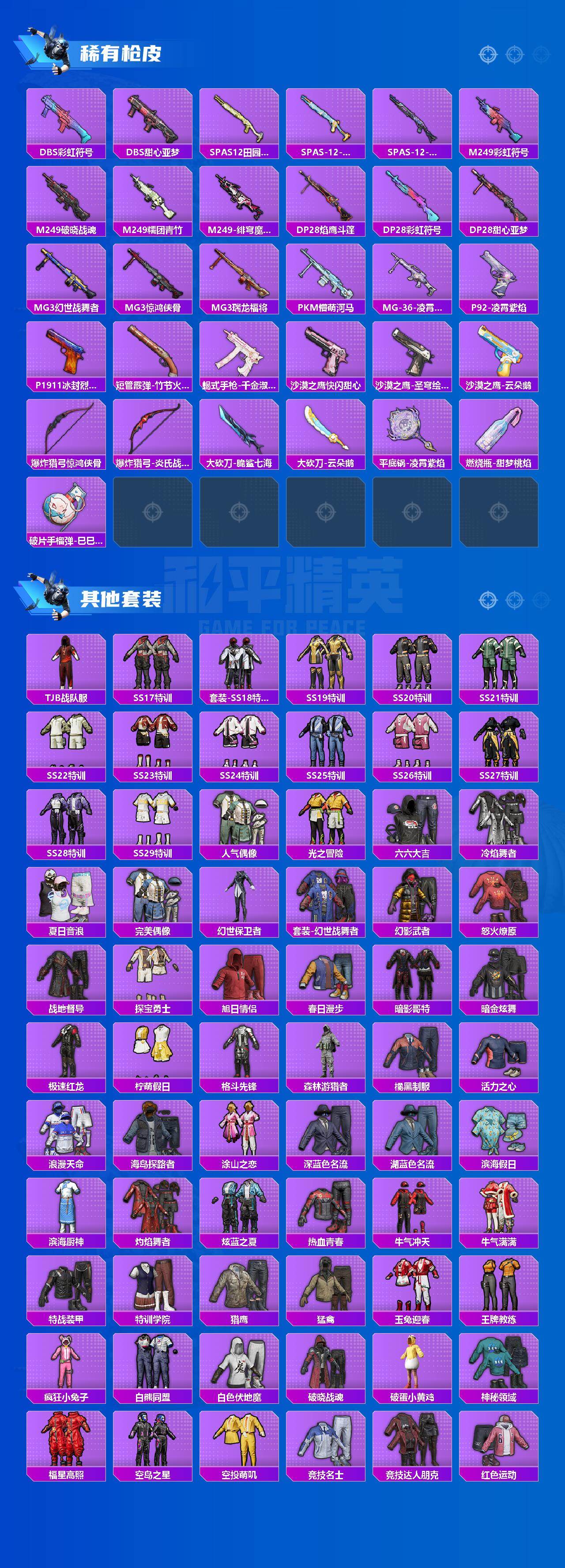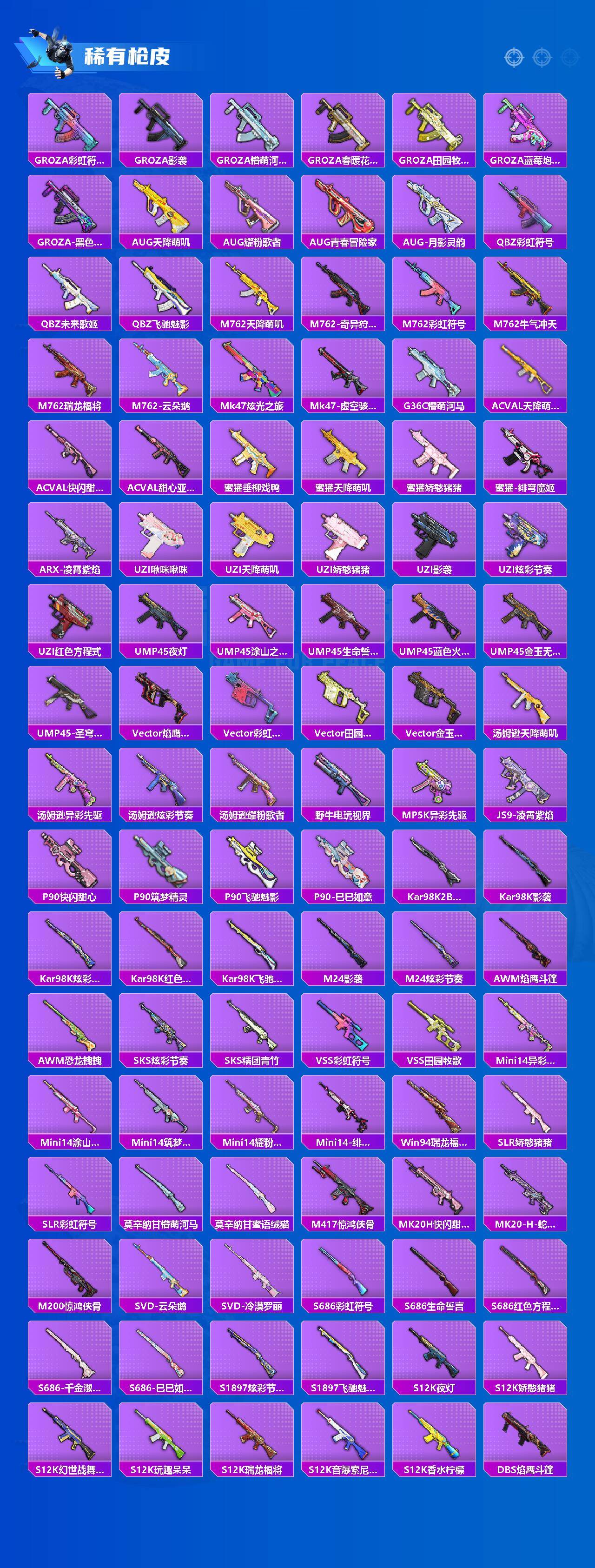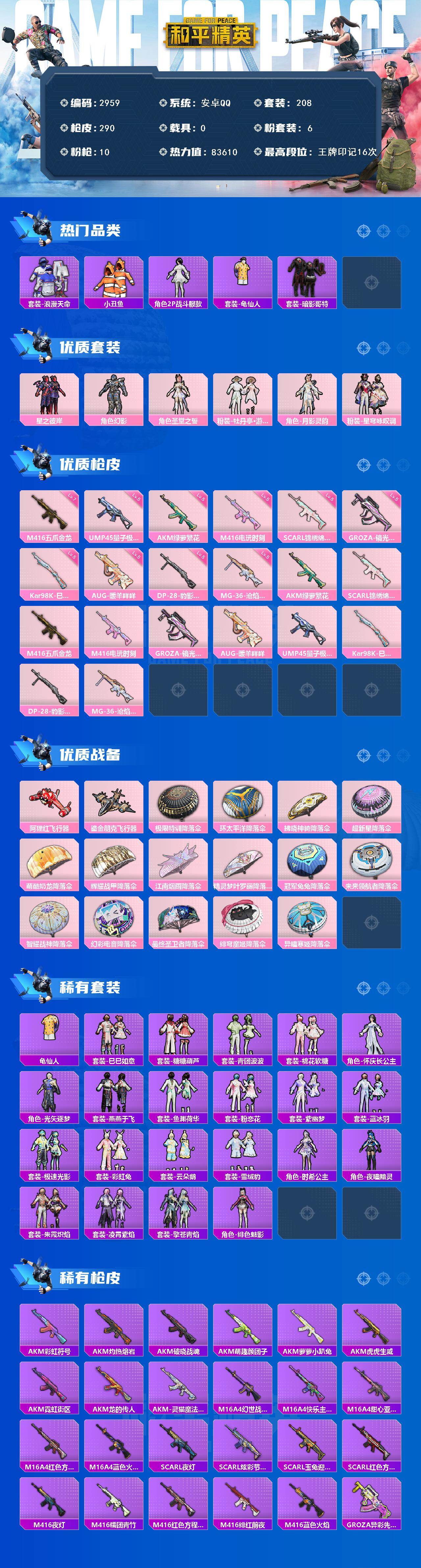 安卓 手q-6粉装-10特效呛-0载具-3粉色飞行器-83610热力值-16王牌印记-208套装-290呛皮 【热门品类】:套装-浪漫天命,套装-小丑鱼,角色-2p战斗服款,套装-龟仙人,套装-暗影哥特 【粉色套装】:粉装-星之彼岸,角色-幻影,角色-圣堂之誓,粉装-牡丹亭·游园,角色-月影灵韵,粉装-星穹咏叹调 【粉色呛皮等级】:akm-绿萝繁花五级,scar-l-锦绣绵绵五级,m416-五爪金龙七级,m416-电玩时刻五级,groza-镜光银凌五级,aug-暖羊咩咩五级,ump45-量子极限五级,kar98k-巳巳如意五级,dp-28-豹影疾电五级,mg-36-沧焰双生五级 【粉色呛皮】:akm-绿萝繁花,scar-l-锦绣绵绵,m416-五爪金龙,m416-电玩时刻,groza-镜光银凌,aug-暖羊咩咩,ump45-量子极限,kar98k-巳巳如意,dp-28-豹影疾电,mg-36-沧焰双生 【粉色飞行器】:阿狸红飞行器,鎏金朋克飞行器 【粉色降落伞】:极限特训降落伞,环太平洋降落伞,拂晓神骑降落伞,超新星降落伞,萌酷奶龙降落伞,辉耀战甲降落伞,江南烟雨降落伞,精灵梦叶罗丽降落伞,冠军兔兔降落伞,未来领航者降落伞,智耀战神降落伞,幻彩电音降落伞,最终圣卫者降落伞,绯穹魔姬降落伞,异瞳寒姬降落伞,炫彩糖果降落伞 【稀有套装】:套装-龟仙人,套装-巳巳如意,套装-炫彩糖果,套装-糖糖葫芦,套装-青团波波,套装-棉花软糖,角色-怀庆长公主,角色-光矢逐梦,套装-燕燕于飞,套装-鱼渊荷华,套装-粉恋花,套装-紫幽梦,套装-蓝冰羽,套装-极速光影,套装-彩虹兔,套装-云朵鹅,套装-雪绒豹,角色-时希公主,角色-夜瞳黯灵,套装-朱霞炽焰,套装-凌霄紫焰,套装-擎苍青焰,角色-绯色魅影 【稀有呛皮】:aug-冰晶雪宝,akm-彩虹符号,akm-灼热熔岩,akm-破晓战魂,akm-萌趣颜团子,akm-萝萝小趴兔,akm-虎虎生威,akm-霓虹街区,akm-龙的传人,akm-灵猫魔法师,m16a4-幻世战舞者,m16a4-快乐主宰,m16a4-甜心亚梦,m16a4-红色方程式,m16a4-蓝色火焰,scar-l-夜灯,scar-l-炫彩节奏,scar-l-玉兔迎春,scar-l-红色方程式,m416-夜灯,m416-糯团青竹,m416-红色方程式,m416-绯红前夜,m416-蓝色火焰,groza-异彩先驱,groza-彩虹符号,groza-影袭,groza-懵萌河马,groza-春暖花开,groza-田园牧歌,groza-蓝莓炮弹,groza-黑色刀锋,aug-天降萌叽,aug-耀粉歌者,aug-青春冒险家,aug-月影灵韵,q-彩虹符号,q-未来歌姬,q-飞驰魅影,m762-天降萌叽,m762-奇异狩猎者,m762-彩虹符号,m762-牛气冲天,m762-瑞龙福将,m762-云朵鹅,mk47-炫光之旅,mk47-虚空骇客,g36c-懵萌河马,ac-val-天降萌叽,ac-val-快闪甜心,ac-val-甜心亚梦,蜜獾-垂柳戏鸭,蜜獾-天降萌叽,蜜獾-娇憨猪猪,蜜獾-绯穹魔姬,arx-凌霄紫焰,uzi-啾咪啾咪,uzi-天降萌叽,uzi-娇憨猪猪,uzi-影袭,uzi-炫彩节奏,uzi-红色方程式,ump45-夜灯,ump45-涂山之恋,ump45-生命誓言,ump45-蓝色火焰,ump45-金玉无双,ump45-圣穹绘梦,vect-焰鹰斗篷,vect-彩虹符号,vect-田园牧歌,vect-金玉无双,汤姆逊-天降萌叽,汤姆逊-异彩先驱,汤姆逊-炫彩节奏,汤姆逊-耀粉歌者,野牛-电玩视界,mp5k-异彩先驱,aks-74u-极光猎影,js9-凌霄紫焰,p90-快闪甜心,p90-筑梦精灵,p90-飞驰魅影,p90-巳巳如意,kar98k-2b战斗服款,kar98k-影袭,kar98k-炫彩节奏,kar98k-红色方程式,kar98k-飞驰魅影,m24-影袭,m24-炫彩节奏,awm-焰鹰斗篷,awm-恐龙拽拽,sks-炫彩节奏,sks-糯团青竹,vss-彩虹符号,vss-田园牧歌,mini14-异彩先驱,mini14-涂山之恋,mini14-筑梦精灵,mini14-耀粉歌者,mini14-绯穹魔姬,win94-瑞龙福将,slr-娇憨猪猪,slr-彩虹符号,莫辛纳甘-懵萌河马,莫辛纳甘-蜜语绒猫,m417-惊鸿侠骨,mk20-h-快闪甜心,mk20-h-蛇蝎美人,m200-惊鸿侠骨,svd-云朵鹅,svd-冷漠罗丽,s686-彩虹符号,s686-生命誓言,s686-红色方程式,s686-巳巳如意,s686-千金淑猫,s1897-炫彩节奏,s1897-飞驰魅影,s12k-玩趣呆呆,s12k-瑞龙福将,s12k-音爆索尼克,s12k-香水柠檬,s12k-夜灯,s12k-娇憨猪猪,s12k-幻世战舞者,dbs-焰鹰斗篷,dbs-彩虹符号,dbs-甜心亚梦,spas-12-田园牧歌,spas-12-钛晶裂爪,spas-12-云朵鹅,m249-彩虹符号,m249-破晓战魂,m249-糯团青竹,m249-绯穹魔姬,dp-28-焰鹰斗篷,dp-28-彩虹符号,dp-28-甜心亚梦,mg3-幻世战舞者,mg3-惊鸿侠骨,mg3-瑞龙福将,pkm-懵萌河马,mg-36-凌霄紫焰,p92-凌霄紫焰,p1911-冰封烈焰,短管霰弹-竹节火铳,蝎式手呛-千金淑猫,沙墨之鹦-快闪甜心,沙墨之鹦-云朵鹅,沙墨之鹦-圣穹绘梦,爆炸猎弓-惊鸿侠骨,爆炸猎弓-炎氏战神,大砍刀-云朵鹅,大砍刀-脆鲨七海,平底锅-凌霄紫焰,燃烧瓶-甜梦桃焰,破片手留单-巳巳如意 【其他套装】:套装-tjb战队服,套装-ss17特训,套装-ss18特训,套装-ss19特训,套装-ss20特训,套装-ss21特训,套装-ss22特训,套装-ss23特训,套装-ss24特训,套装-ss25特训,套装-ss26特训,套装-ss27特训,套装-ss28特训,套装-ss29特训,套装-人气偶像,套装-光之冒险,套装-六六大吉,套装-冷焰舞者,套装-夏日音浪,套装-完美偶像,套装-幻世保卫者,套装-幻世战舞者,套装-幻影武者,套装-怒火燎原,套装-战地督导,套装-探宝勇士,套装-旭日情侣,套装-春日漫步,套装-暗影哥特,套装-暗金炫舞,套装-极速红龙,套装-柠萌假日,套装-格斗先锋,套装-森林游猎者,套装-橘黑制服,套装-活力之心,套装-浪漫天命,套装-海岛探路者,套装-涂山之恋,套装-深蓝色名流,套装-湖蓝色名流,套装-滨海假日,套装-滨海厨神,套装-灼焰舞者,套装-炫蓝之夏,套装-热血青春,套装-牛气冲天,套装-牛气满满,套装-特战装甲,套装-特训学院,套装-猎鹰,套装-猛禽,套装-玉兔迎春,套装-王牌教练,套装-疯狂小兔子,套装-白熊同盟,套装-白色伏地魔,套装-破晓战魂,套装-破蛋小黄鸡,套装-神秘领域,套装-福星高照,套装