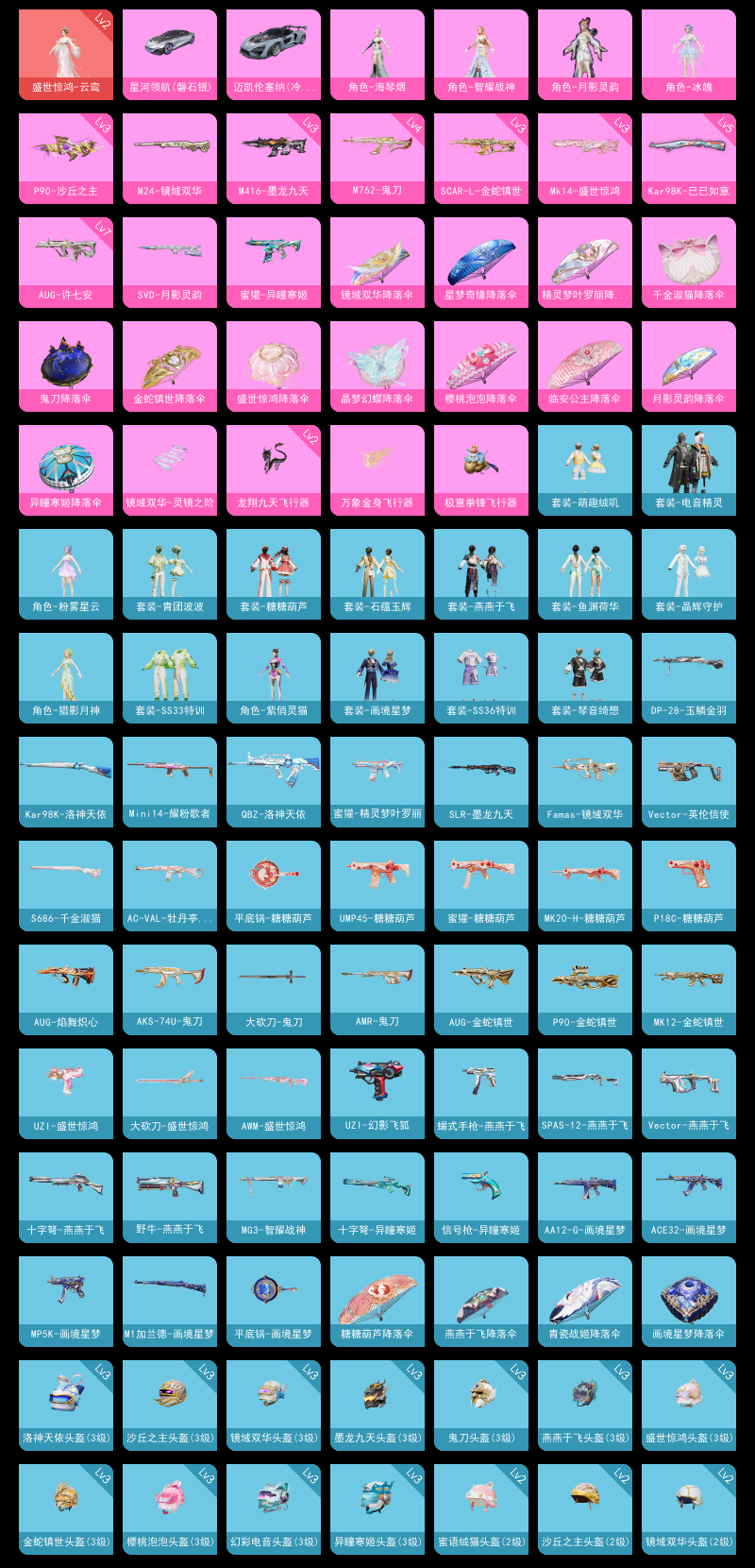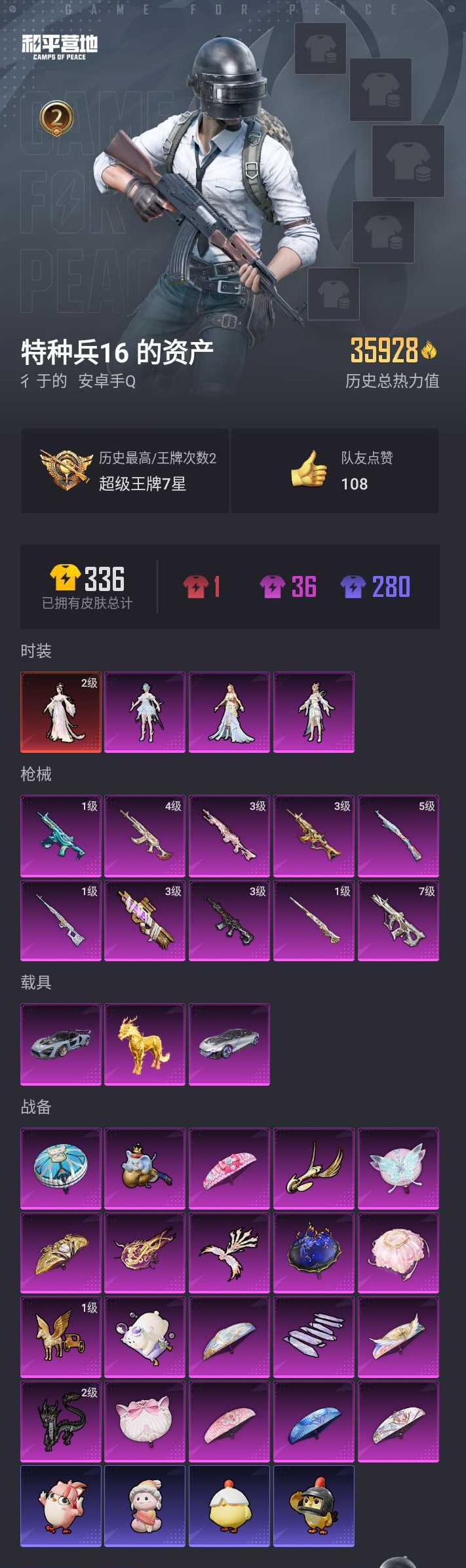 【和平精英】【lyhp21507】3粉装,10特效呛,3载具,历史最高段位:超级王牌7星 王牌印记2次 热力值:35928,48套装,89呛械,131装备,54战备;套装:盛世惊鸿-云鸾,角色-月影灵韵,角色-智耀战神,角色-冰魄,套装-长空猛禽,套装-红潮炫舞,套装-幻世战舞者,套装-缤纷果语,套装-破蛋小黄鸡,套装-疯狂小兔子,套装-战术大师,套装-电音精灵,套装-王牌教练,套装-柠萌假日,套装-香桃花海,套装-萌趣绒叽,玩偶服-卖崽青蛙,角色-粉雾星云,套装-街头风暴,套装-海盐绵绵冰,角色-紫俏灵猫,角色-许七安,角色-俏兔智灵,角色-怀庆长公主,角色-临安公主,套装-ss30特训,套装-青团波波,角色-光矢逐梦,套装-糖糖葫芦,套装-梦域神使,套装-ss31特训,套装-鱼渊荷华,套装-石蕴玉辉,套装-燕燕于飞,套装-智谋强哥,角色-风玲,角色-海琴烟,套装-晶辉守护,套装-ss33特训,角色-猎影月神,套装-巳巳如意,套装-ss32特训,套装-元气之梦,套装-ss34特训,套装-琴音绮想,套装-画境星梦,套装-ss36特训,套装-雪国风尚;呛皮:q-彩虹符号,q-洛神天依,3级scar-l-金蛇镇世,scar-l-炫彩节奏,scar-l-星途旅人,scar-l-海盐豹豹,1级蜜獾-异瞳寒姬,蜜獾-天降萌叽,蜜獾-精灵梦叶罗丽,蜜獾-糖糖葫芦,蜜獾-乌木金纹,ac-val-牡丹亭·游园,7级aug-许七安,aug-焰舞炽心,aug-月影灵韵,aug-金蛇镇世,4级m762-鬼刀,m762-天降萌叽,ace32-画境星梦,famas-镜域双华,3级m416-墨龙九天,m16a4-幻世战舞者,5级kar98k-巳巳如意,kar98k-洛神天依,kar98k-顶峰精英,1级m24-镜域双华,m24-蓝晶绮麟,1级svd-月影灵韵,awm-天降萌叽,awm-盛世惊鸿,amr-鬼刀,m200-乌木金纹,slr-墨龙九天,vss-香桃花海,mk12-金蛇镇世,mk12-乌木金纹,mini14-耀粉歌者,mini14-香桃花海,mk20-h-糖糖葫芦,mk20-h-乌木金纹,sks-炫彩节奏,m1加兰德-画境星梦,3级mk14-盛世惊鸿,aks-74u-鬼刀,aks-74u-乌木金纹,ump45-生命誓言,ump45-糖糖葫芦,mp5k-画境星梦,mp5k-乌木金纹,vect-彩虹符号,vect-英伦信使,vect-燕燕于飞,3级p90-沙丘之主,p90-巳巳如意,p90-金蛇镇世,uzi-天降萌叽,uzi-盛世惊鸿,uzi-幻影飞狐,uzi-月影灵韵,野牛-燕燕于飞,dbs-彩虹符号,dbs-月影灵韵,dbs-乌木金纹,s686-千金淑猫,s686-巳巳如意,s1897-糯团青竹,spas-12-燕燕于飞,spas-12-乌木金纹,aa12-g-画境星梦,dp-28-彩虹符号,dp-28-玉鳞金羽,mg3-幻世战舞者,mg3-智耀战神,信号呛-异瞳寒姬,蝎式手呛-燕燕于飞,p18c-糖糖葫芦,短管霰弹-竹节火铳,平底锅-糖糖葫芦,平底锅-许七安,平底锅-画境星梦,大砍刀-黑金刀,大砍刀-盛世惊鸿,大砍刀-鬼刀,十子怒-异瞳寒姬,十子怒-燕燕于飞,十子怒-异域银装,盐雾蛋-鸢尾晶梦,破片手留单-星途旅人,破片手留单-巳巳如意;载具:星河领航磐石银,迈凯伦塞纳冷萃蓝,护世瑞兽;降落伞:镜域双华-灵镜之阶,酣梦熊熊飞行器,凤舞九天飞行器,华彩金翼飞行器,万象金身飞行器,极意拳锋飞行器,沙丘之主天马,龙翔九天飞行器,异域银装飞行器,招财竹蜻蜓飞行器,顶峰精英尾迹,狂鲨锋刃飞行器,登顶巅峰飞行器; 详情看图1红装3粉装10特效呛3载具 2级云鸾 冰魄 智耀战神 3级死噶金蛇镇世 3级mk14盛世惊鸿 3级p90沙丘之主 3级m4墨龙九天 满级aug许七安 金麒麟 星河领航(地铁满天赋)