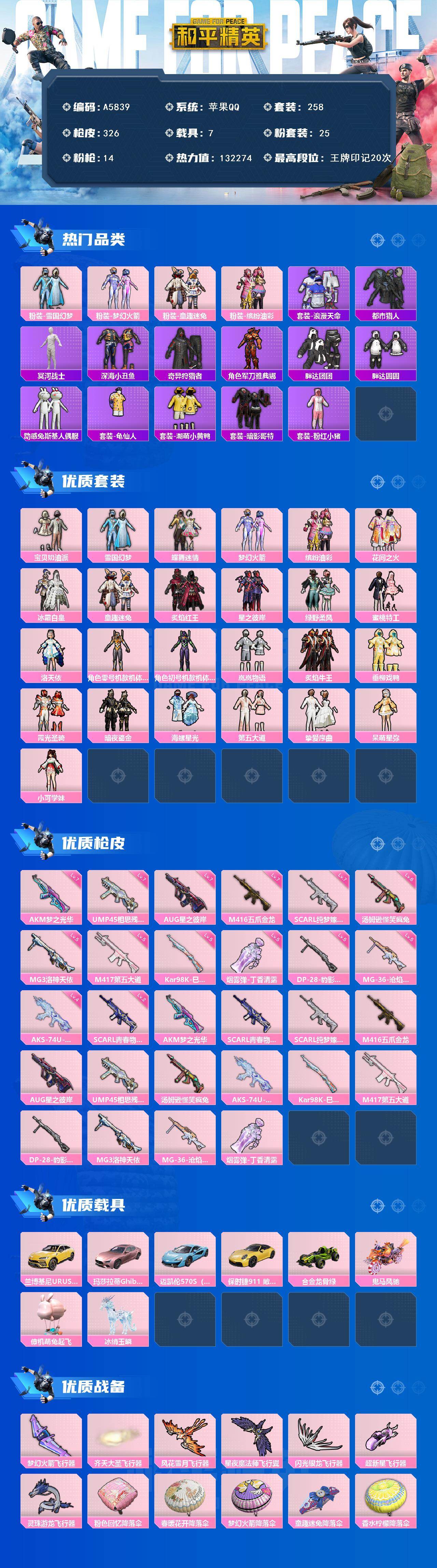 [16429957]苹果 【极品男神素材号 梦幻火箭 学过幻梦 童趣迷兔 缤纷油彩 浪漫天命 都市猎人 冥河战士 深海小丑鱼 奇异狩猎者 军刀雅典娜 胖达团团 胖达圆圆 动感兔斯基人偶服 潮萌小黄鸭 暗影哥特 洛天依 akm-梦之光华七级 scar-l-纯梦嫁纱七级,m416-五爪金龙七级,aug-星之彼岸七级,ump45-相思残雪七级 兰博基尼urus(明艳黄),玛莎拉蒂ghibli(粉),迈凯伦570s(天际蓝),保时捷911 敞篷版(极速黄),合金龙骨(绿),鬼马风驰,僚机-萌兔起飞,冰绡玉鳞】手q-25粉装-14特效呛-7载具-8粉色飞行器-132274热力值-20王牌印记-258套装-326呛皮 【热门品类】:粉装-雪国幻梦,粉装-梦幻火箭,粉装-童趣迷兔,粉装-缤纷油彩,套装-浪漫天命,套装-都市猎人,套装-冥河战士,套装-深海小丑鱼,套装-奇异狩猎者,角色-军刀雅典娜,套装-胖达团团,套装-胖达圆圆,套装-动感兔斯基人偶服,套装-龟仙人,套装-潮萌小黄鸭,套装-暗影哥特,套装-粉红小猪 【粉色套装】:粉装-宝贝奶油派,粉装-雪国幻梦,粉装-蝶舞迷情,粉装-梦幻火箭,粉装-缤纷油彩,粉装-花间之火,粉装-冰霜白皇,粉装-童趣迷兔,粉装-炙焰红王,粉装-星之彼岸,粉装-绿野柔风,粉装-蜜桃特工,角色-洛天依,角色-零号机款机体服,角色-初号机款机体服,粉装-岚岚物语,粉装-炙焰牛王,粉装-垂柳戏鸭,粉装-霞光圣骑,粉装-暗夜鎏金,粉装-海螺星光,粉装-第五大道,粉装-挚爱序曲,角色-呆萌星弥,角色-小可学妹 【粉色呛皮等级】:akm-梦之光华七级,scar-l-青春物语二级,scar-l-纯梦嫁纱七级,m416-五爪金龙七级,aug-星之彼岸七级,ump45-相思残雪七级,汤姆逊-怪笑疯兔六级,aks-74u-无垠阁四级,kar98k-巳巳如意五级,m417-第五大道五级,dp-28-豹影疾电五级,mg3-洛神天依五级,mg-36-沧焰双生五级,盐雾蛋-丁香清露五级 【粉色载具】:兰博基尼urus(明艳黄),玛莎拉蒂ghibli(粉),迈凯伦570s(天际蓝),保时捷911 敞篷版(极速黄),合金龙骨(绿),鬼马风驰,僚机-萌兔起飞,冰绡玉鳞 【粉色呛皮】:akm-梦之光华,scar-l-青春物语,