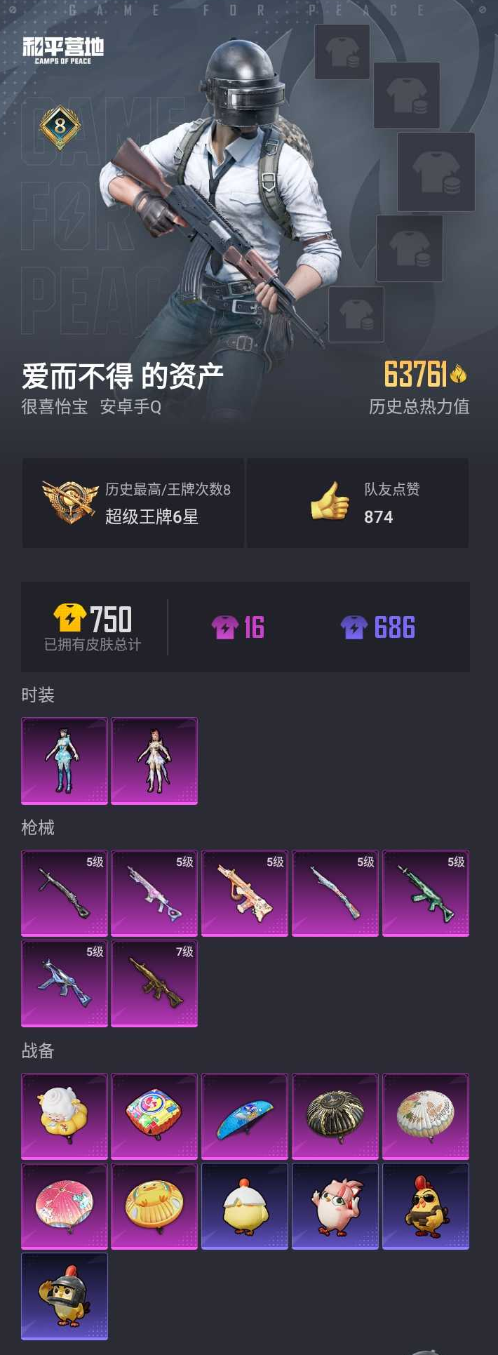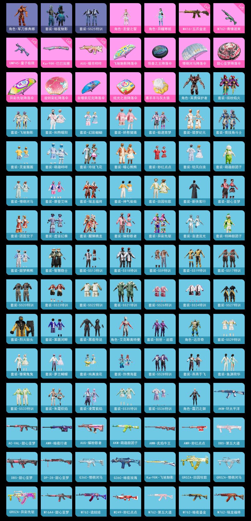 【和平精英】【lyhp21595】2粉装,7特效呛,0载具,历史最高段位:超级王牌6星 王牌印记8次 热力值:63761,157套装,205呛械,235装备,124战备;套装:角色-圣堂之誓,角色-异瞳寒姬,套装-特训学院,套装-黄色伏地魔,套装-白色伏地魔,套装-黑色伏地魔,套装-竞技名士,套装-湖蓝色名流,套装-黄色名流,套装-猛禽,套装-野性山猫,套装-长空猛禽,套装-黎明保卫者,套装-蓝色守护者,套装-海岛探路者,套装-旭日情侣,套装-冷焰舞者,套装-特战装甲,套装-战地督导,套装-特殊使命,套装-活力之心,套装-甜蜜告白,套装-春日漫步,套装-潮流先锋,套装-龙腾端午,套装-燃烧卡路里,套装-滨海假日,套装-暗黑骑手,套装-人气偶像,套装-幻影武者,套装-街头潮人,套装-暗金炫舞,套装-千禧之恋,套装-魅力单车,套装-绮丽涂鸦,套装-坚韧舞者,套装-竞技达人朋克,套装-都市漫游者,套装-野性战心,套装-破晓战魂,套装-幻世保卫者,套装-荣耀,套装-热血青春,套装-烈火街头,套装-幻世战舞者,套装-甜蜜熊情侣,套装-龙魂突击队,套装-风暴特警,套装-冰川特警,套装-麻辣教官,套装-黑夜传说,套装-玲珑飞花,套装-新侠客行,套装-鹤鸣,套装-霓虹街区,套装-白熊同盟,套装-萌黄之夏,套装-ss9特训,套装-探宝勇士,套装-牛气满满,套装-白糯汤圆,套装-萌趣颜团子,套装-特种颜团子,套装-战术大师,套装-牛气冲天,套装-ss18特训,套装-耀粉歌者,套装-飞行日记,套装-ss13特训,套装-竞技角斗士,套装-热情海星,套装-纯真浪花,角色-艾克斯奥特曼,套装-暗夜魅影,角色-英勇保护者,套装-ss17特训,套装-智慧隐士,套装-醒狮腾龙,套装-瑞龙福将,套装-团圆交子,套装-福星高照,套装-虎虎生威吉莉,角色-军刀雅典娜,套装-缤纷焰火,套装-异彩先驱,套装-霓虹极客,套装-空投萌叽,套装-ss19特训,套装-极速竞梦,套装-飞驰魅影,套装-音速流光,套装-炫蓝之夏,套装-ss20特训,套装-猎梦纪元,套装-甜心亚梦,套装-虚音幻奏,套装-ss21特训,套装-暖心熊熊,套装-萌趣咩咩,套装-娇憨猪猪,套装-玉兔迎春,套装-ss22特训,套装-和煦暖阳,套装-田园牧歌,套装-轻风白浪,套装-绯格组合,套装-ss23特训,套装-摩登艾咪,套装-莱茵河畔,套装-甜梦熊熊,套装-神气柴柴,套装-懵萌河马,套装-灵蜜圈圈,套装-妙红点点,套装-幻彩翩翩,套装-王牌教练,套装-柠萌假日,套装-青玉碎影,套装-ss24特训,套装-龟仙人,套装-涂山之恋,套装-ss25特训,套装-龙的传人,套装-冰河战士,套装-ss26特训,套装-漫游都市,套装-空岛之星,套装-ss27特训,套装-恋语绒绒,套装-老实芭蕉,套装-ss28特训,角色-达芬奇,套装-海盐绵绵冰,套装-蝶变,套装-创世·追猎,套装-ss29特训,套装-雏菊兔兔,套装-萝兰蝴蝶,套装-星途旅人,套装-ss31特训,套装-鱼渊荷华,套装-燕燕于飞,套装-智谋强哥,套装-ss33特训,套装-ss32特训,套装-顶瓜瓜,套装-大橘大利,套装-元气之梦,套装-ss34特训,套装-朱霞炽焰,套装-凌霄紫焰,套装-薄荷星砂,套装-ss35特训,套装-ss36特训,角色-霜刃之御,套装-雪国风尚,套装-萌鸡速递;呛皮:q-神秘黑猫,q-彩虹符号,q-飞驰魅影,q-银碳小老虎,q-未来歌姬,q-纯真浪花,q-乌木金纹,akm-灼热熔岩,akm-生命誓言,akm-破晓战魂,akm-霓虹街区,akm-夜灯,akm-彩虹符号,akm-萌趣颜团子,akm-虎虎生威,akm-环太平洋,akm-龙的传人,akm-霓彩脉冲,5级m762-青锋波束,m762-诡娃娃,m762-牛气冲天,m762-瑞龙福将,m762-彩虹符号,m762-暗夜鎏金,m762-第五大道,m762-天降萌叽,m762-雏菊兔兔,scar-l-红色方程式,scar-l-炫彩节奏,scar-l-玉兔迎春,scar-l-星途旅人,scar-l-海盐豹豹,蜜獾-娇憨猪猪,蜜獾-天降萌叽,m16a4-红色方程式,m16a4-甜心亚梦,m16a4-幻世战舞者,m16a4-冰河战士,famas-霓彩脉冲,famas-乌木金纹,ac-val-甜心亚梦,ac-val-乌木金纹,ac-val-天降萌叽,7级m416-五爪金龙,m416-夜灯,m416-蓝色火焰,m416-红色方程式,m416-糯团青竹,groza-异彩先驱,groza-田园牧歌,groza-懵萌河马,groza-海盐豹豹,arx-凌霄紫焰,g36c-暗夜玫瑰,g36c-懵萌河马,g36c-乌木金纹,5级aug-暖羊咩咩,aug-耀粉歌者,aug-天降萌叽,aug-紫晶流影,mk47-乌木金纹,mk47-妙红点点,m200-乌木金纹,win94-瑞龙福将,win94-乌木金纹,5级kar98k-巳巳如意,kar98k-王子的夏天,kar98k-彩虹符号,kar98k-飞驰魅影,kar98k-乌木金纹,莫辛纳甘-炙焰牛王,莫辛纳甘-乌木金纹,莫辛纳甘-懵萌河马,awm-炙焰牛王,awm-天降萌叽,awm-纯真浪花,awm-乌木金纹,amr-暗夜行者,amr-妙红点点,amr-鸡智如我,amr-乌木金纹,m24-幻彩电音,m24-乌木金纹,mini14-耀粉歌者,mini14-异彩先驱,mini14-涂山之恋,mini14-香桃花海,mini14-雏菊兔兔,mini14-绯穹魔姬,m417-玩趣呆呆,slr-娇憨猪猪,mk12-乌木金纹,5级mk14-甜梦熊击,mk14-乌木金纹,mk14-冰河战士,mk14-薄荷星砂,mk20-h-星途旅人,mk20-h-樱桃泡泡,mk20-h-乌木金纹,sks-炫彩节奏,sks-天之羽翼,sks-糯团青竹,vss-田园牧歌,vss-彩虹符号,vss-香桃花海,vss-乌木金纹,野牛-雏菊兔兔,野牛-燕燕于飞,野牛-乌木金纹,mp5k-异彩先驱,mp5k-飒粉甜心,mp5k-乌木金纹,汤姆逊-耀粉歌者,汤姆逊-炫彩节奏,汤姆逊-庄周梦蝶,汤姆逊-异彩先驱,汤姆逊-环太平洋,汤姆逊-纯真浪花,5级ump45-量子极限,ump45-夜灯,ump45-蓝色火焰,ump45-涂山之恋,uzi-红色方程式,uzi-炫彩节奏,uzi-娇憨猪猪,uzi-天降萌叽,uzi-冰河战士,uzi-啾咪啾咪,js9-凌霄紫焰,aks-74u-乌木金纹,vect-彩虹符号,vect-魅影蝠王,vect-田园牧歌,vect-燕燕于飞,p90-飞驰魅影,p90-玩趣呆呆,p90-巳巳如意,p90-乌木金纹,s686-红色方程式,s686-生命誓言,s686-彩虹符号,s686-巳巳如意,dbs-甜心亚梦,dbs-第五