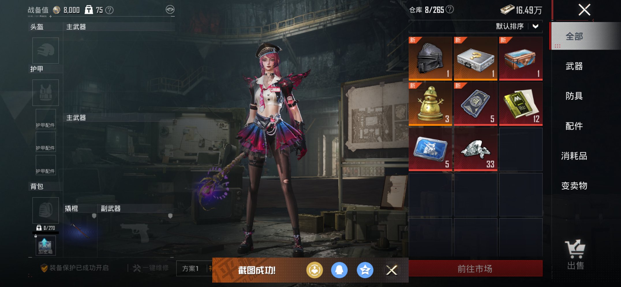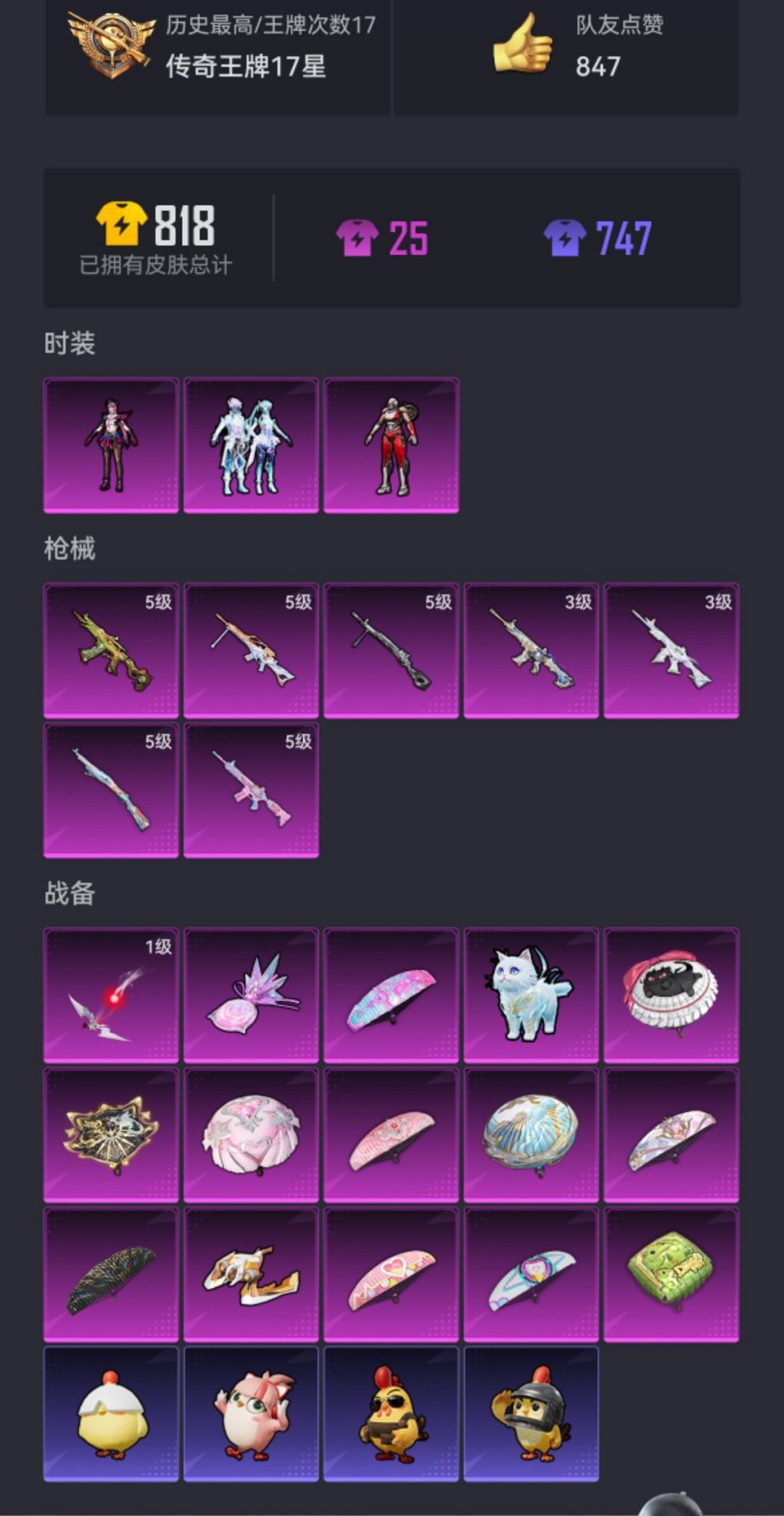 0载具-169套装-236呛皮-【巡查衣m4女娲灵识7特效呛3粉装 秒换绑不用等】 苹果q区-66622热力值-17印记-169套装-236呛皮 【2稀有】 巡查衣 mark.06蓝螳螂【3粉装】 罪夜之冕 阿尔茜 幻彩电音【7特效呛】 m416-女娲灵识3级 m416-灵猫魔法师3级 aks-74u-森灵之息5级 kar98k-巳巳如意5级 m416-电玩时刻5级 dp-28-豹影疾电