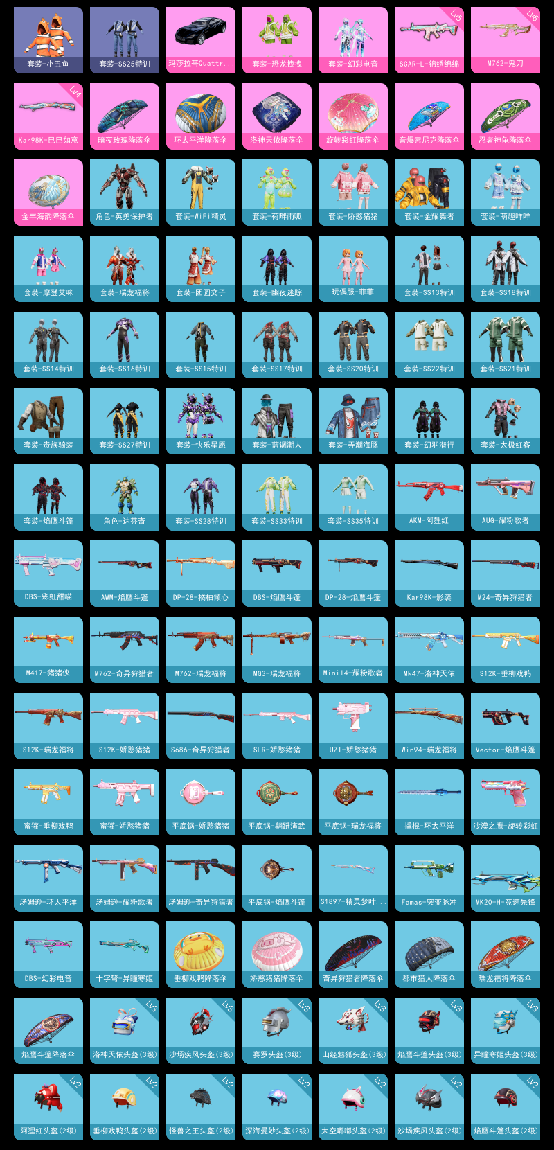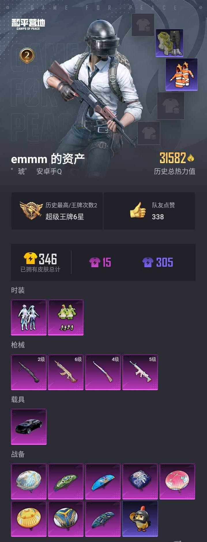 【和平精英】【lyhp21671】2粉装,4特效呛,1载具,历史最高段位:超级王牌6星 王牌印记2次 热力值:31582,87套装,95呛械,102装备,47战备;套装:套装-恐龙拽拽,套装-幻彩电音,套装-特训学院,套装-黄色运动,套装-蓝色运动,套装-黄色伏地魔,套装-白色伏地魔,套装-黑色伏地魔,套装-竞技名士,套装-深蓝色名流,套装-湖蓝色名流,套装-猛禽,套装-长空猛禽,套装-灼焰舞者,套装-青羽突袭者,套装-贵族骑装,套装-幻影武者,套装-街头潮人,套装-蓝彩潮人,套装-魅力单车,套装-绮丽涂鸦,套装-狂沙舞者,套装-破晓战魂,套装-森林游猎者,套装-都市魅力,套装-金耀舞者,套装-蓝调潮人,套装-弄潮海豚,套装-缤纷果语,套装-冰川特警,套装-极速红龙,套装-格斗先锋,套装-wifi精灵,套装-太极红客,套装-小丑鱼,套装-破蛋小黄鸡,套装-疯狂小兔子,套装-鹤鸣,套装-萌黄之夏,套装-牛气满满,套装-战术大师,套装-ss18特训,套装-飞行日记,套装-ss13特训,套装-ss14特训,角色-迪迦奥特曼,套装-吉莉礼服,套装-快乐星愿,套装-ss15特训,套装-ss16特训,角色-英勇保护者,套装-ss17特训,套装-瑞龙福将,套装-团圆交子,套装-福星高照,套装-虎虎生威吉莉,套装-ss20特训,套装-ss21特训,套装-萌趣咩咩,套装-娇憨猪猪,套装-荷畔雨呱,套装-ss22特训,套装-摩登艾咪,套装-王牌教练,套装-龟仙人,套装-ss25特训,套装-龙的传人,套装-空岛之星,玩偶服-菲菲,套装-焰鹰斗篷,套装-幽夜迷踪,套装-幻羽潜行,套装-ss27特训,套装-老实芭蕉,套装-ss28特训,角色-达芬奇,套装-海盐绵绵冰,套装-ss31特训,套装-智谋强哥,套装-ss33特训,套装-巳巳如意,套装-ss32特训,套装-顶瓜瓜,套装-大橘大利,套装-元气之梦,套装-ss34特训,套装-ss35特训;呛皮:akm-夜灯,akm-阿狸红,akm-彩虹符号,akm-龙的传人,6级m762-鬼刀,m762-奇异狩猎者,m762-瑞龙福将,mk47-洛神天依,mk47-乌木金纹,m416-蓝色火焰,m416-红色方程式,m416-糯团青竹,g36c-乌木金纹,5级scar-l-锦绣绵绵,scar-l-红色方程式,scar-l-海盐豹豹,ace32-冰晶雪宝,蜜獾-娇憨猪猪,蜜獾-垂柳戏鸭,蜜獾-天降萌叽,蜜獾-乌木金纹,aug-耀粉歌者,aug-异域银装,famas-突变脉冲,m16a4-幻世战舞者,m16a4-冰河战士,ac-val-天降萌叽,awm-焰鹰斗篷,awm-乌木金纹,4级kar98k-巳巳如意,kar98k-影袭,kar98k-彩虹符号,kar98k-乌木金纹,amr-乌木金纹,m24-奇异狩猎者,m200-乌木金纹,win94-瑞龙福将,sks-心之恋语,sks-炫彩节奏,mk14-乌木金纹,m417-猪猪侠,mk20-h-竞速先锋,mini14-炫彩节奏,mini14-耀粉歌者,slr-娇憨猪猪,p90-玩趣呆呆,p90-巳巳如意,p90-乌木金纹,汤姆逊-奇异狩猎者,汤姆逊-耀粉歌者,汤姆逊-环太平洋,汤姆逊-天降萌叽,ump45-蓝色火焰,ump45-生命誓言,ump45-海盐豹豹,vect-彩虹符号,vect-焰鹰斗篷,aks-74u-乌木金纹,uzi-炫彩节奏,uzi-娇憨猪猪,uzi-天降萌叽,uzi-冰河战士,野牛-乌木金纹,mp5k-乌木金纹,dbs-彩虹甜喵,dbs-焰鹰斗篷,dbs-幻彩电音,dbs-乌木金纹,s12k-瑞龙福将,s12k-娇憨猪猪,s12k-垂柳戏鸭,spas-12-狂鲨锋刃,s1897-炫彩节奏,s1897-精灵梦叶罗丽,s686-奇异狩猎者,m249-无面战甲,m249-乌木金纹,mg3-瑞龙福将,mg3-幻世战舞者,mg3-乌木金纹,2级dp-28-豹影疾电,dp-28-彩虹符号,dp-28-橘柚倾心,dp-28-焰鹰斗篷,短管霰弹-竹节火铳,沙墨之鹦-旋转彩虹,p1911-无面战甲,撬棍-环太平洋,平底锅-瑞龙福将,平底锅-娇憨猪猪,平底锅-翩跹演武,平底锅-焰鹰斗篷,破片手留单-呆爆全场,破片手留单-巳巳如意,十子怒-异瞳寒姬;载具:玛莎拉蒂quattropte夜幕蓝;降落伞:空岛之星尾迹; 详情看图2粉装4特效呛1载具 恐龙拽拽 狂沙舞者 6级m762鬼刀 玛莎拉蒂