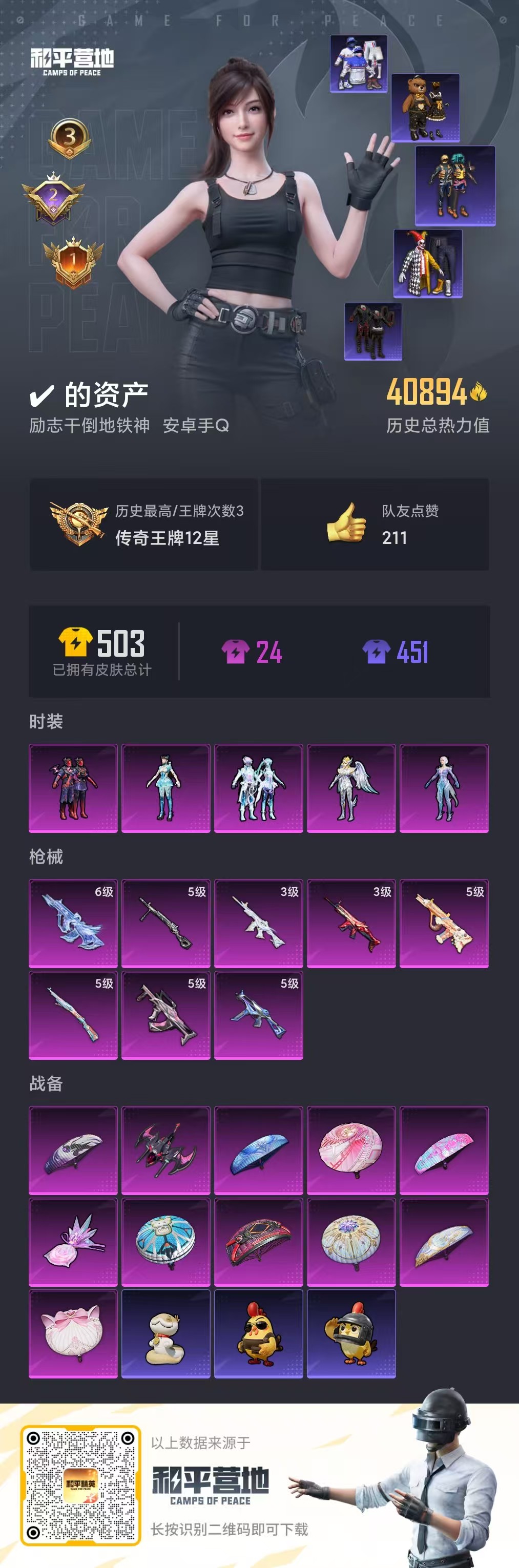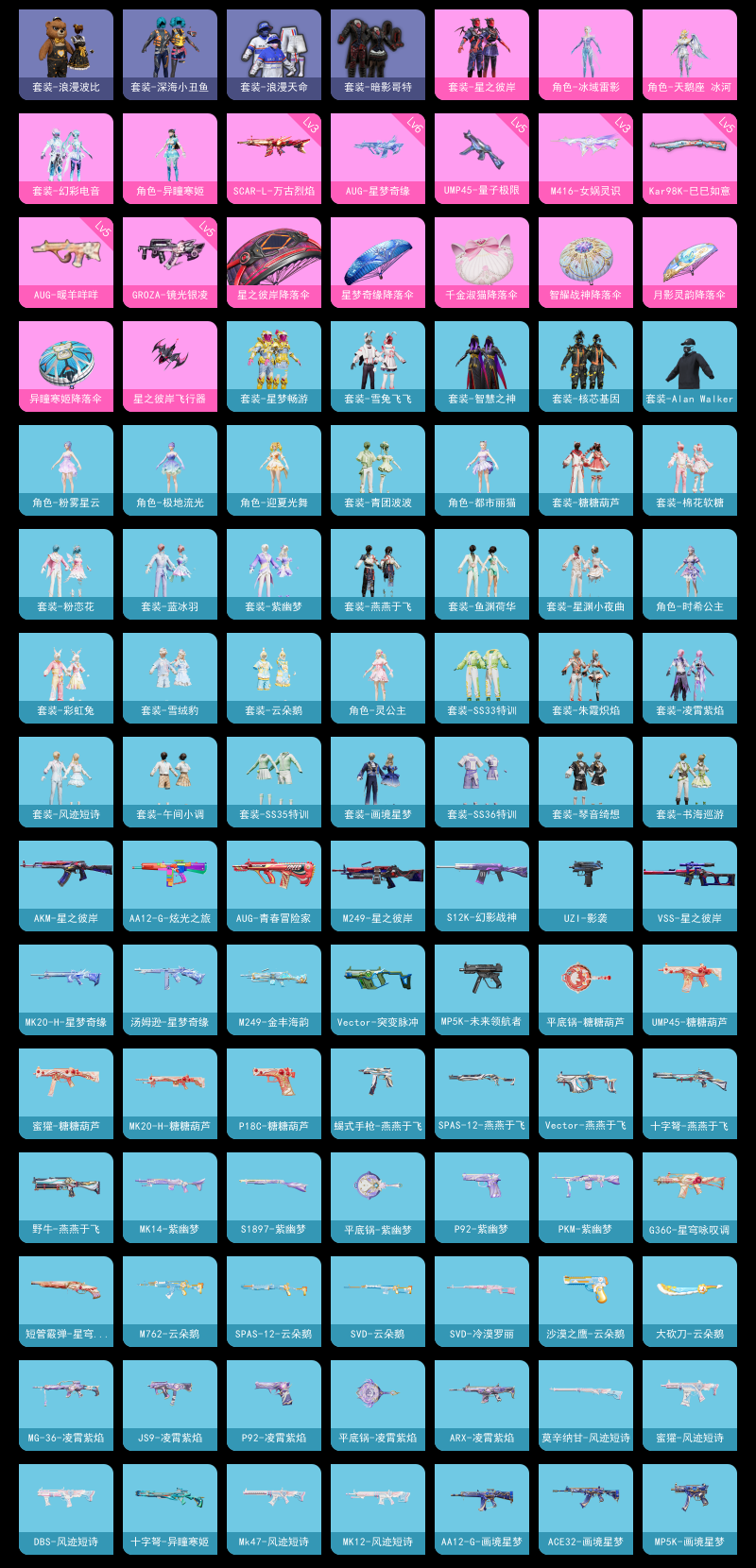 【和平精英】【txhp7015】5粉装,8特效呛,0载具,历史最高段位:传奇王牌12星 王牌印记3次 热力值:40894,98套装,131呛械,177装备,79战备;套装:套装-星之彼岸,角色-冰域雷影,角色-异瞳寒姬,角色-天鹅座 冰河,套装-幻彩电音,套装-黄色运动,套装-白色伏地魔,套装-竞技名士,套装-黄色名流,套装-长空猛禽,套装-海岛探路者,套装-旭日情侣,套装-浪漫天命,套装-特战装甲,套装-春日漫步,套装-完美偶像,套装-街头潮人,套装-魅力单车,套装-绮丽涂鸦,套装-竞技达人朋克,套装-超能勇士,套装-狂沙舞者,套装-破晓战魂,套装-幻世保卫者,套装-森林游猎者,套装-极地朋克,套装-清新柠檬,套装-暗影哥特,套装-深海小丑鱼,套装-夏日倾情,套装-缤纷果语,套装-alan walker,套装-龙魂突击队,套装-破蛋小黄鸡,套装-花面小丑,套装-浪漫波比,套装-核芯基因,套装-鹤鸣,套装-智慧之神,套装-白熊同盟,套装-白糯汤圆,套装-战术大师,套装-星梦畅游,套装-雪兔飞飞,套装-香桃花海,套装-冰河战士,套装-云魄琉璃,套装-恋语绒绒,角色-迎夏光舞,角色-极地流光,角色-粉雾星云,套装-街头风暴,套装-蝶变,套装-异域银装,角色-都市丽猫,套装-星途旅人,套装-ss30特训,套装-青团波波,套装-棉花软糖,套装-糖糖葫芦,套装-ss31特训,套装-鱼渊荷华,套装-燕燕于飞,套装-智谋强哥,角色-风玲,套装-紫幽梦,套装-粉恋花,套装-ss33特训,套装-云朵鹅,套装-巳巳如意,套装-ss32特训,套装-彩虹兔,角色-银色战姬,套装-青翼流星,套装-蓝冰羽,套装-顶瓜瓜,套装-雪绒豹,套装-狂鲨锋刃,套装-大橘大利,角色-时希公主,角色-灵公主,套装-星渊小夜曲,套装-炫彩糖果,套装-元气之梦,套装-ss34特训,套装-朱霞炽焰,套装-凌霄紫焰,套装-薄荷星砂,套装-ss35特训,套装-午间小调,套装-风迹短诗,套装-琴音绮想,套装-画境星梦,套装-书海巡游,套装-ss37特训,套装-ss36特训,套装-雪国风尚,套装-萌鸡速递;呛皮:6级aug-星梦奇缘,5级aug-暖羊咩咩,aug-青春冒险家,aug-天降萌叽,aug-异域银装,aug-冰晶雪宝,famas-霓彩脉冲,famas-乌木金纹,3级scar-l-万古烈焰,scar-l-夜灯,scar-l-炫彩节奏,scar-l-玉兔迎春,scar-l-镜光械姬,scar-l-星途旅人,m16a4-冰河战士,蜜獾-天降萌叽,蜜獾-糖糖葫芦,蜜獾-鸡智如我,蜜獾-风迹短诗,蜜獾-乌木金纹,arx-凌霄紫焰,3级m416-女娲灵识,m416-蓝色火焰,m416-红色方程式,akm-生命誓言,akm-星之彼岸,akm-霓彩脉冲,5级groza-镜光银凌,groza-紫矿核心,ace32-画境星梦,ace32-冰晶雪宝,m762-彩虹符号,m762-天降萌叽,m762-云朵鹅,m762-登顶巅峰,g36c-星穹咏叹调,mk47-风迹短诗,svd-冷漠罗丽,svd-云朵鹅,svd-霓彩脉冲,莫辛纳甘-风迹短诗,win94-乌木金纹,m24-天降萌叽,m200-乌木金纹,5级kar98k-巳巳如意,kar98k-顶峰精英,slr-霓彩脉冲,slr-乌木金纹,mk14-冰河战士,mk14-紫幽梦,mk14-紫晶流影,vss-星之彼岸,vss-香桃花海,mk20-h-星梦奇缘,mk20-h-糖糖葫芦,mk20-h-狂鲨锋刃,mk20-h-乌木金纹,m1加兰德-画境星梦,sks-炫彩节奏,mk12-风迹短诗,mk12-乌木金纹,mini14-香桃花海,mp5k-未来领航者,mp5k-画境星梦,p90-巳巳如意,p90-紫矿核心,js9-凌霄紫焰,汤姆逊-星梦奇缘,野牛-燕燕于飞,uzi-影袭,uzi-冰河战士,uzi-炫彩糖果,vect-突变脉冲,vect-燕燕于飞,5级ump45-量子极限,ump45-夜灯,ump45-糖糖葫芦,aks-74u-乌木金纹,dbs-月影灵韵,dbs-风迹短诗,dbs-乌木金纹,spas-12-燕燕于飞,spas-12-狂鲨锋刃,spas-12-云朵鹅,spas-12-乌木金纹,s1897-紫幽梦,s1897-糯团青竹,s12k-幻影战神,s12k-夜灯,s12k-玩趣呆呆,s12k-霓彩脉冲,s686-巳巳如意,aa12-g-炫光之旅,aa12-g-画境星梦,m249-星之彼岸,m249-金丰海韵,m249-冰晶雪宝,mg3-幻世战舞者,mg3-霓彩脉冲,mg-36-凌霄紫焰,mg-36-薄荷星砂,pkm-啾咪啾咪,pkm-紫幽梦,5级dp-28-豹影疾电,dp-28-彩虹符号,p92-紫幽梦,p92-凌霄紫焰,蝎式手呛-燕燕于飞,短管霰弹-星穹咏叹调,沙墨之鹦-云朵鹅,p18c-糖糖葫芦,撬棍-炽纹蛇影,撬棍-咒蚀之裁,撬棍-冰晶雪宝,平底锅-糖糖葫芦,平底锅-紫幽梦,平底锅-凌霄紫焰,平底锅-画境星梦,大砍刀-云朵鹅,十子怒-异瞳寒姬,十子怒-燕燕于飞,十子怒-异域银装,破片手留单-星途旅人,破片手留单-海盐豹豹,破片手留单-拽到爆炸,破片手留单-巳巳如意,破片手留单-爆破雪人,燃烧瓶-福马献瑞,盐雾蛋-炽纹蛇影,盐雾蛋-冰氧夏日,铝热弹-炫彩糖果;降落伞:星之彼岸飞行器,炫彩糖果飞行器,冰柠泡泡飞行器,异域银装飞行器,顶峰精英尾迹,狂鲨锋刃飞行器,鸡智如我飞行器,登顶巅峰飞行器,马上有福飞行器; 详情看图3王牌印记-4w热力值-5粉-8特 星之彼岸-浪漫波比-深海小丑鱼-浪漫天命-哥特-狂沙 6级星梦aug-3级女娲m4-3级万古死噶