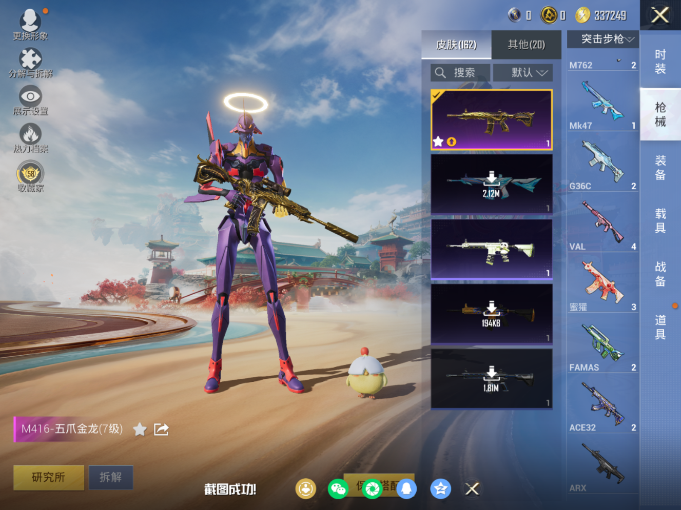 0载具-131套装-162呛皮2稀有4粉装9特效呛9热门131套装162呛皮 51394热力值 6印记 历史卓越王牌8星 【2稀有】 奇异狩猎者 akm-缤纷海域 【3粉装】 觉醒初号机 梦幻火箭 金丰海韵 【9特效呛】 m416-五爪金龙 7级 scar-l-锦绣绵绵 5级 aks-7