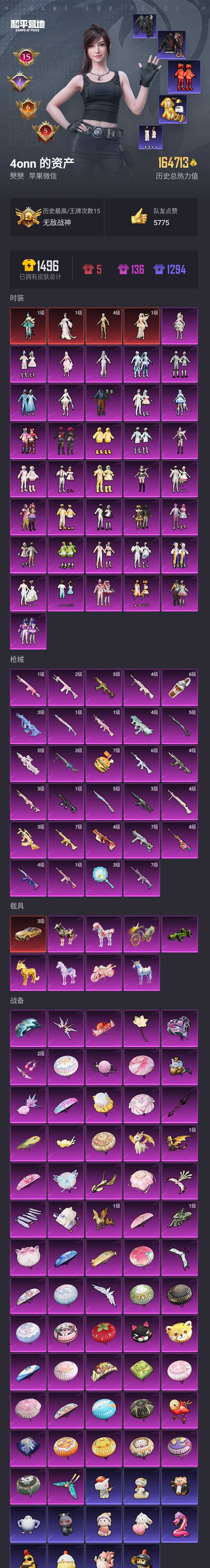 【和平精英】【lyhp21785】37粉装,29特效呛,9载具,历史最高段位:无敌战神 王牌印记15次 热力值:164713,275套装,377呛械,540装备,260战备;套装:沙丘之主-图卡盟,精灵之光-露米娜,辉羽雀灵-初翊,盛世惊鸿-云鸾,套装-怪诞乔克,套装-甜心巧克力,套装-宝贝奶油派,套装-天使彩虹糖,套装-雪国幻梦,套装-蝶舞迷情,套装-缤纷油彩,套装-放客神游,套装-馨动时刻,套装-极致幻想,套装-俏皮狐尾,套装-恐龙拽拽,套装-精灵娃娃,套装-橘柚倾心,套装-岚岚物语,套装-海盐物语,套装-暖熊萌萌,套装-寒光使者,套装-甜梦小狐,套装-垂柳戏鸭,套装-冰川粉黛,套装-冰川幽秘,套装-冰川红玫,套装-旋转彩虹,套装-挚爱序曲,套装-第五大道,套装-仲夏莫吉托,角色-白兰星,角色-茉莉星,套装-蜜语绒猫,套装-傲傲奶龙,角色-美琪,角色-千金淑猫,套装-幻彩电音,角色-冷漠罗丽,角色-绝对恒星,角色-回旋牧梦使,套装-特训学院,套装-骑行爱好者,套装-竞技名士,套装-野性山猫,套装-长空猛禽,套装-漫步者,套装-竞技勇士朋克,套装-赤蝎幽灵,套装-都市猎人,套装-水银刺客,套装-浪漫天命,套装-特战装甲,套装-战地菁英,套装-灰色格斗者,套装-甜蜜告白,套装-春日漫步,套装-鹰眼刺客,套装-冰冻风暴,套装-冷酷挑战者,套装-摇滚舞王,套装-街头潮人,套装-红潮炫舞,套装-酷萌兔限定,套装-魅力单车,套装-耀眼新星,套装-雪山征服者,套装-坚韧舞者,套装-都市漫游者,套装-都市魅力,套装-荣耀,套装-热血青春,套装-派对舞王,套装-丛林猎人,套装-ss2特训,套装-雪山精英,套装-传奇侦探,套装-幻世战舞者,套装-暗影哥特,套装-弄潮海豚,套装-迅捷狂鲨,套装-呆萌铁蟹,套装-夏日倾情,套装-甜蜜熊情侣,套装-青涩时光,套装-缤纷果语,套装-龙魂突击队,套装-小丑鱼,套装-破蛋小黄鸡,套装-疯狂小兔子,套装-深蓝冒险家,套装-迷域探索者,套装-ss5特训,套装-圣诞大吉,套装-冰原使者,套装-凛冬战士,套装-浪漫波比,套装-北国孤狼,套装-ss6特训,套装-拳皇97草薙京,套装-炽焰拳师,套装-格斗专家,套装-星光纪元,套装-奇迹天团,套装-仓鼠灰灰,套装-云纹魔法士,套装-淡雅花蕊,套装-玲珑飞花,套装-跃动心情,套装-ss7特训,套装-核芯基因,套装-精神漫游,套装-赛博空间,套装-软嫩糖心蛋,套装-ss10特训,套装-潮萌小黄鸭,套装-ss8特训,套装-智慧之神,套装-萌黄之夏,套装-动感兔斯基人偶服,套装-夏日音浪,套装-ss9特训,套装-牛气满满,套装-玫瑰恋情,套装-韶华初心,套装-青龙圣者,套装-原初圣火,套装-逆风勇士,套装-战术大师,套装-ss12特训,套装-ss18特训,套装-耀粉歌者,套装-飞行日记,套装-ss13特训,套装-曼妙人鱼,套装-热情海星,套装-纯真浪花,套装-天籁歌者,套装-电音精灵,套装-ss17特训,套装-豚鼠丹丹,套装-雪兔飞飞,套装-异彩先驱,套装-霓虹极客,套装-沁蓝冰爽,套装-浓情蜜辣,套装-粉团憨憨,套装-软羊咩咩,套装-红熊茄茄,套装-梦幻奶油,套装-酸甜橘柚,套装-樱桃黑巧,套装-ss22特训,套装-和煦暖阳,套装-田园牧歌,套装-轻风白浪,套装-碧波幻想,套装-绚烂繁星,套装-光之冒险,套装-绯格组合,套装-ss23特训,套装-莱茵河畔,套装-香榭午后,套装-白兰地假日,套装-龙舌兰冰茶,套装-甜梦熊熊,套装-神气柴柴,套装-懵萌河马,套装-灵蜜圈圈,套装-妙红点点,套装-幻彩翩翩,套装-糯粉咩咩,套装-王牌教练,套装-柠萌假日,套装-青玉碎影,套装-ss24特训,套装-华灯初上,套装-软软马卡龙,套装-恋恋初桃,套装-龟仙人,套装-涂山之恋,套装-ss25特训,套装-惊鸿侠骨,套装-锦衣飞扬,套装-双彩绵绵,套装-奶油庭院,套装-晨曦薄雾,套装-绝对偶像,套装-元气发射,套装-香桃花海,套装-沙丘之歌,套装-是爱神辣,套装-龙的传人,套装-冰河战士,套装-ss26特训,套装-快闪甜心,套装-春光漫游,套装-空岛之星,套装-无暇誓言,套装-童真绒兔,套装-萌趣绒叽,套装-贝斯之夜,套装-焰鹰斗篷,套装-幽夜迷踪,套装-幻羽潜行,套装-ss27特训,套装-恋语绒绒,套装-ss28特训,角色-极地流光,角色-粉雾星云,角色-白光莹,套装-街头风暴,套装-海盐绵绵冰,套装-湖畔霞光,套装-小熊娃娃,套装-ss29特训,套装-雏菊兔兔,套装-萝兰蝴蝶,套装-异域银装,角色-摩登魅猫,角色-蜜桃派对,角色-都市丽猫,套装-星途旅人,角色-糖霜甜心,套装-ss30特训,套装-青团波波,套装-棉花软糖,套装-糖糖葫芦,角色-碧青流霞,套装-纯白跃动,套装-诡诞巡游,套装-ss31特训,套装-鱼渊荷华,套装-燕燕于飞,套装-智谋强哥,角色-瑰梦爱神,套装-紫幽梦,套装-粉恋花,套装-晶辉守护,套装-ss33特训,套装-云朵鹅,套装-巳巳如意,套装-ss32特训,套装-青翼流星,套装-蓝冰羽,套装-顶瓜瓜,套装-雪绒豹,套装-狂鲨锋刃,套装-大橘大利,角色-时希公主,角色-灵公主,套装-炫彩糖果,套装-星影赞美诗,角色-乐音,套装-ss34特训,套装-朱霞炽焰,套装-凌霄紫焰,套装-薄荷星砂,套装-ss35特训,套装-午间小调,套装-秘语星愿,套装-风迹短诗,套装-琴音绮想,角色-超感刻度,套装-画境星梦,套装-书海巡游,角色-甜心蒙太奇,角色-月烬之祷,套装-ss37特训,套装-ss36特训,套装-芝士鼠鼠,套装-红釉青花,套装-雪国风尚,套装-雨过天青,套装-超能元气;呛皮:m16a4-魔法学院,m16a4-冰河战士,m16a4-千金淑猫,m16a4-信仰神谕,m16a4-雨过天青,1级m416-心之恋语,7级m416-暖熊萌萌,1级m416-墨龙九天,6级m416-女娲灵识,m416-蓝色火焰,m416-魔法学院,m416-神秘黑猫,m416-潮汐统领,m416-诡夜天鹅,m416-糯团青竹,m416-乌木金纹,4级akm-梦之