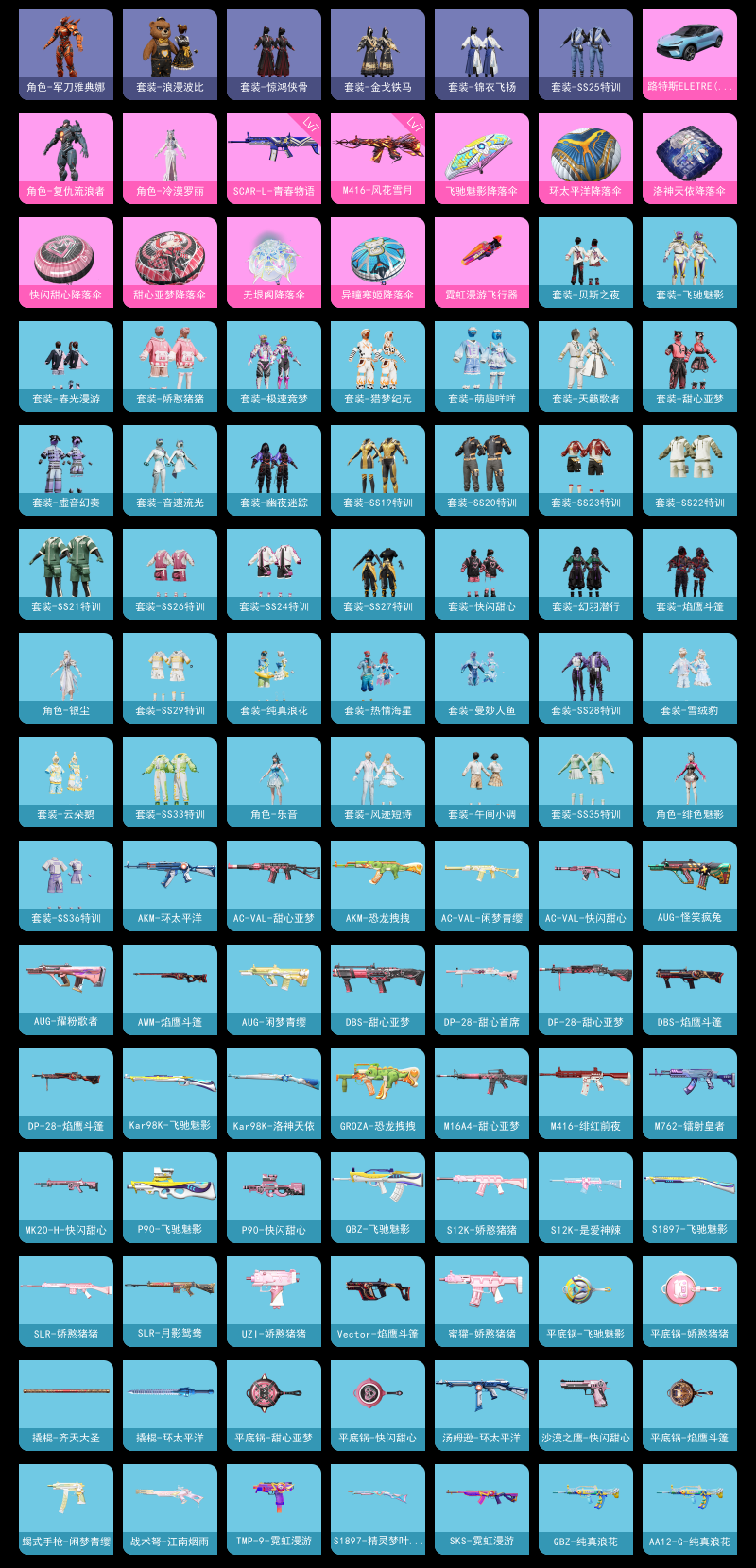 【和平精英】【lyhp21765】2粉装,4特效呛,1载具,历史最高段位:超级王牌8星 王牌印记7次 热力值:44941,101套装,159呛械,172装备,72战备;套装:角色-复仇流浪者,角色-冷漠罗丽,套装-猎鹰,套装-青年教官,套装-竞技名士,套装-湖蓝色名流,套装-长空猛禽,套装-旭日情侣,套装-灼焰舞者,套装-特战装甲,套装-特殊使命,套装-完美偶像,套装-幻影武者,套装-怒火燎原,套装-魅力单车,套装-耀眼新星,套装-野性战心,套装-破晓战魂,套装-沙漠兵团,套装-雪山精英,套装-酷潮明星,套装-幻世战舞者,套装-龙魂突击队,套装-冰川特警,套装-格斗先锋,套装-麻辣教官,套装-破蛋小黄鸡,套装-疯狂小兔子,套装-浪漫波比,套装-鹤鸣,套装-霓虹街区,套装-萌黄之夏,套装-探宝勇士,套装-牛气满满,套装-战术大师,套装-牛气冲天,套装-飞行日记,套装-曼妙人鱼,套装-热情海星,套装-纯真浪花,套装-天籁歌者,角色-军刀雅典娜,套装-ss19特训,套装-极速竞梦,套装-飞驰魅影,套装-音速流光,套装-炫蓝之夏,套装-ss20特训,套装-猎梦纪元,套装-甜心亚梦,套装-虚音幻奏,套装-ss21特训,套装-萌趣咩咩,套装-娇憨猪猪,套装-玉兔迎春,套装-ss22特训,套装-绯格组合,套装-ss23特训,套装-王牌教练,套装-柠萌假日,套装-青玉碎影,套装-ss24特训,套装-龟仙人,套装-ss25特训,套装-金戈铁马,套装-惊鸿侠骨,套装-锦衣飞扬,套装-龙的传人,套装-冰河战士,套装-ss26特训,套装-快闪甜心,套装-春光漫游,套装-空岛之星,套装-贝斯之夜,套装-焰鹰斗篷,套装-幽夜迷踪,套装-幻羽潜行,套装-ss27特训,套装-老实芭蕉,套装-ss28特训,角色-银尘,套装-街头风暴,套装-海盐绵绵冰,套装-ss29特训,角色-绯色魅影,套装-ss31特训,套装-ss33特训,套装-云朵鹅,套装-雪绒豹,套装-狂鲨锋刃,角色-乐音,套装-元气之梦,套装-ss34特训,套装-薄荷星砂,套装-ss35特训,套装-午间小调,套装-风迹短诗,套装-ss36特训,套装-雪国风尚,套装-超能元气,套装-萌鸡速递;呛皮:7级m416-风花雪月,m416-绯红前夜,m416-红色方程式,m416-糯团青竹,ac-val-甜心亚梦,ac-val-乌木金纹,ac-val-天降萌叽,ac-val-闲梦青缨,ac-val-快闪甜心,m16a4-红色方程式,m16a4-甜心亚梦,m16a4-幻世战舞者,m16a4-冰河战士,ace32-冰晶雪宝,7级scar-l-青春物语,scar-l-夜灯,scar-l-彩虹符号,scar-l-玉兔迎春,scar-l-海盐豹豹,aug-耀粉歌者,aug-怪笑疯兔,aug-闲梦青缨,aug-异域银装,aug-紫晶流影,mk47-乌木金纹,mk47-风迹短诗,groza-恐龙拽拽,m762-镭射皇者,m762-天降萌叽,m762-云朵鹅,akm-霓虹街区,akm-涂鸦街区,akm-彩虹符号,akm-恐龙拽拽,akm-环太平洋,akm-龙的传人,akm-霓彩脉冲,蜜獾-娇憨猪猪,蜜獾-绯穹魔姬,蜜獾-风迹短诗,q-彩虹符号,q-飞驰魅影,q-纯真浪花,famas-霓彩脉冲,famas-乌木金纹,kar98k-彩虹符号,kar98k-炫彩节奏,kar98k-洛神天依,kar98k-飞驰魅影,awm-焰鹰斗篷,awm-纯真浪花,win94-乌木金纹,m24-炫彩节奏,m24-乌木金纹,svd-冷漠罗丽,svd-云朵鹅,svd-霓彩脉冲,amr-鸡智如我,amr-乌木金纹,m200-惊鸿侠骨,m200-罪夜之冕,莫辛纳甘-乌木金纹,莫辛纳甘-风迹短诗,mk20-h-快闪甜心,mk20-h-星途旅人,mk20-h-狂鲨锋刃,mk20-h-乌木金纹,mk12-风迹短诗,mk12-乌木金纹,mini14-涂山之恋,mini14-鸡智如我,5级mk14-甜梦熊击,mk14-乌木金纹,mk14-冰河战士,mk14-薄荷星砂,sks-炫彩节奏,sks-霓虹漫游,slr-月影鸳鸯,slr-娇憨猪猪,slr-霓彩脉冲,m417-惊鸿侠骨,汤姆逊-环太平洋,汤姆逊-天降萌叽,汤姆逊-纯真浪花,p90-飞驰魅影,p90-快闪甜心,p90-紫矿核心,p90-乌木金纹,aks-74u-乌木金纹,uzi-红色方程式,uzi-娇憨猪猪,uzi-天降萌叽,uzi-冰河战士,uzi-啾咪啾咪,ump45-夜灯,ump45-生命誓言,ump45-极意拳锋,vect-生命誓言,vect-焰鹰斗篷,mp5k-乌木金纹,spas-12-狂鲨锋刃,spas-12-云朵鹅,s1897-炫彩节奏,s1897-飞驰魅影,s1897-精灵梦叶罗丽,dbs-甜心亚梦,dbs-焰鹰斗篷,dbs-风迹短诗,dbs-乌木金纹,s686-生命誓言,s686-彩虹符号,s12k-娇憨猪猪,s12k-幻世战舞者,s12k-是爱神辣,s12k-霓彩脉冲,aa12-g-纯真浪花,mg3-幻世战舞者,mg3-乌木金纹,mg3-惊鸿侠骨,m249-彩虹符号,m249-糯团青竹,m249-冰晶雪宝,5级dp-28-豹影疾电,dp-28-彩虹符号,dp-28-甜心亚梦,dp-28-甜心首席,dp-28-焰鹰斗篷,mg-36-薄荷星砂,沙墨之鹦-快闪甜心,沙墨之鹦-羲和光序,沙墨之鹦-云朵鹅,tmp-9-霓虹漫游,信号呛-异瞳寒姬,蝎式手呛-闲梦青缨,平底锅-飞驰魅影,平底锅-甜心亚梦,平底锅-娇憨猪猪,平底锅-光之冒险,平底锅-惊鸿侠骨,平底锅-快闪甜心,平底锅-空岛之星,平底锅-焰鹰斗篷,平底锅-纯真浪花,撬棍-齐天大圣,撬棍-环太平洋,撬棍-幻世战舞者,撬棍-冷漠罗丽,撬棍-冰晶雪宝,大砍刀-云朵鹅,破片手留单-呆爆全场,破片手留单-拽到爆炸,破片手留单-爆破雪人,爆炸猎弓-惊鸿侠骨,爆炸猎弓-喜羊羊与灰太狼,十子怒-异瞳寒姬,十子怒-异域银装,铝热弹-炫彩糖果,盐雾蛋-冰氧夏日,战术弩-江南烟雨;载具:路特斯eletre冰川蓝;降落伞:霓虹漫游飞行器,空岛之星尾迹,狂鲨锋刃飞行器,鸡智如我飞行器,登顶巅峰飞行器; 详情看图2粉装4特效呛1载具 冷漠罗丽 满级m4风花雪月 满级死噶青春物语 路特斯