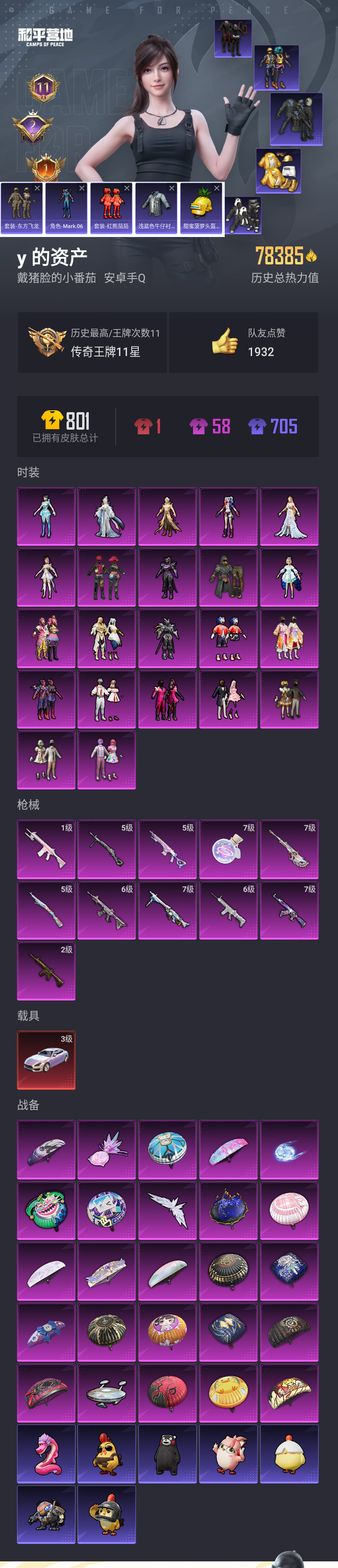 【和平精英】【lyhp21775】22粉装,11特效呛,1载具,历史最高段位:传奇王牌11星 王牌印记11次 热力值:78385,153套装,219呛械,278装备,124战备;套装:套装-极限特训,套装-甜心巧克力,套装-宝贝奶油派,套装-天使彩虹糖,套装-缤纷油彩,套装-放客神游,套装-花间之火,套装-蜜桃特工,套装-蝶舞蔷薇,角色-洛天依,套装-星之彼岸,套装-飓风飞鹰,套装-冰川红玫,套装-音爆索尼克,套装-天星战神,角色-星云暗核,角色-圣堂之誓,角色-异瞳寒姬,角色-智耀战神,角色-罗征,角色-狂魅哈莉,角色-宁雨蝶,套装-竞技名士,套装-长空猛禽,套装-漫步者,套装-海岛探路者,套装-雨林探路者,套装-旭日情侣,套装-都市猎人,套装-水银刺客,套装-春日漫步,套装-龙腾端午,套装-鹰眼刺客,套装-冰冻风暴,套装-冷酷挑战者,套装-摇滚战魂,套装-摇滚舞王,套装-街头潮人,套装-千禧之恋,套装-耀眼新星,套装-坚韧舞者,套装-野性战心,套装-超能勇士,套装-沙漠兵团,套装-派对舞王,套装-极地朋克,套装-幻世战舞者,套装-血色贵族,套装-暗影哥特,套装-迅捷狂鲨,套装-深海小丑鱼,套装-青涩时光,套装-缤纷果语,套装-alan walker,套装-胖达团团,套装-wifi精灵,套装-麻辣教官,套装-东方飞龙,套装-初雨海棠,套装-破蛋小黄鸡,套装-金鼠迎春,套装-军械专家,套装-鹤鸣,套装-霓虹街区,套装-本愿之火,套装-牛气满满,套装-白糯汤圆,套装-战术大师,套装-牛气冲天,套装-飞行日记,套装-曼妙人鱼,套装-热情海星,套装-纯真浪花,套装-天籁歌者,套装-电音精灵,套装-吉莉礼服,套装-ss21特训,套装-萌趣咩咩,套装-娇憨猪猪,套装-红熊茄茄,套装-酸甜橘柚,套装-玉兔迎春,套装-ss22特训,套装-和煦暖阳,套装-田园牧歌,套装-轻风白浪,套装-熠彩粉晶,套装-光之冒险,套装-绯格组合,套装-ss23特训,套装-莱茵河畔,套装-香榭午后,套装-龙舌兰冰茶,套装-神气柴柴,套装-懵萌河马,套装-妙红点点,套装-幻彩翩翩,套装-王牌教练,套装-柠萌假日,套装-青玉碎影,套装-ss24特训,套装-龟仙人,套装-涂山之恋,套装-ss25特训,套装-金戈铁马,套装-惊鸿侠骨,套装-锦衣飞扬,套装-摩登王国,套装-龙的传人,套装-ss26特训,套装-快闪甜心,套装-春光漫游,套装-空岛之星,套装-无暇誓言,套装-明鸳圣池,套装-贝斯之夜,套装-绵云熊熊,玩偶服-菲菲,套装-ss27特训,套装-恋语绒绒,角色-银尘,角色-mark.06,套装-海盐绵绵冰,角色-无面战甲,套装-小鸟芋圆,套装-诡诞巡游,套装-ss31特训,套装-鱼渊荷华,套装-燕燕于飞,套装-智谋强哥,套装-紫幽梦,套装-ss33特训,套装-云朵鹅,套装-巳巳如意,套装-ss32特训,套装-蓝冰羽,套装-雪绒豹,套装-大橘大利,套装-极速光影,套装-星渊小夜曲,套装-炫彩糖果,套装-星影赞美诗,套装-ss34特训,套装-游乐,套装-ss35特训,套装-琴音绮想,套装-画境星梦,套装-书海巡游,套装-ss37特训,套装-ss36特训,角色-霜刃之御,套装-红釉青花,套装-雪国风尚;呛皮:7级akm-星际浪客,akm-影袭,akm-奇异狩猎者,akm-缤纷海域,akm-百万伏特,akm-霓虹街区,akm-阿狸红,akm-墨染幽兰,akm-龙的传人,akm-霓彩脉冲,mk47-百万伏特,mk47-粉色回忆,mk47-洛神天依,mk47-乌木金纹,mk47-妙红点点,mk47-摩登王国,ace32-画境星梦,ace32-冰晶雪宝,m762-甜心宝贝,m762-彩虹符号,m762-第五大道,m762-天降萌叽,m762-萌物绒绒,m762-云朵鹅,蜜獾-娇憨猪猪,蜜獾-天降萌叽,蜜獾-精灵梦叶罗丽,蜜獾-乌木金纹,aug-甜蜜菠萝,aug-天降萌叽,aug-异域银装,aug-冰晶雪宝,g36c-懵萌河马,g36c-星穹咏叹调,6级scar-l-纯梦嫁纱,scar-l-粉色回忆,scar-l-玉兔迎春,ac-val-乌木金纹,ac-val-彩虹甜喵,ac-val-天降萌叽,ac-val-快闪甜心,groza-影袭,groza-彩虹符号,groza-田园牧歌,groza-懵萌河马,groza-无面战甲,groza-紫矿核心,2级m416-五爪金龙,6级m416-超新星,m416-糯团青竹,m416-摩登王国,q-彩虹符号,q-洛神天依,q-未来歌姬,q-纯真浪花,m16a4-蓝色火焰,famas-乌木金纹,7级amr-智耀战神,amr-妙红点点,amr-雨过天青,amr-乌木金纹,5级kar98k-巳巳如意,kar98k-影袭,kar98k-金玉无双,kar98k-洛神天依,kar98k-星穹咏叹调,svd-冷漠罗丽,svd-云朵鹅,awm-垂柳戏鸭,awm-圣堂之誓,awm-纯真浪花,win94-乌木金纹,莫辛纳甘-乌木金纹,莫辛纳甘-懵萌河马,m24-影袭,m24-未来战士,m24-炫彩节奏,m24-青空秋雨,m24-歌者泠鸢,m24-仲夏莫吉托,m200-惊鸿侠骨,m200-爆裂游戏,m200-乌木金纹,5级mk14-甜梦熊击,mk14-紫幽梦,mk14-薄荷星砂,sks-金玉无双,sks-迅猛狂鲨,sks-炫彩节奏,sks-糯团青竹,vss-未来战士,vss-粉色回忆,vss-星之彼岸,vss-呛炮玫瑰,vss-田园牧歌,vss-彩虹符号,mini14-金玉无双,mini14-绯穹魔姬,1级m417-第五大道,m417-惊鸿侠骨,slr-月影鸳鸯,slr-娇憨猪猪,slr-彩虹符号,mk20-h-快闪甜心,mk20-h-狂鲨锋刃,m1加兰德-画境星梦,mk12-乌木金纹,p90-快闪甜心,p90-玩趣呆呆,p90-巳巳如意,p90-紫矿核心,p90-乌木金纹,ump45-金玉无双,ump45-粉色回忆,ump45-涂山之恋,ump45-炫光之旅,ump45-繁龙极客,ump45-海盐豹豹,ump45-极意拳锋,vect-金玉无双,vect-田园牧歌,vect-创世·救赎,vect-燕燕于飞,uzi-影袭,uzi-金玉无双,uzi-娇憨猪猪,uzi-天降萌叽,uzi-啾咪啾咪,uzi-炫彩糖果,野牛-燕燕于飞,mp5k-彩虹嘻嘻猴,mp5k-画境星梦,mp5k-乌木金纹,汤姆逊-花间之火,汤姆逊-炫彩节奏,汤姆逊-暗夜鎏金,汤姆逊-天降萌叽,汤姆逊-纯真浪花,汤姆逊-樱桃泡泡,汤姆逊-智耀战神,aks-74u-乌木金纹,s12k-娇憨猪猪,s12k-垂柳戏鸭,s12k-玩趣呆呆,s12k-霓彩脉冲,dbs-第五大道,dbs-彩虹符号,dbs-圣堂之誓,dbs-乌木金纹,s686-巳巳如意,spas-12-田园牧歌,spas-12-燕燕