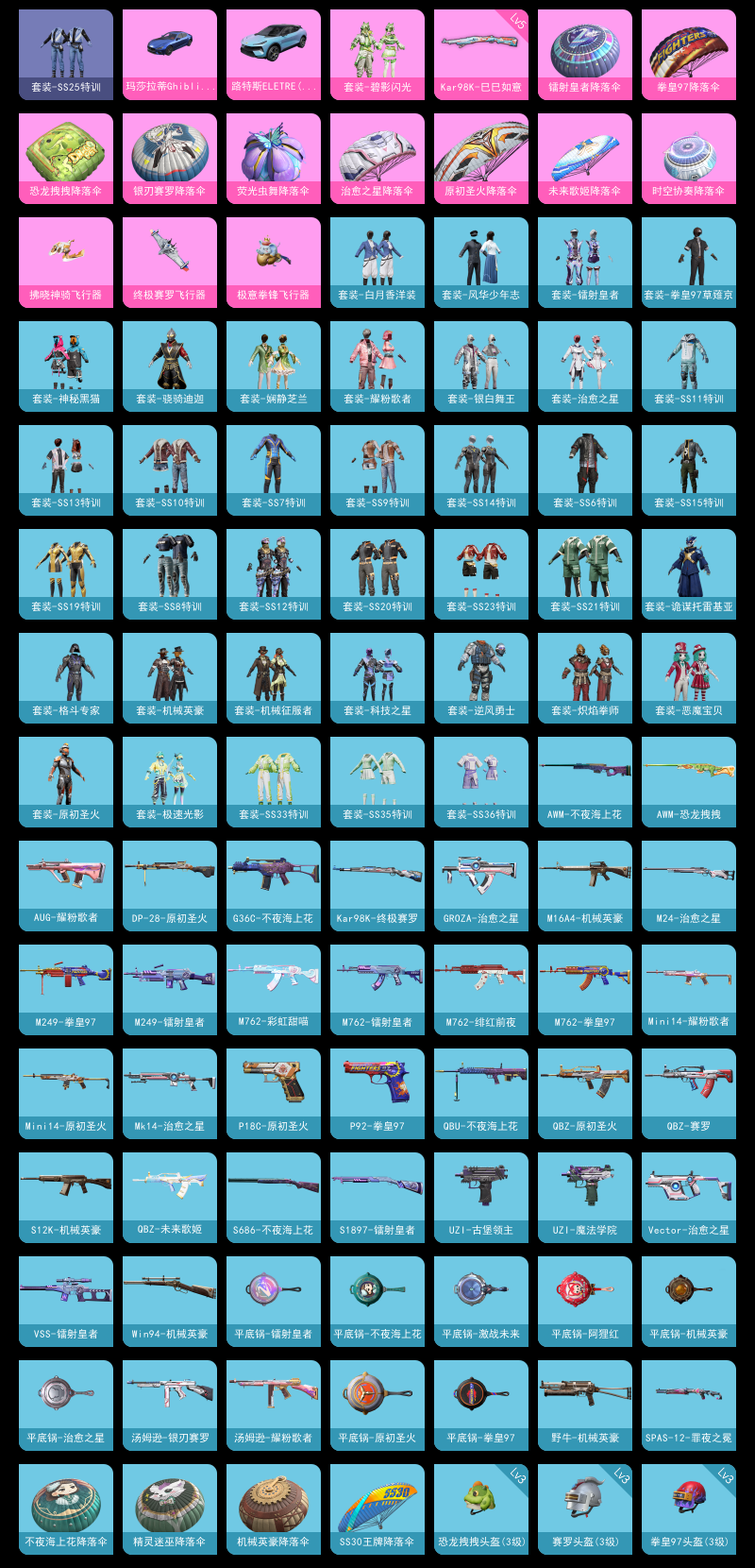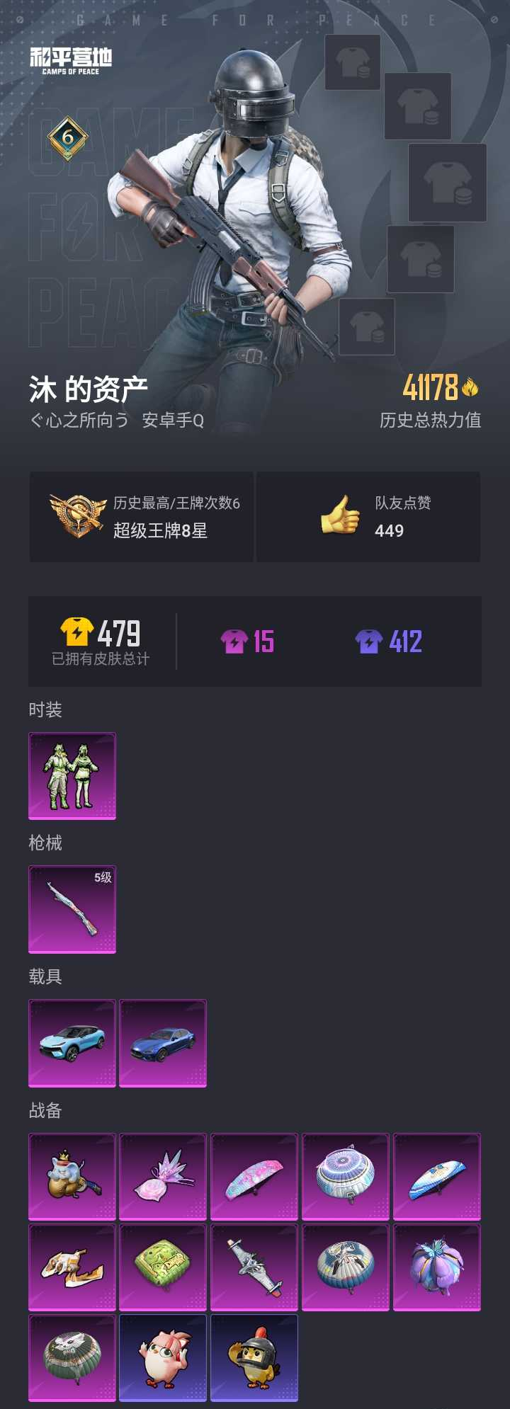【和平精英】【lyhp21744】1粉装,1特效呛,2载具,历史最高段位:超级王牌8星 王牌印记6次 热力值:41178,117套装,131呛械,126装备,77战备;套装:套装-碧影闪光,套装-特训学院,套装-猎鹰,套装-青年教官,套装-橘黑制服,套装-红色运动,套装-黄色运动,套装-蓝色运动,套装-黄色伏地魔,套装-白色伏地魔,套装-黑色伏地魔,套装-竞技名士,套装-深蓝色名流,套装-酒红色名流,套装-湖蓝色名流,套装-黄色名流,套装-猛禽,套装-长空猛禽,套装-竞技勇士朋克,套装-时尚圣诞,套装-冷焰舞者,套装-灼焰舞者,套装-刚毅裁决者,套装-特战装甲,套装-战地菁英,套装-战地督导,套装-甜蜜告白,套装-春日漫步,套装-燃烧卡路里,套装-5.56爱好者,套装-完美偶像,套装-人气偶像,套装-幻影武者,套装-海滨突袭者,套装-街头潮人,套装-蓝彩潮人,套装-酷萌兔限定,套装-千禧之恋,套装-决胜时刻,套装-魅力单车,套装-绮丽涂鸦,套装-坚韧舞者,套装-竞技达人朋克,套装-夜莺强袭者,套装-破晓战魂,套装-都市魅力,套装-ss2特训,套装-雪山精英,套装-传奇侦探,套装-幻世战舞者,套装-甜蜜熊情侣,套装-缤纷果语,套装-滨海厨神,套装-元素星魂,套装-极速红龙,套装-ss3特训,套装-恶魔宝贝,套装-破蛋小黄鸡,套装-疯狂小兔子,套装-机械英豪,套装-机械征服者,套装-ss5特训,套装-圣诞大吉,套装-金鼠迎春,套装-北国孤狼,套装-ss6特训,套装-拳皇97草薙京,套装-炽焰拳师,套装-格斗专家,套装-跃动心情,套装-ss7特训,套装-ss10特训,套装-ss8特训,套装-神秘黑猫,套装-萌黄之夏,套装-夏日音浪,套装-ss9特训,套装-风华少年志,套装-白月香洋装,套装-牛气满满,套装-ss11特训,套装-诡谋托雷基亚,套装-骁骑迪迦,套装-原初圣火,套装-逆风勇士,套装-娴静芝兰,套装-战术大师,套装-ss12特训,套装-牛气冲天,套装-镭射皇者,套装-银白舞王,套装-耀粉歌者,套装-治愈之星,套装-科技之星,套装-飞行日记,套装-ss13特训,套装-ss14特训,套装-吉莉礼服,套装-ss15特训,套装-虎虎生威吉莉,套装-ss19特训,套装-炫蓝之夏,套装-ss20特训,套装-ss21特训,套装-绯格组合,套装-ss23特训,套装-ss25特训,套装-香桃花海,套装-龙的传人,套装-ss30特训,套装-ss31特训,套装-ss33特训,套装-ss32特训,套装-极速光影,套装-炫彩糖果,套装-ss35特训,套装-ss36特训;呛皮:aug-耀粉歌者,aug-异域银装,aug-冰晶雪宝,aug-乌木金纹,groza-生命誓言,groza-治愈之星,groza-乌木金纹,m16a4-蓝色火焰,m16a4-生命誓言,m16a4-红色方程式,m16a4-夜灯,m16a4-机械英豪,m16a4-幻世战舞者,q-原初圣火,q-赛罗,q-彩虹符号,q-未来歌姬,q-乌木金纹,scar-l-生命誓言,scar-l-红色方程式,scar-l-炫彩节奏,scar-l-乌木金纹,m762-绯红前夜,m762-拳皇97,m762-牛气冲天,m762-镭射皇者,m762-彩虹甜喵,m762-乌木金纹,蜜獾-乌木金纹,akm-灼热熔岩,akm-玉龙,akm-破晓战魂,akm-霓虹街区,akm-夜灯,akm-龙的传人,akm-乌木金纹,mk47-乌木金纹,m416-夜灯,m416-蓝色火焰,m416-红色方程式,m416-乌木金纹,ace32-冰晶雪宝,g36c-不夜海上花,win94-机械英豪,win94-乌木金纹,莫辛纳甘-乌木金纹,5级kar98k-巳巳如意,kar98k-红色方程式,kar98k-王子的夏天,kar98k-终极赛罗,kar98k-彩虹符号,kar98k-炫彩节奏,kar98k-顶峰精英,awm-不夜海上花,awm-恐龙拽拽,awm-乌木金纹,m24-治愈之星,m24-乌木金纹,m200-乌木金纹,sks-玉龙,sks-夜灯,sks-乌木金纹,qbu-不夜海上花,mini14-金鼠迎春,mini14-原初圣火,mini14-炫彩节奏,mini14-耀粉歌者,mini14-香桃花海,mini14-乌木金纹,mk12-乌木金纹,mk20-h-乌木金纹,vss-镭射皇者,vss-乌木金纹,mk14-治愈之星,mk14-乌木金纹,uzi-红色方程式,uzi-古堡领主,uzi-魔法学院,uzi-啾咪啾咪,uzi-炫彩糖果,汤姆逊-银刃赛罗,汤姆逊-耀粉歌者,汤姆逊-炫彩节奏,汤姆逊-天降萌叽,汤姆逊-乌木金纹,野牛-机械英豪,野牛-乌木金纹,vect-生命誓言,vect-彩虹符号,vect-治愈之星,vect-乌木金纹,ump45-蓝色火焰,ump45-生命誓言,ump45-乌木金纹,p90-乌木金纹,s12k-破晓战魂,s12k-夜灯,s12k-机械英豪,s12k-玩趣呆呆,s12k-乌木金纹,s686-红色方程式,s686-生命誓言,s686-不夜海上花,spas-12-罪夜之冕,spas-12-乌木金纹,s1897-镭射皇者,mg3-幻世战舞者,mg-36-薄荷星砂,dp-28-原初圣火,dp-28-甜蜜旋律,dp-28-乌木金纹,m249-破晓战魂,m249-拳皇97,m249-镭射皇者,m249-乌木金纹,p92-拳皇97,p18c-原初圣火,平底锅-拳皇97,平底锅-缤纷糖果,平底锅-不夜海上花,平底锅-机械英豪,平底锅-原初圣火,平底锅-镭射皇者,平底锅-阿狸红,平底锅-治愈之星,平底锅-激战未来,平底锅-光之冒险,撬棍-传奇侦探,铝热弹-炫彩糖果,十子怒-异域银装,破片手留单-星途旅人;载具:玛莎拉蒂ghibli蓝,路特斯eletre冰川蓝;降落伞:终极赛罗飞行器,拂晓神骑飞行器,炫彩糖果飞行器,极意拳锋飞行器,顶峰精英尾迹; 详情看图1粉装1特效呛2载具 玛莎拉蒂 路特斯