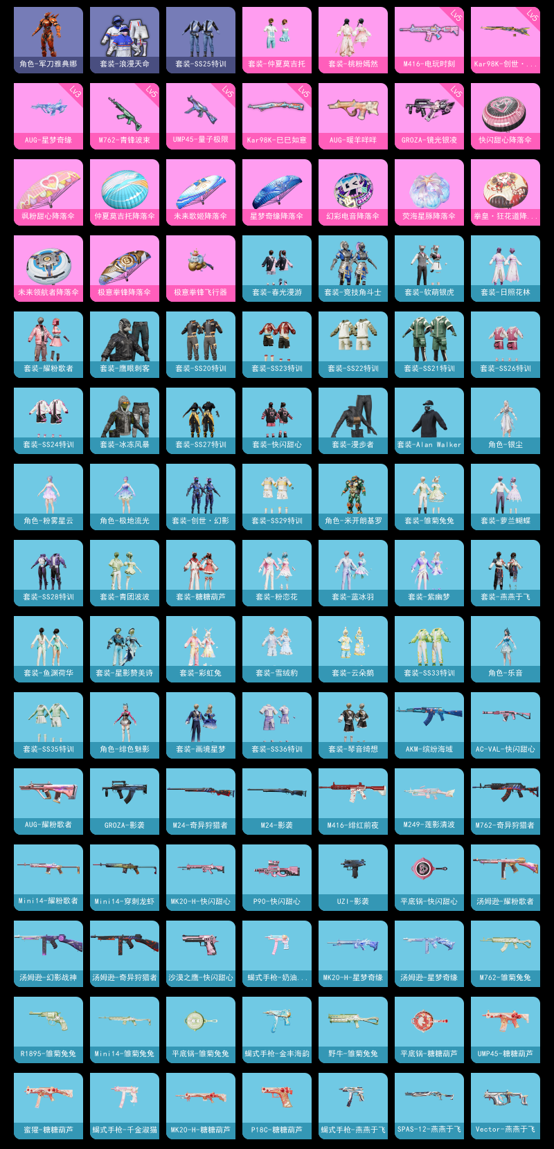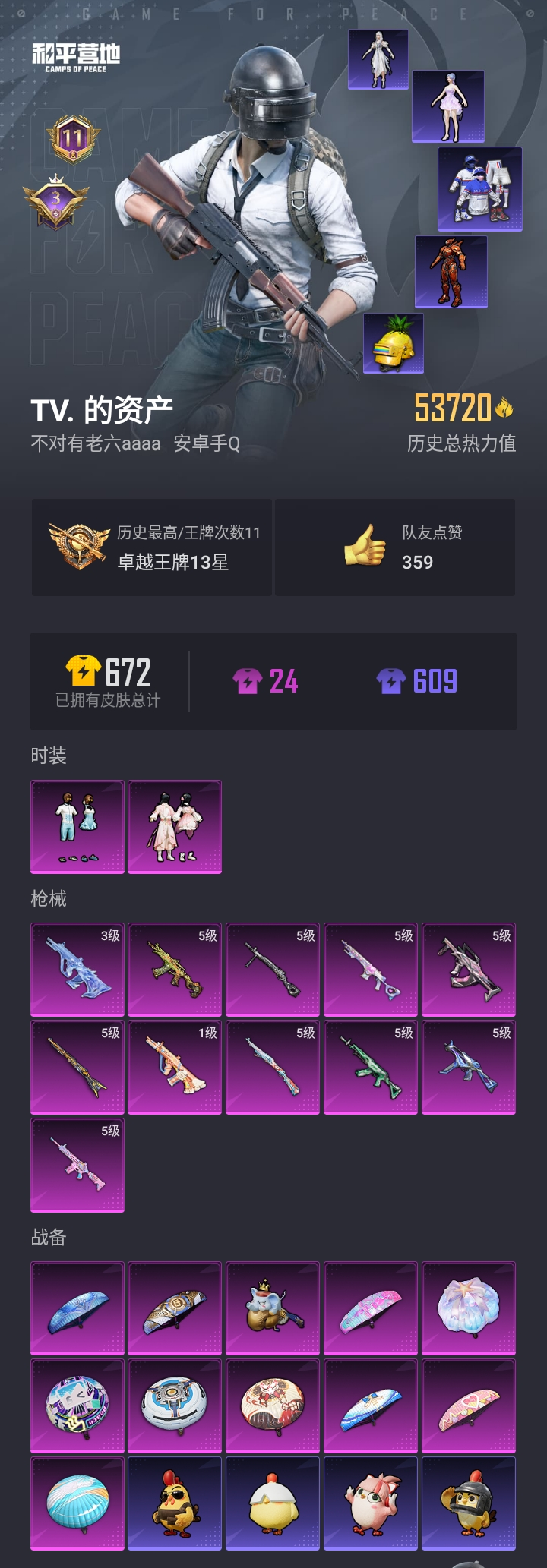 【和平精英】【lyhp21754】2粉装,11特效呛,0载具,历史最高段位:卓越王牌13星 王牌印记11次 热力值:53720,148套装,192呛械,200装备,111战备;套装:套装-仲夏莫吉托,套装-桃粉嫣然,套装-特训学院,套装-猎鹰,套装-青年教官,套装-橘黑制服,套装-红色运动,套装-黄色运动,套装-蓝色运动,套装-黄色伏地魔,套装-白色伏地魔,套装-黑色伏地魔,套装-竞技名士,套装-深蓝色名流,套装-酒红色名流,套装-湖蓝色名流,套装-黄色名流,套装-猛禽,套装-长空猛禽,套装-漫步者,套装-海岛探路者,套装-旭日情侣,套装-冷焰舞者,套装-灼焰舞者,套装-浪漫天命,套装-特战装甲,套装-浪漫假日,套装-战地督导,套装-春日漫步,套装-燃烧卡路里,套装-沙漠毒蛇,套装-鹰眼刺客,套装-冰冻风暴,套装-完美偶像,套装-人气偶像,套装-幻影武者,套装-街头潮人,套装-蓝彩潮人,套装-魅力单车,套装-绮丽涂鸦,套装-坚韧舞者,套装-竞技达人朋克,套装-野性战心,套装-超能勇士,套装-破晓战魂,套装-森林游猎者,套装-都市魅力,套装-荣耀,套装-热血青春,套装-幻世战舞者,套装-清新柠檬,套装-夏日倾情,套装-青涩时光,套装-缤纷果语,套装-滨海厨神,套装-alan walker,套装-龙魂突击队,套装-风暴特警,套装-冰川特警,套装-元素星魂,套装-极速红龙,套装-麻辣教官,套装-破蛋小黄鸡,套装-鹤鸣,套装-霓虹街区,套装-软萌银虎,套装-白熊同盟,套装-萌黄之夏,套装-牛气满满,套装-白糯汤圆,套装-战术大师,套装-牛气冲天,套装-耀粉歌者,套装-竞技角斗士,套装-吉莉礼服,角色-军刀雅典娜,套装-ss20特训,套装-ss21特训,套装-玉兔迎春,套装-ss22特训,套装-光之冒险,套装-绯格组合,套装-ss23特训,套装-王牌教练,套装-柠萌假日,套装-青玉碎影,套装-ss24特训,套装-日照花林,套装-龟仙人,套装-涂山之恋,套装-ss25特训,套装-冰河战士,套装-ss26特训,套装-快闪甜心,套装-春光漫游,套装-漫游都市,套装-空岛之星,套装-云魄琉璃,套装-ss27特训,套装-恋语绒绒,套装-老实芭蕉,套装-ss28特训,角色-米开朗基罗,角色-极地流光,角色-粉雾星云,角色-银尘,套装-街头风暴,套装-海盐绵绵冰,套装-蝶变,套装-创世·幻影,套装-ss29特训,套装-雏菊兔兔,套装-萝兰蝴蝶,角色-绯色魅影,套装-异域银装,套装-星途旅人,套装-ss30特训,套装-青团波波,套装-糖糖葫芦,套装-ss31特训,套装-鱼渊荷华,套装-燕燕于飞,套装-智谋强哥,套装-紫幽梦,套装-粉恋花,套装-ss33特训,套装-云朵鹅,套装-巳巳如意,套装-ss32特训,套装-彩虹兔,套装-青翼流星,套装-蓝冰羽,套装-顶瓜瓜,套装-雪绒豹,套装-狂鲨锋刃,套装-大橘大利,套装-星影赞美诗,角色-乐音,套装-元气之梦,套装-ss34特训,套装-薄荷星砂,套装-ss35特训,套装-琴音绮想,套装-画境星梦,套装-ss37特训,套装-ss36特训,套装-雪国风尚,套装-萌鸡速递;呛皮:m16a4-蓝色火焰,m16a4-幻世战舞者,m16a4-冰河战士,ac-val-乌木金纹,ac-val-天降萌叽,ac-val-快闪甜心,ace32-画境星梦,ace32-冰晶雪宝,scar-l-红色方程式,scar-l-夜灯,scar-l-炫彩节奏,scar-l-彩虹符号,scar-l-玉兔迎春,scar-l-星途旅人,scar-l-海盐豹豹,akm-缤纷海域,akm-破晓战魂,akm-涂鸦街区,akm-彩虹符号,akm-龙的传人,akm-荧星灵猫,akm-霓彩脉冲,akm-绿洲时空,5级m762-青锋波束,m762-奇异狩猎者,m762-彩虹符号,m762-天降萌叽,m762-雏菊兔兔,m762-云朵鹅,蜜獾-天降萌叽,蜜獾-糖糖葫芦,蜜獾-绿洲时空,蜜獾-乌木金纹,famas-霓彩脉冲,famas-乌木金纹,5级m416-电玩时刻,m416-蓝色火焰,m416-绯红前夜,m416-红色方程式,m416-糯团青竹,3级aug-星梦奇缘,1级aug-暖羊咩咩,aug-耀粉歌者,aug-天降萌叽,aug-异域银装,aug-紫晶流影,5级groza-镜光银凌,groza-影袭,groza-彩虹符号,groza-海盐豹豹,mk47-乌木金纹,m24-影袭,m24-奇异狩猎者,m24-天降萌叽,m24-乌木金纹,awm-黄金龙骨,awm-天降萌叽,5级kar98k-创世·救赎,5级kar98k-巳巳如意,kar98k-红色方程式,kar98k-彩虹符号,m200-乌木金纹,svd-云朵鹅,svd-霓彩脉冲,amr-鸡智如我,amr-乌木金纹,win94-乌木金纹,莫辛纳甘-乌木金纹,5级mk14-甜梦熊击,mk14-乌木金纹,mk14-冰河战士,mk14-紫幽梦,mk14-薄荷星砂,mk20-h-快闪甜心,mk20-h-星梦奇缘,mk20-h-星途旅人,mk20-h-糖糖葫芦,mk20-h-狂鲨锋刃,mk20-h-乌木金纹,sks-炫彩节奏,sks-糯团青竹,mini14-穿刺龙虾,mini14-炫彩节奏,mini14-耀粉歌者,mini14-涂山之恋,mini14-香桃花海,mini14-雏菊兔兔,mini14-鸡智如我,m417-玩趣呆呆,m1加兰德-画境星梦,vss-彩虹符号,vss-香桃花海,mk12-乌木金纹,slr-霓彩脉冲,slr-乌木金纹,uzi-红色方程式,uzi-影袭,uzi-天降萌叽,uzi-冰河战士,uzi-啾咪啾咪,uzi-绿洲时空,5级ump45-量子极限,ump45-夜灯,ump45-蓝色火焰,ump45-涂山之恋,ump45-海盐豹豹,ump45-糖糖葫芦,ump45-绿洲时空,vect-生命誓言,vect-燕燕于飞,p90-快闪甜心,p90-玩趣呆呆,p90-巳巳如意,p90-紫矿核心,p90-乌木金纹,汤姆逊-奇异狩猎者,汤姆逊-幻影战神,汤姆逊-耀粉歌者,汤姆逊-炫彩节奏,汤姆逊-天降萌叽,汤姆逊-星梦奇缘,野牛-雏菊兔兔,野牛-燕燕于飞,mp5k-画境星梦,mp5k-乌木金纹,5级aks-74u-森灵之息,aks-74u-粉粉喵呜,aks-74u-鸡智如我,aks-74u-乌木金纹,s12k-破晓战魂,s12k-夜灯,s12k-幻世战舞者,s12k-玩趣呆呆,s12k-霓彩脉冲,s686-红色方程式,s686-彩虹符号,s686-雪月幻音,s686-巳巳如意,s1897-炫彩节奏,s1897-紫幽梦,s1897-糯团青竹,spas-12-燕燕于飞,spas-12-狂鲨锋刃,spas-12-云朵鹅,spas-12-乌木金纹,aa12-g-画境星梦,dbs-彩虹符号,dbs-荧海星豚,dbs-辉云木星,dbs-乌木金纹,mg-36-薄荷星砂,m249-破晓战魂,m249-彩虹符号,m249-糯