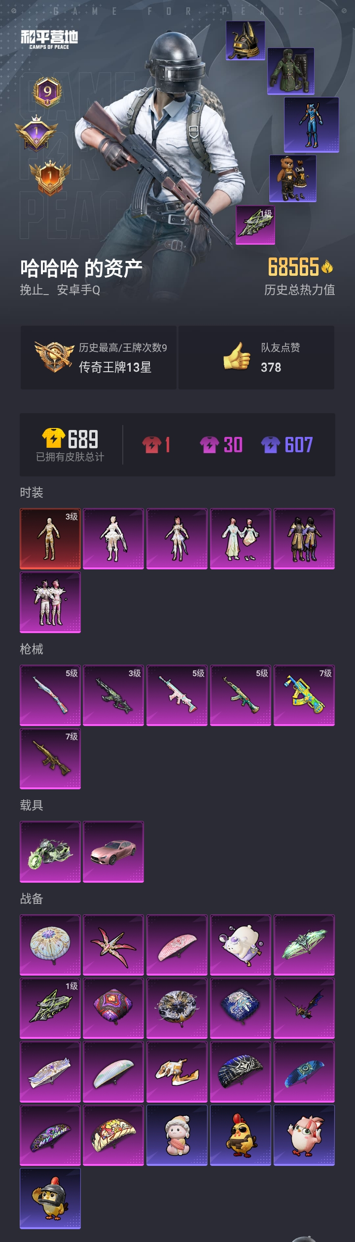 【和平精英】【lyhp21749】5粉装,6特效呛,2载具,历史最高段位:传奇王牌13星 王牌印记9次 热力值:68565,142套装,196呛械,221装备,105战备;套装:沙丘之主-图卡盟,套装-海渊国主,套装-朗月武圣,套装-莲影清波,角色-圣堂之誓,角色-千金淑猫,套装-黄色伏地魔,套装-白色伏地魔,套装-黑色伏地魔,套装-登山爱好者,套装-冰川格斗者,套装-竞技名士,套装-深蓝色名流,套装-酒红色名流,套装-湖蓝色名流,套装-长空猛禽,套装-竞技勇士朋克,套装-蓝色守护者,套装-海岛探路者,套装-冷焰舞者,套装-特战装甲,套装-街舞达人,套装-甜蜜告白,套装-滨海假日,套装-完美偶像,套装-人气偶像,套装-神秘领域,套装-雪山征服者,套装-竞技达人朋克,套装-沙漠兵团,套装-丛林猎人,套装-火舞潮人,套装-雪山精英,套装-幻世战舞者,套装-冰凉西瓜,套装-装甲骑士,套装-甜蜜熊情侣,套装-缤纷果语,套装-龙魂突击队,套装-风暴特警,套装-麻辣教官,套装-梦魇先生,套装-疯狂小兔子,套装-深蓝冒险家,套装-迷域探索者,套装-ss5特训,套装-圣诞大吉,套装-熔岩使者,套装-凛冬战士,套装-爱崽白熊,套装-浪漫波比,套装-北国孤狼,套装-ss6特训,套装-跃动心情,套装-ss7特训,套装-黑色刀锋,套装-核芯基因,套装-精神漫游,套装-霓虹街区,套装-五号元素,套装-ss10特训,套装-ss8特训,套装-神秘黑猫,套装-夏日音浪,套装-ss9特训,套装-风华少年志,套装-牛气满满,套装-ss11特训,套装-萌趣颜团子,套装-特种颜团子,套装-战术大师,套装-ss12特训,套装-牛气冲天,套装-ss18特训,套装-耀粉歌者,套装-飞行日记,套装-ss13特训,套装-竞技角斗士,套装-ss14特训,套装-电音精灵,套装-ss15特训,套装-ss16特训,套装-暗夜魅影,套装-ss17特训,套装-瑞龙福将,套装-团圆交子,套装-福星高照,套装-虎虎生威吉莉,套装-冰暴轰轰,套装-空投萌叽,套装-ss19特训,套装-炫蓝之夏,套装-ss20特训,套装-ss21特训,套装-娇憨猪猪,套装-玉兔迎春,套装-轻风白浪,套装-绯格组合,套装-ss24特训,套装-日照花林,套装-龟仙人,套装-惊鸿侠骨,套装-锦衣飞扬,套装-香桃花海,套装-ss26特训,套装-快闪甜心,套装-春光漫游,套装-空岛之星,套装-无暇誓言,套装-明鸳圣池,套装-贝斯之夜,套装-焰鹰斗篷,套装-幽夜迷踪,套装-幻羽潜行,套装-ss27特训,套装-恋语绒绒,套装-老实芭蕉,角色-蝶吟花词,角色-情公主,角色-mark.06,套装-街头风暴,套装-海盐绵绵冰,套装-蝶变,套装-小熊娃娃,套装-雏菊兔兔,角色-狂花道·雅典娜,套装-萝兰蝴蝶,套装-星途旅人,角色-许七安,角色-临安公主,套装-青团波波,套装-棉花软糖,套装-糖糖葫芦,套装-ss31特训,套装-鱼渊荷华,套装-石蕴玉辉,套装-燕燕于飞,套装-ss33特训,套装-巳巳如意,套装-ss32特训,套装-蓝冰羽,角色-乐音;呛皮:蜜獾-精灵梦叶罗丽,蜜獾-糖糖葫芦,蜜獾-乌木金纹,aug-耀粉歌者,aug-乌木金纹,ac-val-乌木金纹,ac-val-彩虹甜喵,ac-val-天降萌叽,ac-val-闲梦青缨,ac-val-快闪甜心,5级akm-绿萝繁花,3级akm-幽焰骑士,akm-灼热熔岩,akm-破晓战魂,akm-霓虹街区,akm-彩虹符号,akm-萌趣颜团子,akm-虎虎生威,akm-龙的传人,akm-乌木金纹,mk47-乌木金纹,g36c-不夜海上花,g36c-乌木金纹,7级groza-香水柠檬,groza-黑色刀锋,groza-海盐豹豹,groza-乌木金纹,7级m416-五爪金龙,m416-夜灯,m416-蓝色火焰,m416-乌木金纹,5级scar-l-锦绣绵绵,scar-l-炫彩节奏,scar-l-星途旅人,scar-l-海盐豹豹,scar-l-冷漠罗丽,scar-l-乌木金纹,m762-诡娃娃,m762-深海曼妙,m762-牛气冲天,m762-瑞龙福将,m762-雏菊兔兔,m762-乌木金纹,q-乌木金纹,m16a4-蓝色火焰,m16a4-冰河战士,famas-墨龙九天,awm-不夜海上花,awm-圣堂之誓,awm-焰鹰斗篷,awm-乌木金纹,m200-惊鸿侠骨,m200-乌木金纹,5级kar98k-巳巳如意,kar98k-红色方程式,kar98k-狮舞迎春,kar98k-勇闯险境,kar98k-彩虹符号,kar98k-顶峰精英,kar98k-乌木金纹,m24-冰封烈焰,m24-乌木金纹,win94-瑞龙福将,amr-乌木金纹,vss-黑色刀锋,vss-香桃花海,vss-乌木金纹,mk14-乌木金纹,mk14-冰河战士,mk14-紫幽梦,mini14-炫彩节奏,mini14-香桃花海,mini14-雏菊兔兔,mini14-乌木金纹,mk20-h-莲影清波,mk20-h-快闪甜心,mk20-h-星途旅人,mk20-h-糖糖葫芦,mk20-h-乌木金纹,sks-夜灯,sks-勇闯险境,sks-未来歌姬,qbu-不夜海上花,m417-惊鸿侠骨,vect-生命誓言,vect-银河战甲,vect-黑色刀锋,vect-彩虹符号,vect-暗夜玫瑰,vect-焰鹰斗篷,vect-燕燕于飞,vect-乌木金纹,汤姆逊-奇异狩猎者,汤姆逊-幻影战神,汤姆逊-勇闯险境,汤姆逊-耀粉歌者,汤姆逊-炫彩节奏,汤姆逊-天降萌叽,汤姆逊-幽焰骑士,汤姆逊-智耀战神,汤姆逊-乌木金纹,p90-快闪甜心,p90-玩趣呆呆,p90-巳巳如意,p90-乌木金纹,uzi-生命誓言,uzi-古堡领主,uzi-炫彩节奏,uzi-烈焰拳霸,uzi-天降萌叽,uzi-冰河战士,uzi-啾咪啾咪,ump45-蓝色火焰,ump45-生命誓言,ump45-糖糖葫芦,野牛-夜灯,野牛-青蛇行歌,野牛-雏菊兔兔,野牛-燕燕于飞,野牛-乌木金纹,mp5k-乌木金纹,s12k-破晓战魂,s12k-瑞龙福将,s12k-幻世战舞者,s12k-玩趣呆呆,s12k-乌木金纹,s686-生命誓言,s686-冰封烈焰,s686-不夜海上花,s686-彩虹符号,s686-千金淑猫,s686-巳巳如意,spas-12-燕燕于飞,spas-12-乌木金纹,dbs-彩虹符号,dbs-圣堂之誓,dbs-焰鹰斗篷,dbs-幽焰骑士,dbs-乌木金纹,s1897-天启纪元,s1897-勇闯险境,s1897-炫彩节奏,s1897-精灵梦叶罗丽,s1897-紫幽梦,s1897-乌木金纹,pkm-啾咪啾咪,pkm-紫幽梦,m249-古堡领主,m249-彩虹符号,m249-糯团青竹,m249-乌木金纹,dp-28-原初圣火,dp-28-焰鹰斗篷,dp-28-乌木金纹,mg3-瑞龙福将,mg3-幻世战舞者,mg3-惊鸿侠骨,蝎式手