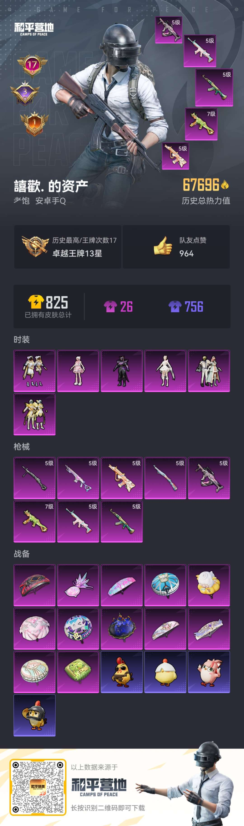 0载具-156套装-235呛皮-0载具-156套装-235呛皮-17王牌印记-6粉装-8特效呛-67696热力值-156套装-235呛皮-3卓越印记-1传奇印记【6粉装】套装-筑梦精灵角色-千金淑猫套装-极意拳锋套装-庄周梦蝶角色-星云暗核角色-羊梦糖心【8特效呛】groza-镜光银凌/5级mk14-甜梦熊击/5级k