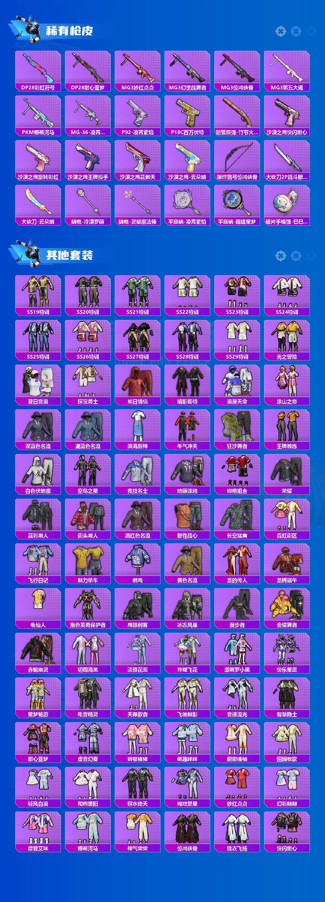 安卓 手q-9粉装-11特效呛-3载具-8粉色飞行器-78317热力值-12王牌印记-144套装-227呛皮 【热门品类】:粉装-音爆索尼克,粉装-缤纷油彩,套装-浪漫天命,套装-赤蝎幽灵,套装-龟仙人,套装-暗影哥特 【粉色套装】:粉装-蝶舞迷情,粉装-缤纷油彩,角色-洛天依,粉装-鸾凤武仙,粉装-音爆索尼克,角色-圣堂之誓,角色-光极星,粉装-幻彩电音,角色-冷漠罗丽 【粉色呛皮等级】:akm-绿萝繁花五级,scar-l-纯梦嫁纱七级,m416-风花雪月一级,m416-至情至圣八级,aug-星之彼岸七级,p90-冷漠罗丽七级,kar98k-巳巳如意五级,mk14-甜梦熊击五级,dp-28-豹影疾电五级,mg3-洛神天依七级,mg3-酷泡奶龙一级 【粉色载具】:合金龙骨(绿),黑曜夜骑,冰绡玉鳞 【粉色呛皮】:akm-绿萝繁花,scar-l-纯梦嫁纱,m416-风花雪月,m416-至情至圣,aug-星之彼岸,p90-冷漠罗丽,kar98k-巳巳如意,mk14-甜梦熊击,dp-28-豹影疾电,mg3-洛神天依,mg3-酷泡奶龙 【粉色飞行器】:春暖花开飞行器,千面幻镜飞行器,镜光幻境飞行翼,繁龙极客飞行器,终晖之翼飞行器,灵猫魔法师飞行器 【粉色降落伞】:春暖花开降落伞,星之彼岸降落伞,洛神天依降落伞,碧影闪光降落伞,恐龙拽拽降落伞,旋转彩虹降落伞,青空秋雨降落伞,音爆索尼克降落伞,圣堂之誓降落伞,墨龙九天降落伞,宇宙意志降落伞,动力核心降落伞,幻彩电音降落伞,冷漠罗丽降落伞,极意拳锋降落伞,炫彩糖果降落伞 【稀有套装】:套装-龟仙人,套装-巳巳如意,套装-雪国风尚,套装-炫彩糖果,套装-糖糖葫芦,套装-青团波波,套装-燕燕于飞,套装-鱼渊荷华,套装-紫幽梦,套装-蓝冰羽,套装-星影赞美诗,套装-霓虹热舞,套装-彩虹兔,套装-云朵鹅,套装-雪绒豹,角色-时希公主,角色-灵公主,角色-乐音,套装-朱霞炽焰,套装-凌霄紫焰,套装-擎苍青焰,角色-绯色魅影,套装-书海巡游,套装-画境星梦,套装-琴音绮想 【稀有呛皮】:aug-冰晶雪宝,akm-墨染幽兰,akm-星之彼岸,akm-春暖花开,akm-灼热熔岩,akm-破晓战魂,akm-灵猫魔法师,m16a4-甜心亚梦,scar-l-是爱神辣,scar-l-玉兔迎春,scar-l-黄金龙骨,scar-l-冷漠罗丽,m416-暗夜行者,m416-糯团青竹,groza-影袭,groza-懵萌河马,groza-春暖花开,groza-田园牧歌,aug-天降萌叽,aug-甜蜜菠萝,aug-耀粉歌者,q-洛神天依,q-飞驰魅影,m762-天降萌叽,m762-奇异狩猎者,m762-橘柚倾心,m762-云朵鹅,mk47-妙红点点,mk47-洛神天依,mk47-炫光之旅,mk47-粉色回忆,g36c-懵萌河马,ac-val-快闪甜心,ac-val-甜心亚梦,蜜獾-天降萌叽,蜜獾-娇憨猪猪,ace32-画境星梦,arx-凌霄紫焰,uzi-啾咪啾咪,uzi-天降萌叽,uzi-娇憨猪猪,uzi-影袭,uzi-红色方程式,ump45-春暖花开,ump45-涂山之恋,ump45-生命誓言,vect-焰鹰斗篷,vect-田园牧歌,vect-音爆索尼克,汤姆逊-奇异狩猎者,汤姆逊-炫彩节奏,汤姆逊-耀粉歌者,汤姆逊-灵猫魔法师,野牛-最终圣卫者,mp5k-画境星梦,js9-凌霄紫焰,p90-倾城蜜语,p90-快闪甜心,p90-飞驰魅影,p90-巳巳如意,kar98k-彩虹符号,kar98k-影袭,kar98k-洛神天依,kar98k-炫彩节奏,kar98k-飞驰魅影,kar98k-魅影蝠王,m24-影袭,m24-炫彩节奏,m24-奇异狩猎者,awm-焰鹰斗篷,sks-炫彩节奏,sks-糯团青竹,vss-星之彼岸,vss-田园牧歌,vss-绿野极光,mini14-春暖花开,mini14-涂山之恋,mk14-童趣迷兔,slr-娇憨猪猪,slr-彩虹符号,莫辛纳甘-懵萌河马,amr-妙红点点,m417-惊鸿侠骨,mk20-h-快闪甜心,m200-惊鸿侠骨,svd-云朵鹅,svd-冷漠罗丽,m1加兰德-画境星梦,s686-奇异狩猎者,s686-生命誓言,s686-巳巳如意,s1897-春暖花开,s1897-飞驰魅影,s12k-玩趣呆呆,s12k-音爆索尼克,s12k-娇憨猪猪,dbs-焰鹰斗篷,dbs-圣堂之誓,dbs-彩虹符号,dbs-甜心亚梦,dbs-幻彩电音,aa12-g-画境星梦,spas-12-田园牧歌,spas-12-云朵鹅,m249-妙红点点,m249-星之彼岸,m249-沙丘之主,m249-糯团青竹,dp-28-焰鹰斗篷,dp-28-彩虹符号,dp-28-甜心亚梦,mg3-妙红点点,mg3-幻世战舞者,mg3-惊鸿侠骨,mg3-第五大道,pkm-懵萌河马,mg-36-凌霄紫焰,p92-凌霄紫焰,p18c-百万伏特,短管霰弹-竹节火铳,沙墨之鹦-快闪甜心,沙墨之鹦-旋转彩虹,沙墨之鹦-王牌投手,沙墨之鹦-花傲天,沙墨之鹦-云朵鹅,爆炸猎弓-惊鸿侠骨,大砍刀-2p战斗服款,大砍刀-云朵鹅,撬棍-灵猫魔法师,撬棍-冷漠罗丽,平底锅-凌霄紫焰,平底锅-画境星梦,破片手留单-巳巳如意 【其他套装】:套装-ss19特训,套装-ss20特训,套装-ss21特训,套装-ss22特训,套装-ss23特训,套装-ss24特训,套装-ss25特训,套装-ss26特训,套装-ss27特训,套装-ss28特训,套装-ss29特训,套装-光之冒险,套装-夏日音浪,套装-探宝勇士,套装-旭日情侣,套装-暗影哥特,套装-浪漫天命,套装-涂山之恋,套装-深蓝色名流,套装-湖蓝色名流,套装-滨海厨神,套装-牛气冲天,套装-狂沙舞者,套装-王牌教练,套装-白色伏地魔,套装-空岛之星,套装-竞技名士,套装-绮丽涂鸦,套装-绯格组合,套装-荣耀,套装-蓝彩潮人,套装-街头潮人,套装-酒红色名流,套装-野性战心,套装-长空猛禽,套装-霓虹街区,套装-飞行日记,套装-魅力单车,套装-鹤鸣,套装-黄色名流,套装-龙的传人,套装-龙腾端午,套装-龟仙人,角色-英勇保护者,套装-鹰眼刺客,套装-冰冻风暴,套装-漫步者,套装-金耀舞者,套装-赤蝎幽灵,套装-初雨海棠,套装-淡雅花蕊,套装-玲珑飞花,套装-激萌罗小黑,套装-快乐星愿,套装-星梦畅游,套装-电音精灵,套装-天籁歌者,套装-飞驰魅影,套装-音速流光,套装-智慧隐士,套装-甜心亚梦,套装-虚音幻奏,套装-娇憨猪猪,套装-萌趣咩咩,套装-酸甜橘柚,套装-田园牧歌,套装-轻风白浪,套装-和煦暖阳,套装-照水倚天,套装-绚烂繁星,套装-妙红点点,