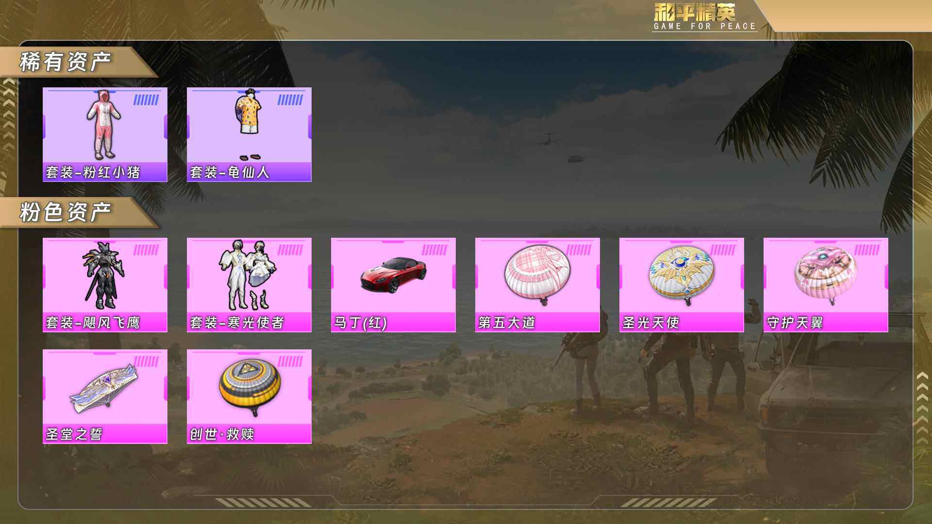 (2粉装-1载具)粉红小猪/龟仙人/飓风飞鹰/寒光使者/阿斯顿马丁红 没战神框 hp5634-0粉色飞行器-27950热力值-4王牌印记-71套装-92呛皮 【热门品类】:套装-龟仙人,套装-粉红小猪 【粉色套装】:粉装-飓风飞鹰,粉装-寒光使者 【粉色载具】:阿斯顿马丁dbs(红) 【粉色降落伞】:圣光天使降落伞,第五大道降落伞,圣堂之誓降落伞,创世·救赎降落伞,守护天翼降落伞 【稀有套装】:套装-龟仙人,套装-萝兰蝴蝶,角色-达芬奇 【稀有呛皮】:akm-夜灯,akm-破晓战魂,akm-萌趣颜团子,m16a4-幻世战舞者,m16a4-甜心亚梦,scar-l-炫彩节奏,scar-l-玉兔迎春,scar-l-碧影闪光,scar-l-红色方程式,m416-糯团青竹,m416-红色方程式,m416-蓝色火焰,groza-紫翼圣骑,aug-天降萌叽,aug-耀粉歌者,q-彩虹符号,q-飞驰魅影,m762-天降萌叽,m762-彩虹符号,m762-橘柚倾心,m762-第五大道,mk47-妙红点点,ac-val-天降萌叽,ac-val-甜心亚梦,蜜獾-天降萌叽,uzi-红色方程式,ump45-蓝色火焰,vect-香水柠檬,汤姆逊-耀粉歌者,p90-飞驰魅影,kar98k-彩虹符号,kar98k-炫彩节奏,kar98k-飞驰魅影,m24-奇异狩猎者,mini14-耀粉歌者,amr-妙红点点,s686-红色方程式,s1897-暗夜鎏金,s1897-飞驰魅影,s12k-破晓战魂,s12k-幻世战舞者,dbs-圣光天使,dbs-彩虹符号,dbs-甜心亚梦,m249-妙红点点,m249-破晓战魂,m249-诡夜天鹅,dp-28-彩虹符号,dp-28-橘柚倾心,dp-28-甜心亚梦,dp-28-紫翼圣骑,mg3-妙红点点,mg3-幻世战舞者,mg3-第五大道 【其他套装】:套装-ss13特训,套装-ss14特训,套装-ss15特训,套装-ss16特训,套装-ss18特训,套装-ss19特训,套装-ss20特训,套装-ss21特训,套装-ss22特训,套装-ss23特训,套装-ss24特训,套装-ss25特训,套装-ss28特训,套装-ss29特训,套装-军械专家,套装-冷焰舞者,套装-幻世战舞者,套装-幻影武者,套装-湖蓝色名流,套装-灼焰舞者,套装-炫蓝之夏,套装-特种颜团子,套装-特训学院,套装-猛禽,套装-白熊同盟,套装-破蛋小黄鸡,套装-福星高照,套装-空投萌叽,套装-竞技名士,套装-竞技达人朋克,套装-粉红小猪,套装-绮丽涂鸦,套装-绯格组合,套装-缤纷果语,套装-耀眼新星,套装-蓝彩潮人,套装-蓝色守护者,套装-都市漫游者,套装-酒红色名流,套装-长空猛禽,套装-青玉碎影,套装-魅力单车,套装-鹤鸣,套装-麻辣教官,套装-黄色伏地魔,套装-黄色名流,套装-黑色伏地魔,套装-龟仙人,套装-纯白誓言,角色-迪迦奥特曼,套装-飞驰魅影,套装-音速流光,套装-水晶王族,套装-甜心亚梦,套装-虚音幻奏,套装-妙红点点,套装-幻彩翩翩,套装-香榭午后,套装-纯真浪花,套装-热情海星,套装-创世·幻影 【稀有头盔】:百万伏特头盔2级,深海小丑鱼头盔2级 【稀有背包】:梦幻火箭背包1级,深海小丑鱼背包2级,甜蜜誓约背包3级,甜蜜誓约背包1级 【营地id】:903417739