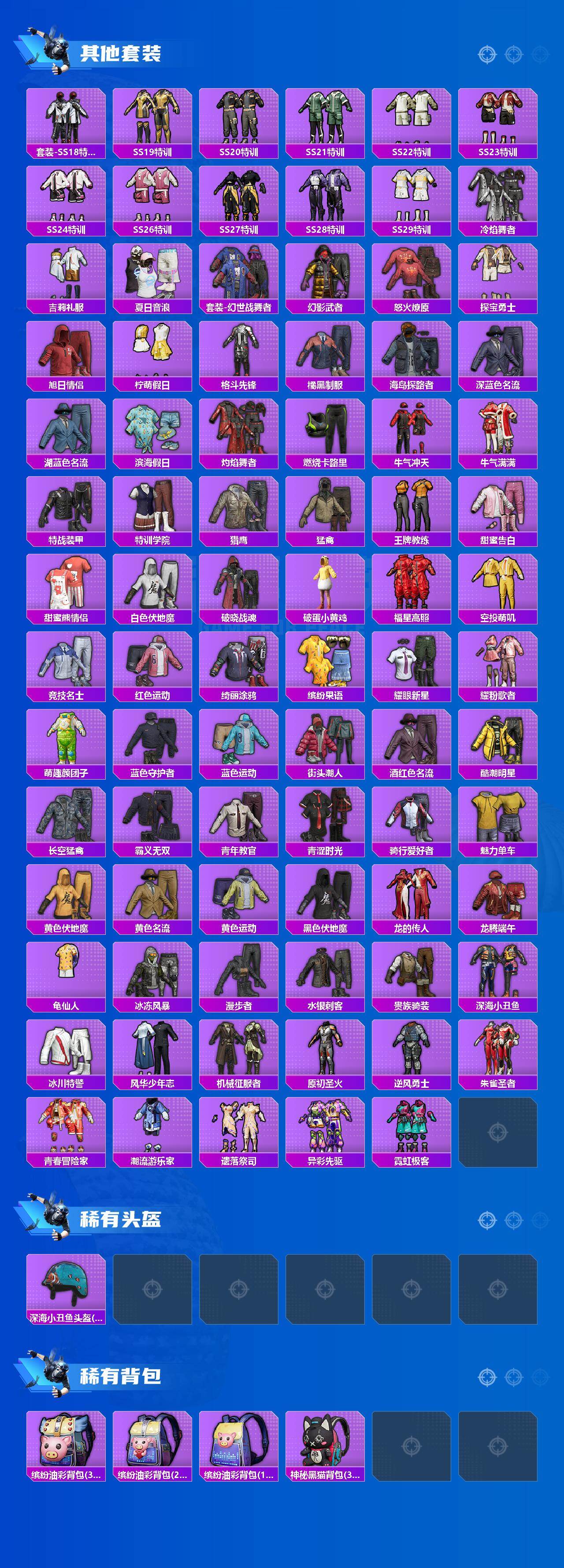 [16566099]苹果 【小号 深海小丑鱼/龟仙人/akm-炫紫旋律七级】手q-0粉装-3特效呛-0载具-0粉色飞行器-37872热力值-2王牌印记-110套装-123呛皮 【热门品类】:套装-深海小丑鱼,套装-龟仙人 【粉色呛皮等级】:akm-炫紫旋律七级,kar98k-巳巳如意五级,dp-28-豹影疾电五级 【粉色呛皮】:akm-炫紫旋律,kar98k-巳巳如意,dp-28-豹影疾电 【粉色降落伞】:古堡领主降落伞,繁花小夜曲降落伞,王牌四分卫降落伞,星之彼岸降落伞,异瞳寒姬降落伞 【稀有套装】:套装-龟仙人,套装-雪国风尚,套装-晶辉守护,角色-灵公主,套装-书海巡游,套装-画境星梦,套装-琴音绮想 【稀有呛皮】:akm-夜灯,akm-彩虹符号,akm-虎虎生威,akm-龙的传人,m16a4-幻世战舞者,m16a4-红色方程式,scar-l-暗夜玫瑰,scar-l-玉兔迎春,scar-l-繁花小夜曲,m416-仓鼠灰灰,m416-糯团青竹,m416-绯红前夜,m416-蓝色火焰,groza-异彩先驱,groza-影袭,aug-幻影战神,aug-青春冒险家,q-原初圣火,q-彩虹符号,m762-彩虹符号,m762-牛气冲天,m762-绯红前夜,mk47-青春冒险家,g36c-星穹咏叹调,ac-val-天降萌叽,蜜獾-天降萌叽,ace32-画境星梦,uzi-天降萌叽,uzi-影袭,uzi-炫彩节奏,ump45-夜灯,ump45-生命誓言,ump45-蓝色火焰,vect-生命誓言,汤姆逊-异彩先驱,野牛-机械英豪,野牛-青春冒险家,mp5k-异彩先驱,mp5k-梨园星光,mp5k-画境星梦,p90-巳巳如意,kar98k-彩虹符号,kar98k-灵符少年,kar98k-炫彩节奏,m24-冰封烈焰,mini14-原初圣火,mini14-异彩先驱,mini14-耀粉歌者,mini14-金玉无双,win94-机械英豪,slr-四圣焕新,slr-彩虹符号,qbu-不夜海上花,qbu-锦绣火鲤,qbu-青春冒险家,m1加兰德-画境星梦,s686-生命誓言,s686-红色方程式,s1897-炫彩节奏,s12k-玩趣呆呆,s12k-幻世战舞者,s12k-机械英豪,dbs-创世·救赎,aa12-g-画境星梦,m249-破晓战魂,m249-糯团青竹,dp-28-原初圣火,