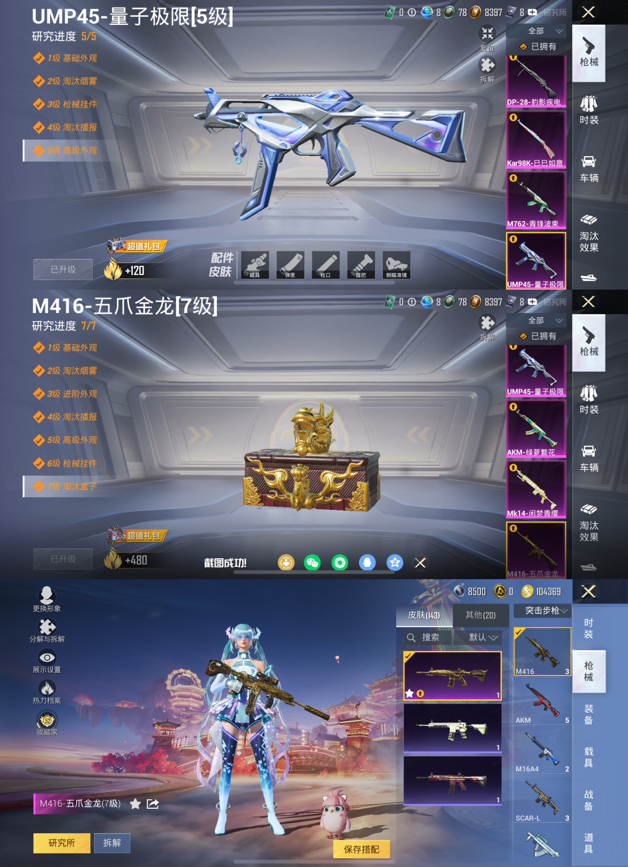0载具-80套装-143呛皮-【2粉装7特效呛】苹果q区-40446热力值-10印记-80套装-143呛皮 【2粉装】 角色-守护天翼 幻彩电音【7特效呛】m416-五爪金龙7级 akm-绿萝繁花5级 mk14-闲梦青缨7级m762-青锋波束5级 ump45-量子极限5级 dp-28-豹影疾电5级 kar98k-巳巳如意5级【4热门】 mark.06 小丑鱼 m416-糯团青竹