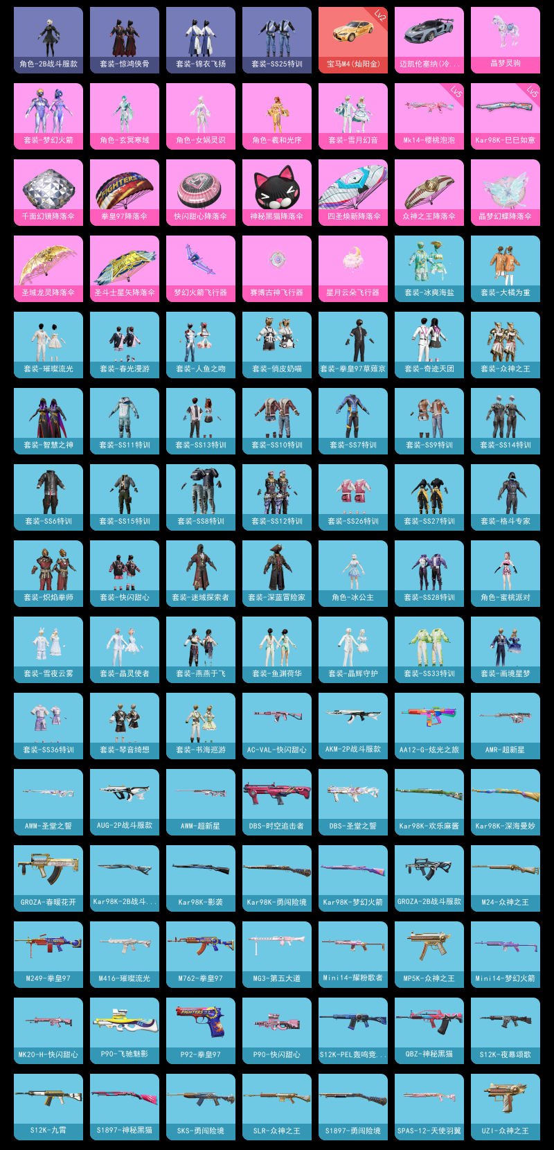【和平精英】【lyhp21814】5粉装,3特效呛,3载具,历史最高段位:传奇王牌15星 王牌印记9次 热力值:45913,102套装,151呛械,162装备,76战备;套装:套装-梦幻火箭,角色-女娲灵识,角色-羲和光序,角色-玄冥寒域,套装-雪月幻音,套装-橘黑制服,套装-骑行爱好者,套装-黄色名流,套装-长空猛禽,套装-竞技勇士朋克,套装-六六大吉,套装-战地菁英,套装-青春校园,套装-灰色格斗者,套装-甜蜜告白,套装-完美偶像,套装-人气偶像,套装-幻影武者,套装-酷萌兔限定,套装-怒火燎原,套装-魅力单车,套装-绮丽涂鸦,套装-耀眼新星,套装-坚韧舞者,套装-热血青春,套装-丛林猎人,套装-雪山精英,套装-酷潮明星,套装-传奇侦探,套装-青涩时光,套装-缤纷果语,套装-格斗先锋,套装-破蛋小黄鸡,套装-疯狂小兔子,套装-深蓝冒险家,套装-迷域探索者,套装-ss5特训,套装-北国孤狼,套装-ss6特训,套装-拳皇97草薙京,套装-炽焰拳师,套装-格斗专家,套装-奇迹天团,套装-ss7特训,套装-霓虹街区,套装-ss10特训,套装-ss8特训,套装-众神之王,套装-智慧之神,套装-大橘为重,套装-人鱼之吻,套装-夏日音浪,套装-ss9特训,套装-牛气满满,套装-ss11特训,套装-战术大师,套装-ss12特训,套装-牛气冲天,套装-ss13特训,套装-冰爽海盐,套装-ss14特训,套装-吉莉礼服,套装-ss15特训,套装-空投萌叽,套装-俏皮奶喵,套装-绯格组合,套装-王牌教练,套装-龟仙人,套装-ss25特训,套装-惊鸿侠骨,套装-锦衣飞扬,角色-2b战斗服款,套装-龙的传人,套装-ss26特训,套装-快闪甜心,套装-春光漫游,套装-空岛之星,套装-ss27特训,套装-恋语绒绒,套装-老实芭蕉,套装-ss28特训,角色-冰公主,套装-璀璨流光,套装-宝石天鹅,套装-海盐绵绵冰,套装-雪夜云雾,角色-蜜桃派对,套装-纯白跃动,套装-ss31特训,套装-鱼渊荷华,套装-燕燕于飞,套装-晶灵使者,套装-晶辉守护,套装-ss33特训,套装-ss32特训,套装-大橘大利,套装-琴音绮想,套装-画境星梦,套装-书海巡游,套装-ss37特训,套装-ss36特训,套装-红釉青花;呛皮:scar-l-红色方程式,scar-l-炫彩节奏,scar-l-海盐豹豹,scar-l-乌木金纹,akm-破晓战魂,akm-霓虹街区,akm-2p战斗服款,akm-龙的传人,akm-星月云朵,akm-乌木金纹,famas-乌木金纹,m762-拳皇97,m762-牛气冲天,m762-乌木金纹,q-神秘黑猫,q-乌木金纹,m416-夜灯,m416-红色方程式,m416-璀璨流光,m416-乌木金纹,groza-春暖花开,groza-2b战斗服款,groza-晶梦幻蝶,groza-福马献瑞,groza-乌木金纹,aug-甜蜜菠萝,aug-2p战斗服款,aug-异域银装,aug-乌木金纹,蜜獾-千面幻镜,蜜獾-天降萌叽,蜜獾-乌木金纹,ac-val-快闪甜心,m16a4-乌木金纹,ace32-画境星梦,5级kar98k-巳巳如意,kar98k-影袭,kar98k-梦幻火箭,kar98k-勇闯险境,kar98k-深海曼妙,kar98k-彩虹符号,kar98k-欢乐麻酱,kar98k-2b战斗服款,amr-超新星,amr-雨过天青,amr-乌木金纹,m24-众神之王,m24-炫彩节奏,m200-惊鸿侠骨,m200-乌木金纹,awm-超新星,awm-圣堂之誓,win94-晶梦幻蝶,m417-惊鸿侠骨,sks-夜灯,sks-勇闯险境,sks-乌木金纹,5级mk14-樱桃泡泡,slr-众神之王,slr-乌木金纹,mk20-h-快闪甜心,mk20-h-狂鲨锋刃,mk12-乌木金纹,mini14-金鼠迎春,mini14-梦幻火箭,mini14-耀粉歌者,mini14-乌木金纹,m1加兰德-画境星梦,vss-星月云朵,p90-飞驰魅影,p90-快闪甜心,p90-玩趣呆呆,p90-乌木金纹,汤姆逊-勇闯险境,汤姆逊-银刃赛罗,汤姆逊-炫彩节奏,汤姆逊-天降萌叽,汤姆逊-樱桃泡泡,汤姆逊-乌木金纹,uzi-影袭,uzi-众神之王,uzi-逆行者qq,uzi-天降萌叽,uzi-啾咪啾咪,uzi-幻影飞狐,uzi-乌木金纹,vect-生命誓言,vect-彩虹符号,vect-燕燕于飞,vect-乌木金纹,mp5k-众神之王,mp5k-画境星梦,mp5k-乌木金纹,5级aks-74u-森灵之息,ump45-生命誓言,ump45-海盐豹豹,ump45-乌木金纹,野牛-燕燕于飞,s12k-九霄,s12k-pel轰鸣竞梦者,s12k-玩趣呆呆,s12k-夜幕颂歌,s12k-乌木金纹,dbs-时空追击者,dbs-圣堂之誓,dbs-乌木金纹,s1897-勇闯险境,s1897-神秘黑猫,s1897-炫彩节奏,s1897-糯团青竹,s686-乌木金纹,aa12-g-炫光之旅,aa12-g-画境星梦,aa12-g-雨过天青,spas-12-天使羽翼,spas-12-燕燕于飞,mg3-幻世战舞者,mg3-第五大道,mg3-惊鸿侠骨,mg3-桃粉嫣然,mg3-霓彩脉冲,m249-破晓战魂,m249-拳皇97,m249-彩虹符号,m249-糯团青竹,m249-乌木金纹,pkm-啾咪啾咪,pkm-雨过天青,dp-28-彩虹符号,短管霰弹2b战斗服款,沙墨之鹦-快闪甜心,沙墨之鹦-雨过天青,p92-拳皇97,蝎式手呛-燕燕于飞,大砍刀-2p战斗服款,大砍刀-盛世惊鸿,平底锅-拳皇97,平底锅-勇闯险境,平底锅-众神之王,平底锅-惊鸿侠骨,平底锅-超新星,平底锅-快闪甜心,平底锅-空岛之星,平底锅-画境星梦,撬棍-传奇侦探,十子怒-燕燕于飞,十子怒-异域银装,破片手留单-呆爆全场,破片手留单-海盐豹豹,爆炸猎弓-惊鸿侠骨,燃烧瓶-福马献瑞;载具:迈凯伦塞纳冷萃蓝,2级宝马m4灿阳金,晶梦灵驹;降落伞:梦幻火箭飞行器,赛博古神飞行器,星月云朵飞行器,粉色滑翔尾迹,空岛之星尾迹,异域银装飞行器,狂鲨锋刃飞行器,破刃行动尾迹,马上有福飞行器; 详情看图5粉3特效呛3载1升级车 梦幻火箭 女娲灵识 多呛型 2级宝马m4灿阳金 晶梦马 幻影随风