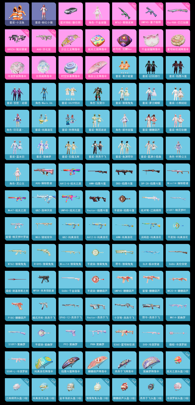 【和平精英】【lyhp21836】1粉装,5特效呛,1载具,历史最高段位:不朽星钻ⅰ 王牌印记-2次 热力值:27043,50套装,84呛械,117装备,44战备;套装:角色-千金淑猫,套装-竞技名士,套装-长空猛禽,套装-甜蜜菠萝,套装-龙魂突击队,套装-小丑鱼,套装-粉红小猪,套装-战术大师,套装-热情海星,套装-纯真浪花,套装-玉兔迎春,套装-龟仙人,套装-香桃花海,套装-果汁能量,套装-冰河战士,套装-焰鹰斗篷,套装-幻羽潜行,玩偶服-卖崽青蛙,角色-拉斐尔,角色-mark.06,套装-街头风暴,套装-海盐绵绵冰,套装-蝶变,套装-创世·追猎,套装-小熊娃娃,套装-ss29特训,套装-雏菊兔兔,角色-狂花道·雅典娜,套装-萝兰蝴蝶,角色-都市丽猫,套装-星途旅人,角色-临安公主,套装-ss30特训,套装-青团波波,套装-棉花软糖,套装-糖糖葫芦,套装-ss31特训,套装-鱼渊荷华,套装-石蕴玉辉,套装-燕燕于飞,套装-智谋强哥,套装-紫幽梦,套装-巳巳如意,套装-ss32特训,套装-蓝冰羽,套装-大橘大利,角色-时希公主,角色-灵公主,套装-星渊小夜曲,套装-ss37特训;呛皮:scar-l-炫彩节奏,scar-l-星途旅人,scar-l-海盐豹豹,scar-l-冷漠罗丽,5级m762-青锋波束,m762-天降萌叽,m762-雏菊兔兔,7级aug-许七安,aug-耀粉歌者,q-洛神天依,q-纯真浪花,蜜獾-天降萌叽,蜜獾-精灵梦叶罗丽,蜜獾-糖糖葫芦,蜜獾-乌木金纹,g36c-星穹咏叹调,5级groza-镜光银凌,mk47-炫光之旅,m16a4-冰河战士,5级kar98k-巳巳如意,awm-天降萌叽,awm-焰鹰斗篷,awm-纯真浪花,m200-乌木金纹,svd-冷漠罗丽,mini14-耀粉歌者,mini14-香桃花海,mini14-雏菊兔兔,vss-香桃花海,mk14-冰河战士,mk14-紫幽梦,slr-极冰使者,mk20-h-星途旅人,mk20-h-糖糖葫芦,mk20-h-乌木金纹,mk12-乌木金纹,野牛-雏菊兔兔,野牛-燕燕于飞,vect-焰鹰斗篷,vect-燕燕于飞,mp5k-未来领航者,mp5k-乌木金纹,uzi-天降萌叽,uzi-冰河战士,5级ump45-量子极限,ump45-炫光之旅,ump45-糖糖葫芦,p90-玩趣呆呆,p90-巳巳如意,汤姆逊-纯真浪花,spas-12-燕燕于飞,spas-12-乌木金纹,s1897-精灵梦叶罗丽,s1897-紫幽梦,s686-英伦信使,s686-千金淑猫,s686-巳巳如意,dbs-焰鹰斗篷,dbs-乌木金纹,aa12-g-炫光之旅,aa12-g-纯真浪花,dp-28-彩虹符号,dp-28-焰鹰斗篷,pkm-紫幽梦,mg3-幻世战舞者,mg3-镜域双华,蝎式手呛-燕燕于飞,p92-紫幽梦,p18c-糖糖葫芦,r1895-雏菊兔兔,短管霰弹-竹节火铳,大砍刀-黑金刀,平底锅-焰鹰斗篷,平底锅-纯真浪花,平底锅-雏菊兔兔,平底锅-糖糖葫芦,平底锅-许七安,平底锅-紫幽梦,撬棍-朗基努斯之呛,撬棍-冷漠罗丽,十子怒-燕燕于飞,破片手留单-星途旅人,破片手留单-巳巳如意,战术弩-江南烟雨;载具:星河领航磐石银;降落伞:顶峰精英尾迹,马上有福飞行器; 详情看图地铁满天赋 1粉5特效呛1载 千金淑猫 满级aug许七安 时空领航