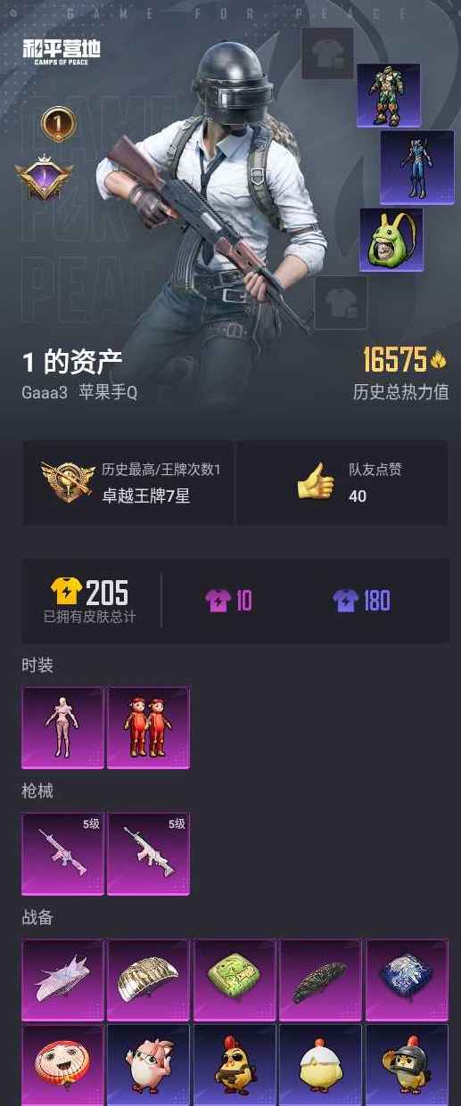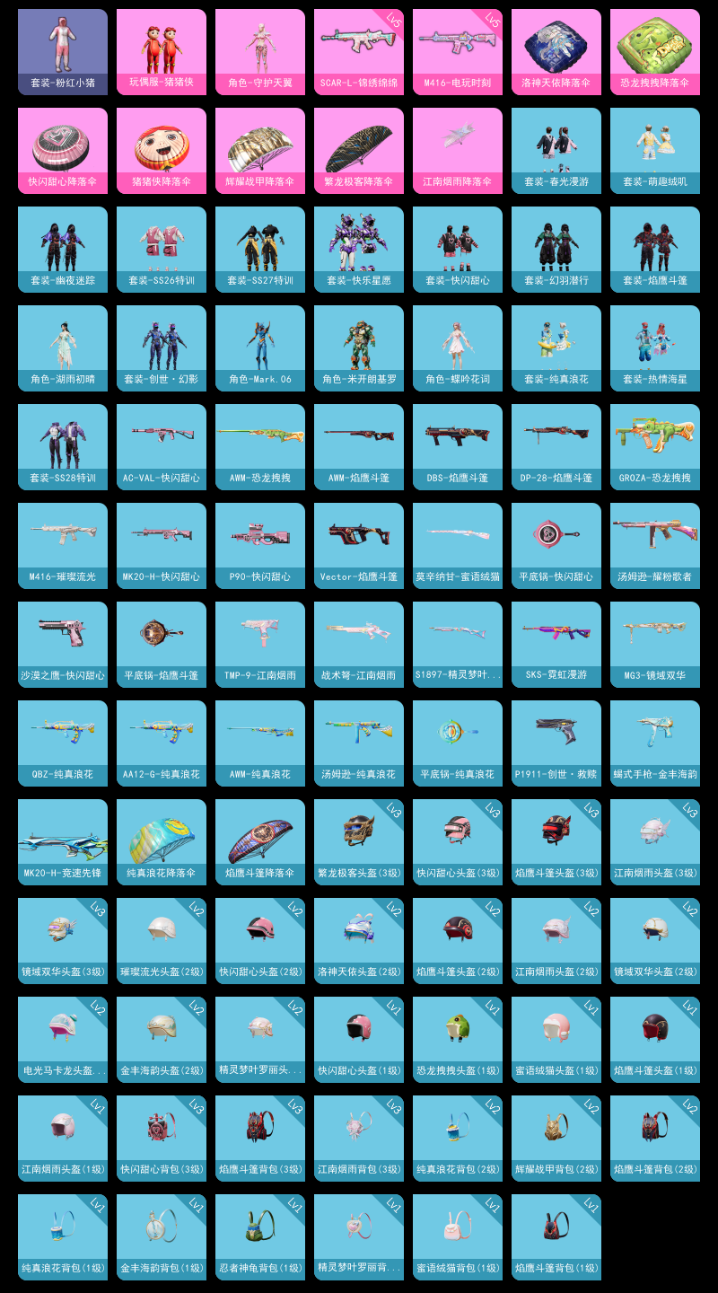 【和平精英】【lyhp21802】2粉装,2特效呛,0载具,历史最高段位:卓越王牌7星 王牌印记1次 热力值:16575,34套装,56呛械,70装备,34战备;套装:玩偶服-猪猪侠,角色-守护天翼,套装-黑色伏地魔,套装-竞技名士,套装-海岛探路者,套装-蓝彩潮人,套装-神秘领域,套装-缤纷果语,套装-龙魂突击队,套装-元素星魂,套装-粉红小猪,套装-热情海星,套装-纯真浪花,套装-快乐星愿,套装-龟仙人,套装-冰河战士,套装-ss26特训,套装-快闪甜心,套装-春光漫游,套装-空岛之星,套装-萌趣绒叽,套装-焰鹰斗篷,套装-幽夜迷踪,套装-幻羽潜行,套装-ss27特训,套装-老实芭蕉,套装-ss28特训,角色-蝶吟花词,角色-湖雨初晴,角色-米开朗基罗,角色-mark.06,套装-海盐绵绵冰,套装-蝶变,套装-创世·幻影;呛皮:5级m416-电玩时刻,m416-蓝色火焰,m416-璀璨流光,q-彩虹符号,q-纯真浪花,groza-恐龙拽拽,groza-绯红回忆,groza-海盐豹豹,akm-破晓战魂,5级scar-l-锦绣绵绵,scar-l-红色方程式,scar-l-海盐豹豹,m16a4-冰河战士,ac-val-天降萌叽,ac-val-快闪甜心,蜜獾-天降萌叽,aug-天降萌叽,kar98k-彩虹符号,amr-乌木金纹,awm-恐龙拽拽,awm-焰鹰斗篷,awm-纯真浪花,莫辛纳甘-蜜语绒猫,mk14-冰河战士,mk20-h-快闪甜心,mk20-h-竞速先锋,mk20-h-乌木金纹,sks-霓虹漫游,uzi-天降萌叽,uzi-冰河战士,p90-快闪甜心,p90-玩趣呆呆,vect-生命誓言,vect-焰鹰斗篷,mp5k-乌木金纹,汤姆逊-耀粉歌者,汤姆逊-纯真浪花,dbs-焰鹰斗篷,dbs-乌木金纹,s1897-精灵梦叶罗丽,aa12-g-纯真浪花,dp-28-彩虹符号,dp-28-焰鹰斗篷,m249-无面战甲,m249-冰晶雪宝,mg3-幻世战舞者,mg3-镜域双华,tmp-9-江南烟雨,p1911-创世·救赎,沙墨之鹦-快闪甜心,蝎式手呛-金丰海韵,平底锅-快闪甜心,平底锅-焰鹰斗篷,平底锅-纯真浪花,战术弩-江南烟雨,破片手留单-呆爆全场;降落伞:空岛之星尾迹; 详情看图地铁满天赋 2粉2特效呛 守护天翼 猪猪侠 满级m4电玩 满级scar-l锦绣 猫包