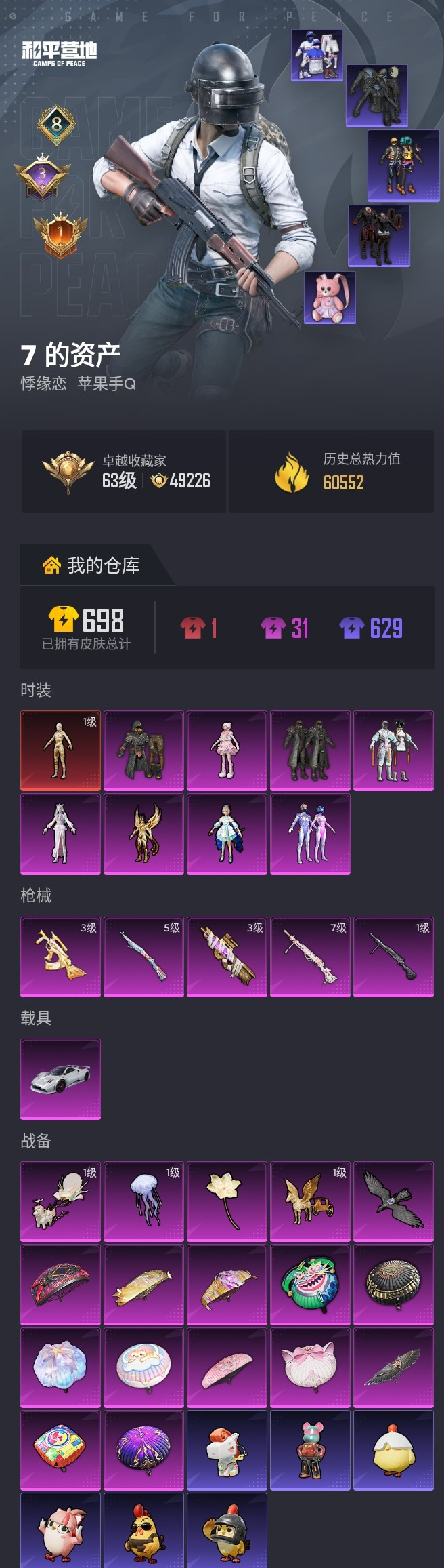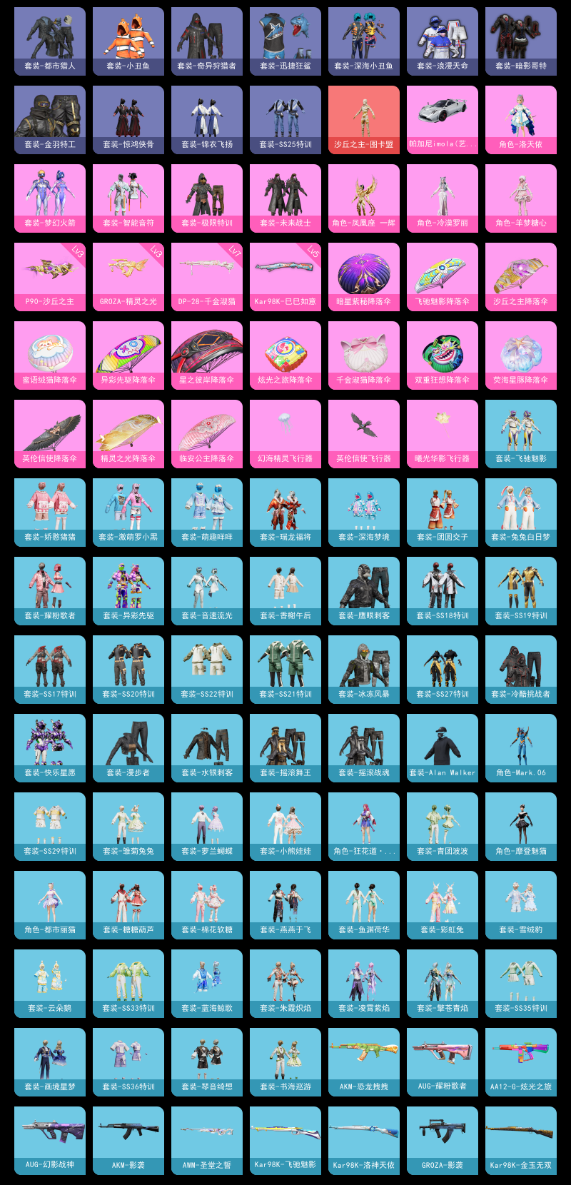 【和平精英】【lyhp21803】8粉装,5特效呛,1载具,历史最高段位:传奇王牌8星 王牌印记8次 热力值:60552,166套装,186呛械,208装备,115战备;套装:沙丘之主-图卡盟,套装-极限特训,套装-未来战士,套装-梦幻火箭,套装-智能音符,角色-洛天依,角色-凤凰座 一辉,角色-冷漠罗丽,角色-羊梦糖心,套装-特训学院,套装-猎鹰,套装-青年教官,套装-橘黑制服,套装-红色运动,套装-黄色运动,套装-蓝色运动,套装-黄色伏地魔,套装-白色伏地魔,套装-黑色伏地魔,套装-登山爱好者,套装-竞技名士,套装-深蓝色名流,套装-酒红色名流,套装-湖蓝色名流,套装-黄色名流,套装-猛禽,套装-长空猛禽,套装-漫步者,套装-海岛探路者,套装-旭日情侣,套装-冷焰舞者,套装-灼焰舞者,套装-都市猎人,套装-水银刺客,套装-浪漫天命,套装-战地菁英,套装-缤纷假日,套装-战地督导,套装-滨海假日,套装-鹰眼刺客,套装-冰冻风暴,套装-冷酷挑战者,套装-完美偶像,套装-人气偶像,套装-幻影武者,套装-摇滚战魂,套装-摇滚舞王,套装-街头潮人,套装-蓝彩潮人,套装-魅力单车,套装-绮丽涂鸦,套装-狂战萌兔,套装-竞技达人朋克,套装-金羽特工,套装-狂沙舞者,套装-破晓战魂,套装-森林游猎者,套装-都市魅力,套装-热血青春,套装-极地朋克,套装-幻世战舞者,套装-甜蜜菠萝,套装-奇异狩猎者,套装-暗影哥特,套装-迅捷狂鲨,套装-深海小丑鱼,套装-夏日倾情,套装-甜蜜熊情侣,套装-青涩时光,套装-缤纷果语,套装-alan walker,套装-龙魂突击队,套装-冰川特警,套装-元素星魂,套装-极速红龙,套装-格斗先锋,套装-小丑鱼,套装-梦魇先生,套装-破蛋小黄鸡,套装-鹤鸣,套装-激萌罗小黑,套装-夏日音浪,套装-白糯汤圆,套装-战术大师,套装-牛气冲天,套装-ss18特训,套装-耀粉歌者,套装-吉莉礼服,套装-快乐星愿,套装-ss17特训,套装-瑞龙福将,套装-团圆交子,套装-冰川谧蓝,套装-福星高照,套装-虎虎生威吉莉,套装-异彩先驱,套装-霓虹极客,套装-空投萌叽,套装-ss19特训,套装-兔兔白日梦,套装-飞驰魅影,套装-音速流光,套装-炫蓝之夏,套装-ss20特训,套装-ss21特训,套装-萌趣咩咩,套装-娇憨猪猪,套装-玉兔迎春,套装-ss22特训,套装-绯格组合,套装-香榭午后,套装-王牌教练,套装-柠萌假日,套装-ss25特训,套装-惊鸿侠骨,套装-锦衣飞扬,套装-香桃花海,套装-深海梦境,套装-龙的传人,套装-冰河战士,套装-漫游都市,套装-云魄琉璃,套装-ss27特训,套装-老实芭蕉,角色-mark.06,套装-街头风暴,套装-蝶变,套装-小熊娃娃,套装-ss29特训,套装-雏菊兔兔,角色-狂花道·雅典娜,套装-萝兰蝴蝶,角色-摩登魅猫,角色-都市丽猫,套装-星途旅人,套装-ss30特训,套装-青团波波,套装-棉花软糖,套装-糖糖葫芦,套装-ss31特训,套装-鱼渊荷华,套装-燕燕于飞,套装-智谋强哥,套装-ss33特训,套装-云朵鹅,套装-巳巳如意,套装-ss32特训,套装-彩虹兔,套装-青翼流星,套装-顶瓜瓜,套装-雪绒豹,套装-大橘大利,套装-蓝海鲸歌,套装-元气之梦,套装-ss34特训,套装-擎苍青焰,套装-朱霞炽焰,套装-游乐,套装-凌霄紫焰,套装-薄荷星砂,套装-ss35特训,套装-琴音绮想,套装-画境星梦,套装-书海巡游,套装-ss36特训,套装-雪国风尚;呛皮:scar-l-红色方程式,scar-l-炫彩节奏,scar-l-玉兔迎春,scar-l-拳皇·狂花道,scar-l-星途旅人,scar-l-海盐豹豹,scar-l-小狗蛇点点,蜜獾-娇憨猪猪,蜜獾-糖糖葫芦,蜜獾-乌木金纹,akm-生命誓言,akm-影袭,akm-破晓战魂,akm-霓虹街区,akm-涂鸦街区,akm-彩虹符号,akm-虎虎生威,akm-恐龙拽拽,akm-龙的传人,akm-霓彩脉冲,arx-凌霄紫焰,3级groza-精灵之光,groza-影袭,groza-异彩先驱,groza-恐龙拽拽,aug-幻影战神,aug-耀粉歌者,g36c-乌木金纹,m416-蓝色火焰,m416-红色方程式,m416-糯团青竹,m416-极冰使者,mk47-乌木金纹,mk47-炫光之旅,m16a4-蓝色火焰,m16a4-幻世战舞者,m16a4-冰河战士,m16a4-千金淑猫,m762-瑞龙福将,m762-天降萌叽,m762-雏菊兔兔,m762-云朵鹅,famas-乌木金纹,ac-val-梦海之灵,q-彩虹符号,q-飞驰魅影,ace32-画境星梦,ace32-冰晶雪宝,win94-瑞龙福将,win94-拳皇·狂花道,win94-乌木金纹,5级kar98k-巳巳如意,kar98k-影袭,kar98k-金玉无双,kar98k-梦幻火箭,kar98k-炫彩节奏,kar98k-洛神天依,kar98k-飞驰魅影,kar98k-顶峰精英,kar98k-乌木金纹,awm-圣堂之誓,svd-冷漠罗丽,svd-云朵鹅,m200-惊鸿侠骨,m200-乌木金纹,m24-影袭,m24-乌木金纹,amr-喜羊羊与灰太狼,mini14-金玉无双,mini14-穿刺龙虾,mini14-春暖花开,mini14-梦幻火箭,mini14-炫彩节奏,mini14-耀粉歌者,mini14-异彩先驱,mini14-香桃花海,mini14-雏菊兔兔,mk14-乌木金纹,mk14-冰河战士,mk14-薄荷星砂,mk14-紫晶流影,vss-碧影闪光,vss-香桃花海,m1加兰德-画境星梦,mk20-h-星途旅人,mk20-h-糖糖葫芦,mk20-h-狂鲨锋刃,mk20-h-乌木金纹,slr-娇憨猪猪,m417-惊鸿侠骨,mk12-乌木金纹,sks-金玉无双,3级p90-沙丘之主,p90-飞驰魅影,p90-精灵之光,p90-巳巳如意,p90-宁雨蝶,p90-乌木金纹,野牛-沙丘之主,野牛-雏菊兔兔,野牛-燕燕于飞,野牛-乌木金纹,汤姆逊-幻影战神,汤姆逊-耀粉歌者,汤姆逊-异彩先驱,汤姆逊-天降萌叽,vect-生命誓言,vect-金玉无双,vect-暗夜玫瑰,vect-燕燕于飞,ump45-蓝色火焰,ump45-金玉无双,ump45-炫光之旅,ump45-糖糖葫芦,aks-74u-鸡智如我,aks-74u-乌木金纹,mp5k-异彩先驱,mp5k-画境星梦,mp5k-乌木金纹,uzi-影袭,uzi-金玉无双,uzi-炫彩节奏,uzi-娇憨猪猪,uzi-天降萌叽,uzi-冰河战士,uzi-炫彩糖果,js9-凌霄紫焰,s12k-幻影战神,s12k-瑞龙福将,s12k-娇憨猪猪,s12k-幻世战舞者,s12k-玩趣呆呆,s12k-霓彩脉冲,spas-12-燕燕于飞,s