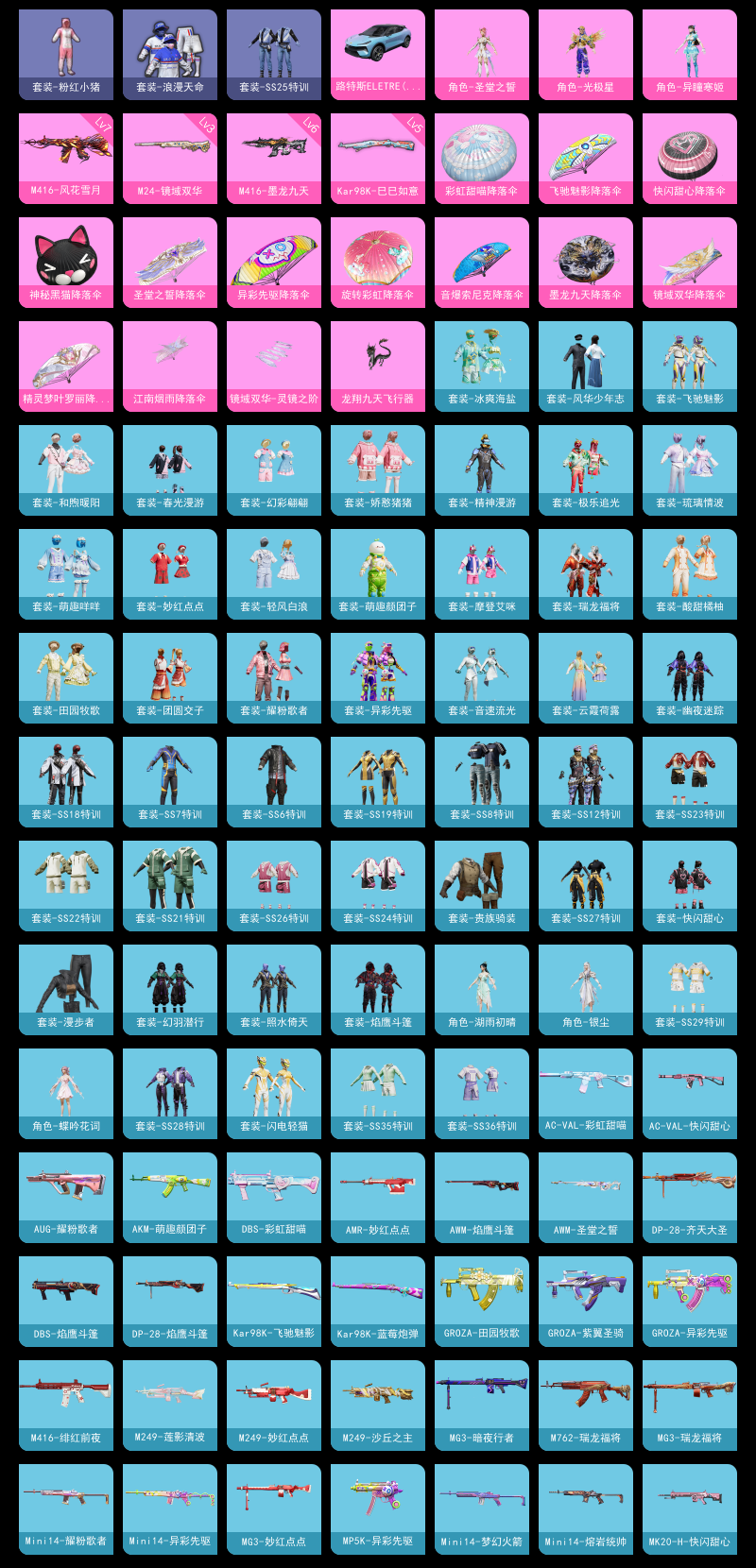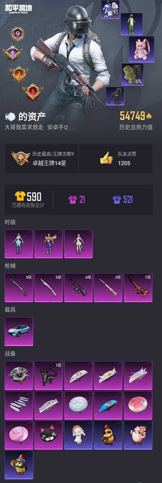 【和平精英】【lyhp21743】3粉装,5特效呛,1载具,历史最高段位:卓越王牌14星 王牌印记9次 热力值:54749,121套装,168呛械,191装备,85战备;套装:角色-圣堂之誓,角色-光极星,角色-异瞳寒姬,套装-特训学院,套装-黄色运动,套装-骑行爱好者,套装-竞技名士,套装-酒红色名流,套装-黄色名流,套装-猛禽,套装-长空猛禽,套装-漫步者,套装-竞技勇士朋克,套装-蓝色守护者,套装-海岛探路者,套装-旭日情侣,套装-冷焰舞者,套装-浪漫天命,套装-战地菁英,套装-贵族骑装,套装-甜蜜告白,套装-龙腾端午,套装-完美偶像,套装-幻影武者,套装-蓝彩潮人,套装-魅力单车,套装-耀眼新星,套装-狂沙舞者,套装-沙漠兵团,套装-ss2特训,套装-雪山精英,套装-缤纷果语,套装-龙魂突击队,套装-格斗先锋,套装-麻辣教官,套装-粉红小猪,套装-破蛋小黄鸡,套装-疯狂小兔子,套装-ss5特训,套装-凛冬战士,套装-好奇恐龙,套装-北国孤狼,套装-ss6特训,套装-跃动心情,套装-ss7特训,套装-精神漫游,套装-鹤鸣,套装-霓虹街区,套装-ss8特训,套装-萌黄之夏,套装-夏日音浪,套装-风华少年志,套装-牛气满满,套装-萌趣颜团子,套装-战术大师,套装-ss12特训,套装-ss18特训,套装-耀粉歌者,套装-飞行日记,套装-冰爽海盐,套装-瑞龙福将,套装-团圆交子,套装-极乐追光,套装-异彩先驱,套装-霓虹极客,套装-ss19特训,套装-飞驰魅影,套装-音速流光,套装-ss21特训,套装-萌趣咩咩,套装-娇憨猪猪,套装-酸甜橘柚,套装-玉兔迎春,套装-ss22特训,套装-和煦暖阳,套装-田园牧歌,套装-轻风白浪,套装-琉璃情波,套装-照水倚天,套装-光之冒险,套装-绯格组合,套装-ss23特训,套装-摩登艾咪,套装-妙红点点,套装-幻彩翩翩,套装-柠萌假日,套装-青玉碎影,套装-ss24特训,套装-龟仙人,套装-涂山之恋,套装-ss25特训,套装-云霞荷露,套装-龙的传人,套装-冰河战士,套装-ss26特训,套装-快闪甜心,套装-春光漫游,套装-空岛之星,套装-焰鹰斗篷,套装-幽夜迷踪,套装-幻羽潜行,套装-ss27特训,套装-恋语绒绒,套装-老实芭蕉,套装-ss28特训,角色-蝶吟花词,角色-湖雨初晴,角色-银尘,套装-海盐绵绵冰,套装-蝶变,套装-ss29特训,套装-闪电轻猫,套装-ss31特训,套装-智谋强哥,套装-巳巳如意,套装-ss32特训,套装-ss34特训,套装-ss35特训,套装-粉黛兰香,套装-ss37特训,套装-ss36特训;呛皮:aug-耀粉歌者,aug-天降萌叽,aug-乌木金纹,groza-异彩先驱,groza-紫翼圣骑,groza-田园牧歌,groza-海盐豹豹,groza-紫矿核心,蜜獾-娇憨猪猪,蜜獾-天降萌叽,蜜獾-精灵梦叶罗丽,蜜獾-乌木金纹,ac-val-乌木金纹,ac-val-彩虹甜喵,ac-val-天降萌叽,ac-val-快闪甜心,scar-l-红色方程式,scar-l-夜灯,scar-l-炫彩节奏,scar-l-银碳小老虎,scar-l-玉兔迎春,scar-l-海盐豹豹,famas-墨龙九天,famas-乌木金纹,mk47-乌木金纹,mk47-妙红点点,akm-破晓战魂,akm-霓虹街区,akm-夜灯,akm-彩虹符号,akm-萌趣颜团子,g36c-镜域双华,g36c-乌木金纹,m762-牛气冲天,m762-瑞龙福将,m762-天降萌叽,m762-乌木金纹,7级m416-风花雪月,6级m416-墨龙九天,m416-蓝色火焰,m416-绯红前夜,m416-红色方程式,m416-糯团青竹,q-飞驰魅影,m16a4-蓝色火焰,m16a4-红色方程式,m16a4-幻世战舞者,m16a4-冰河战士,3级m24-镜域双华,m24-乌木金纹,awm-天降萌叽,awm-圣堂之誓,awm-焰鹰斗篷,awm-绿洲时空,m200-乌木金纹,amr-妙红点点,amr-墨龙九天,amr-乌木金纹,5级kar98k-巳巳如意,kar98k-红色方程式,kar98k-王子的夏天,kar98k-蓝莓炮弹,kar98k-飞驰魅影,win94-瑞龙福将,win94-乌木金纹,莫辛纳甘-乌木金纹,mk14-冰河战士,mk14-紫晶流影,slr-娇憨猪猪,slr-墨龙九天,slr-乌木金纹,sks-心之恋语,sks-炫彩节奏,sks-糯团青竹,mk20-h-快闪甜心,mk20-h-狂鲨锋刃,mk20-h-乌木金纹,mini14-梦幻火箭,mini14-炫彩节奏,mini14-耀粉歌者,mini14-异彩先驱,mini14-熔岩统帅,mk12-乌木金纹,vss-田园牧歌,vss-乌木金纹,vect-生命誓言,vect-田园牧歌,vect-焰鹰斗篷,vect-乌木金纹,uzi-红色方程式,uzi-影袭,uzi-娇憨猪猪,uzi-天降萌叽,uzi-冰河战士,mp5k-异彩先驱,mp5k-乌木金纹,汤姆逊-耀粉歌者,汤姆逊-炫彩节奏,汤姆逊-异彩先驱,汤姆逊-天降萌叽,汤姆逊-乌木金纹,ump45-夜灯,ump45-蓝色火焰,ump45-涂山之恋,p90-飞驰魅影,p90-快闪甜心,p90-紫矿核心,p90-乌木金纹,野牛-乌木金纹,aks-74u-乌木金纹,s12k-破晓战魂,s12k-夜灯,s12k-瑞龙福将,s12k-娇憨猪猪,s12k-音爆索尼克,s12k-玩趣呆呆,s686-红色方程式,s686-生命誓言,s686-彩虹符号,s1897-百万伏特,s1897-飞驰魅影,s1897-精灵梦叶罗丽,s1897-乌木金纹,aa12-g-橘猫汽水,dbs-彩虹甜喵,dbs-彩虹符号,dbs-焰鹰斗篷,dbs-乌木金纹,spas-12-田园牧歌,spas-12-狂鲨锋刃,spas-12-乌木金纹,m249-破晓战魂,m249-糯团青竹,m249-妙红点点,m249-莲影清波,m249-沙丘之主,m249-乌木金纹,5级dp-28-豹影疾电,dp-28-彩虹符号,dp-28-齐天大圣,dp-28-焰鹰斗篷,mg3-瑞龙福将,mg3-乌木金纹,mg3-暗夜行者,mg3-妙红点点,mg3-镜域双华,p18c-镜光幻境,沙墨之鹦-快闪甜心,tmp-9-江南烟雨,平底锅-绯红前夜,平底锅-阿狸红,平底锅-瑞龙福将,平底锅-异彩先驱,平底锅-飞驰魅影,平底锅-娇憨猪猪,平底锅-田园牧歌,平底锅-光之冒险,平底锅-妙红点点,平底锅-快闪甜心,平底锅-空岛之星,平底锅-焰鹰斗篷,平底锅-精灵梦叶罗丽,撬棍-传奇侦探,破片手留单-萌趣颜团子,破片手留单-呆爆全场,破片手留单-拽到爆炸,燃烧瓶-福马献瑞,战术弩-江南烟雨;载具:路特斯eletre冰川蓝;降落伞:镜域双华-灵镜之阶,龙翔九天飞行器,鸡智如我飞行器,马上有福飞行器; 详情看图地铁满天赋 3粉5特效呛1
