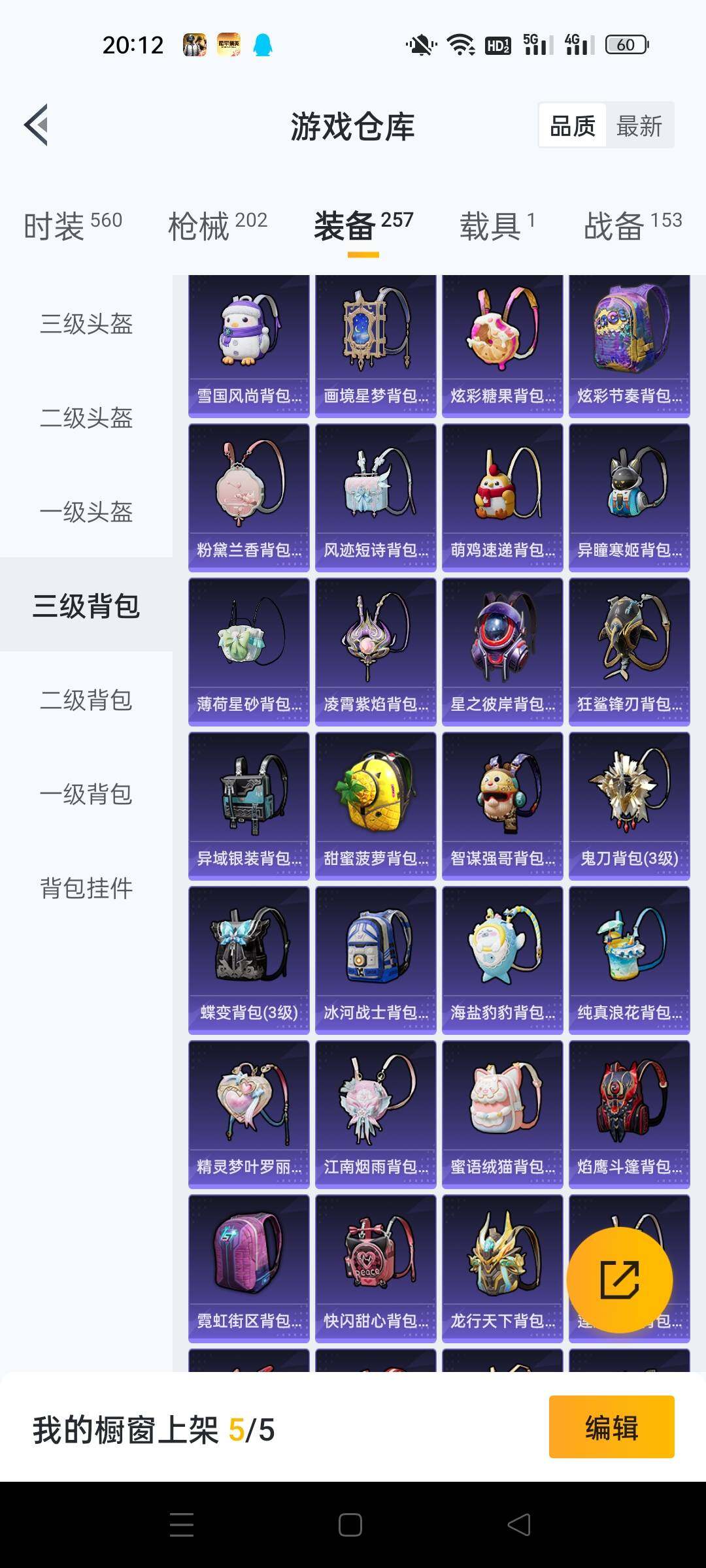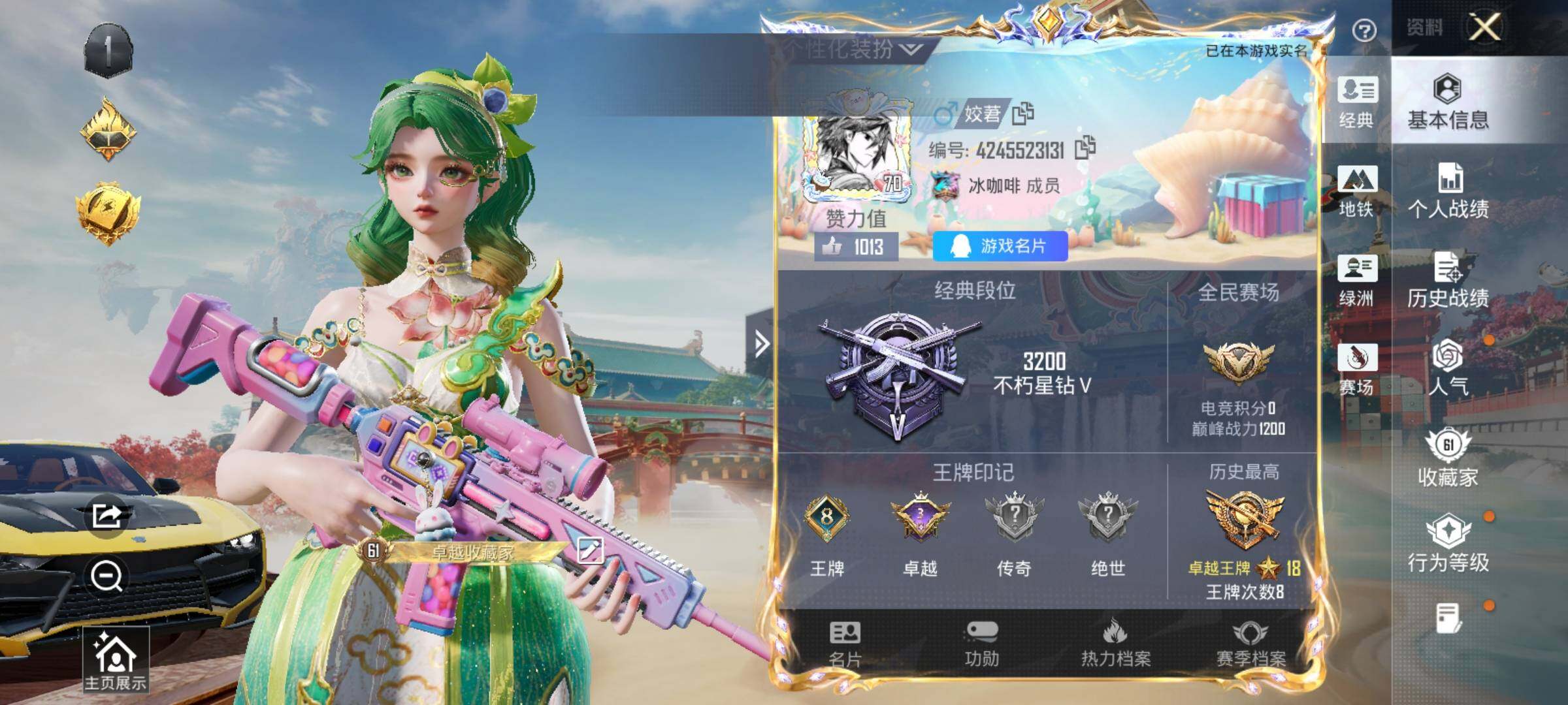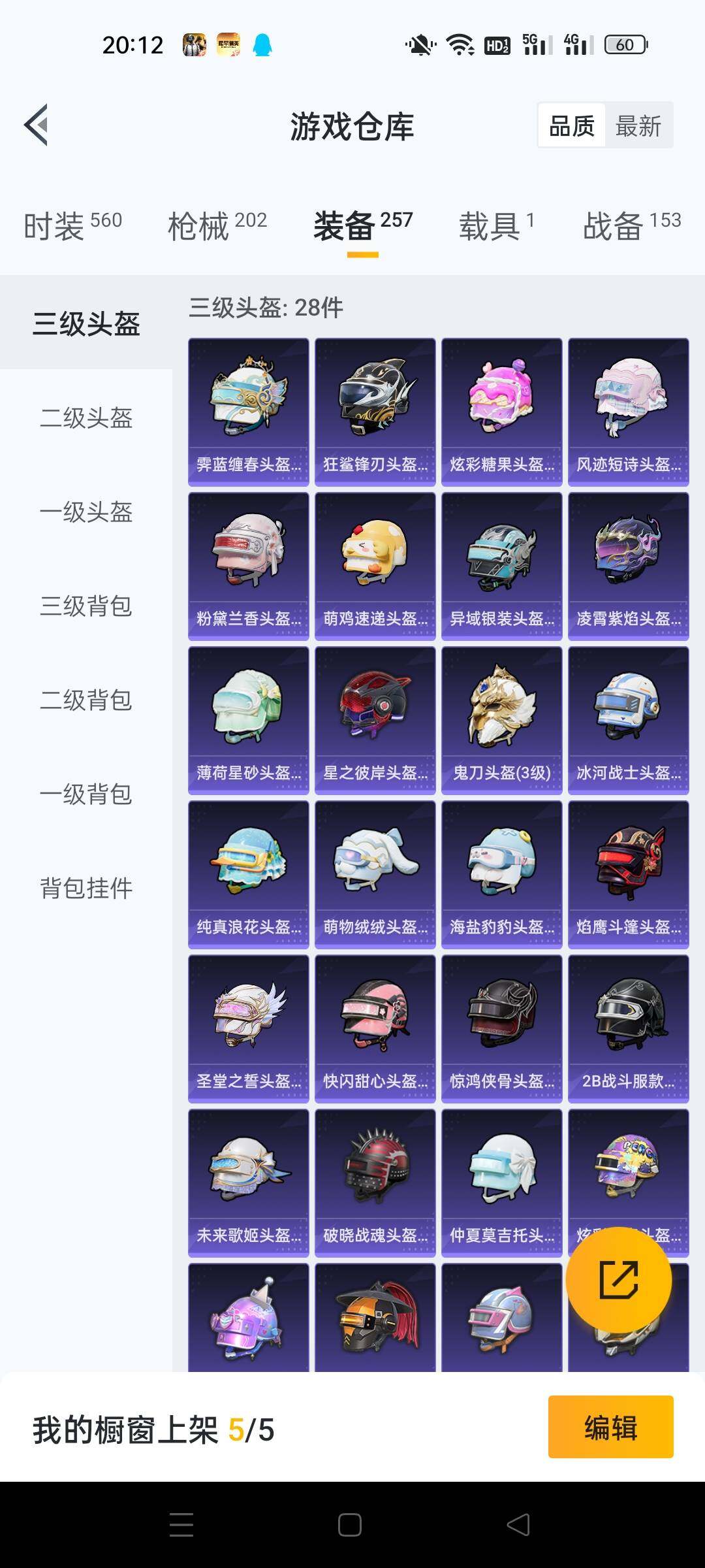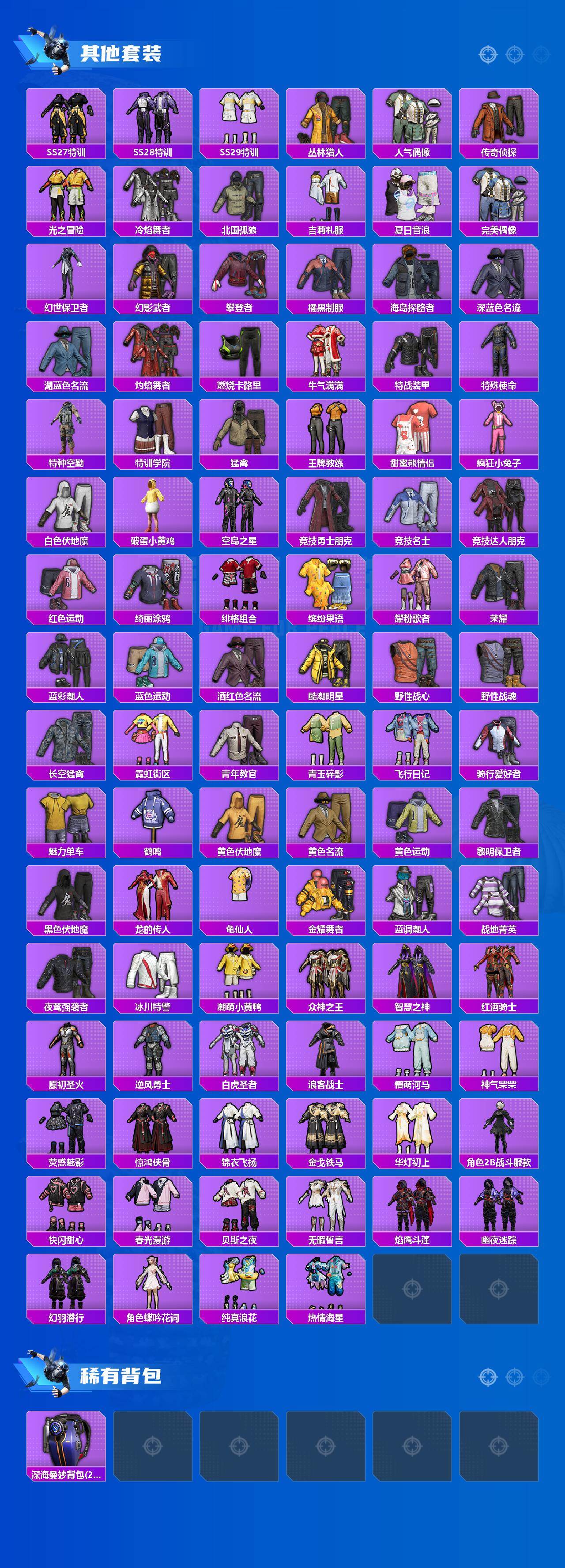 2440028手q-5粉装-8特效呛-1载具-3粉色飞行器-63019热力值-8王牌印记-147套装-202呛皮 天赋7 【热门品类】:套装-浪客战士,角色-2b战斗服款,套装-龟仙人,套装-潮萌小黄鸭,撬棍-龙胆亮银呛 【粉色套装】:角色-宙之时溯,角色-星云暗核,粉装-莲影清波,角色-萨利娅,角色-羊梦糖心 【粉色呛皮等级】:scar-l-锦绣绵绵五级,m416-电玩时刻五级