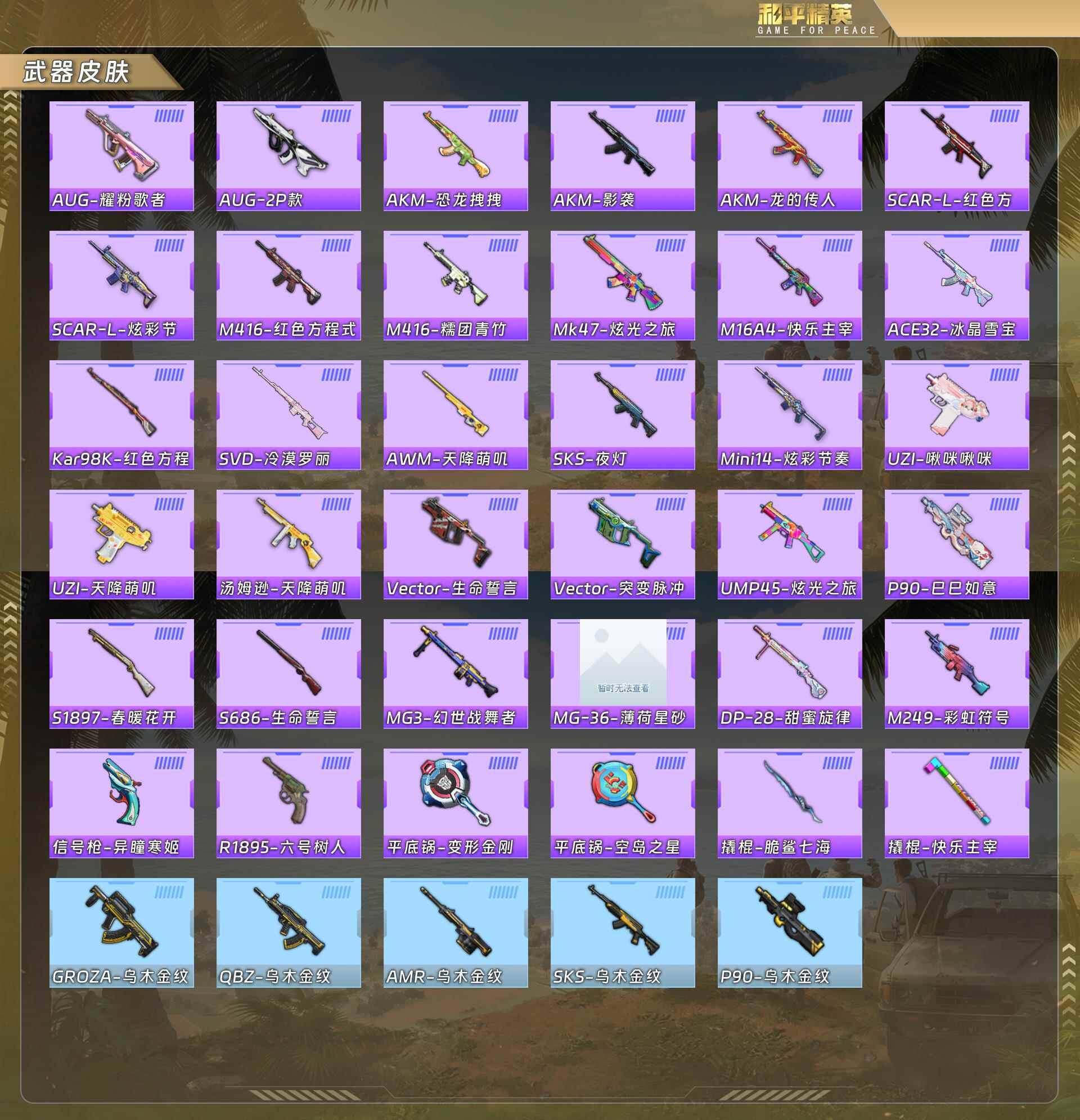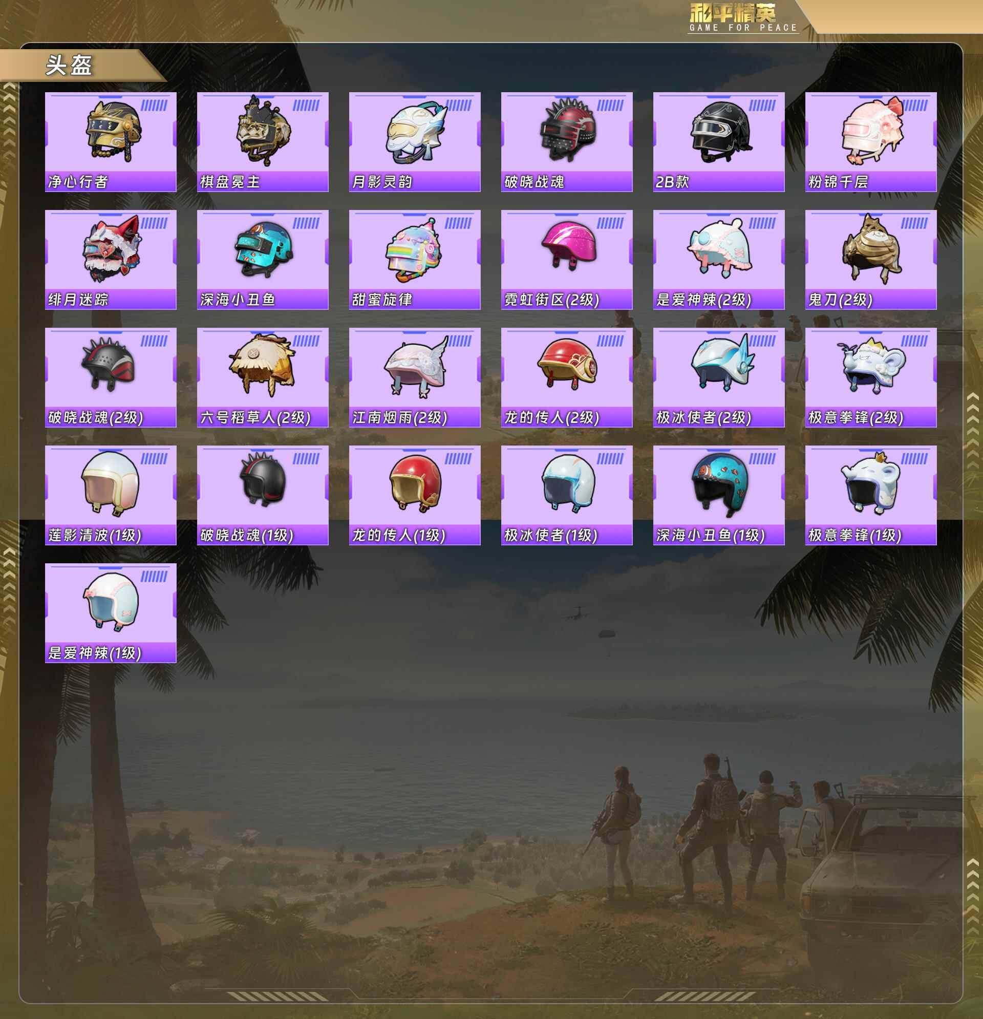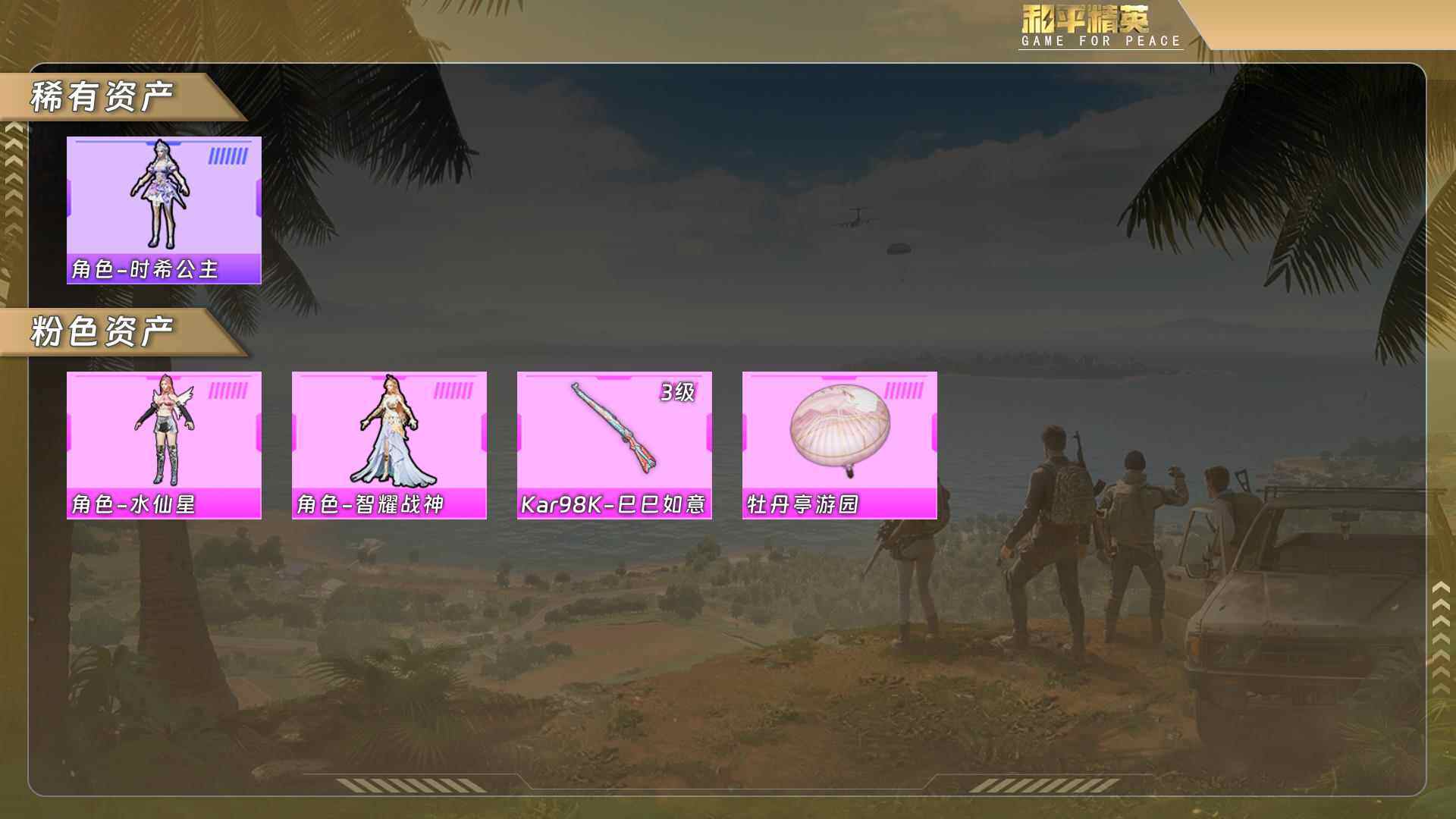 (2粉装-1粉呛)时希公主/水仙星/智耀战神 没战神框 hp5648-0载具-0粉色飞行器-10714热力值-1王牌印记-29套装-42呛皮 【粉色套装】:角色-水仙星,角色-智耀战神 【粉色呛皮等级】:kar98k-巳巳如意三级 【粉色呛皮】:kar98k-巳巳如意 【稀有套装】:角色-时希公主 【稀有呛皮】:akm-影袭,akm-恐龙拽拽,akm-龙的传人,m16a4-快乐主宰,scar-l-炫彩节奏,scar-l-红色方程式,m416-糯团青竹,m416-红色方程式,aug-2p战斗服款,aug-耀粉歌者,mk47-炫光之旅,uzi-啾咪啾咪,uzi-天降萌叽,ump45-炫光之旅,vect-生命誓言,汤姆逊-天降萌叽,p90-巳巳如意,kar98k-红色方程式,sks-夜灯,mini14-炫彩节奏,svd-冷漠罗丽,s686-生命誓言,s1897-春暖花开,m249-彩虹符号,dp-28-甜蜜旋律,mg3-幻世战舞者,r1895-六号树人,撬棍-脆鲨七海 【其他套装】:套装-ss6特训,套装-ss8特训,套装-ss25特训,套装-ss26特训,套装-六六大吉,套装-北国孤狼,套装-吉莉礼服,套装-夏日音浪,套装-登山爱好者,套装-竞技勇士朋克,套装-竞技名士,套装-绮丽涂鸦,套装-绯格组合,套装-耀眼新星,套装-迎春赐吉,套装-都市魅力,套装-长空猛禽,套装-雨林探路者,套装-魅力单车,套装-龙的传人,套装-冰冻风暴,套装-漫步者,套装-莱茵河畔,套装-晨曦薄雾,套装-湖畔霞光 【稀有头盔】:深海小丑鱼头盔3级,深海小丑鱼头盔1级 【稀有背包】:精灵迷巫背包1级 【营地id】:1041103025