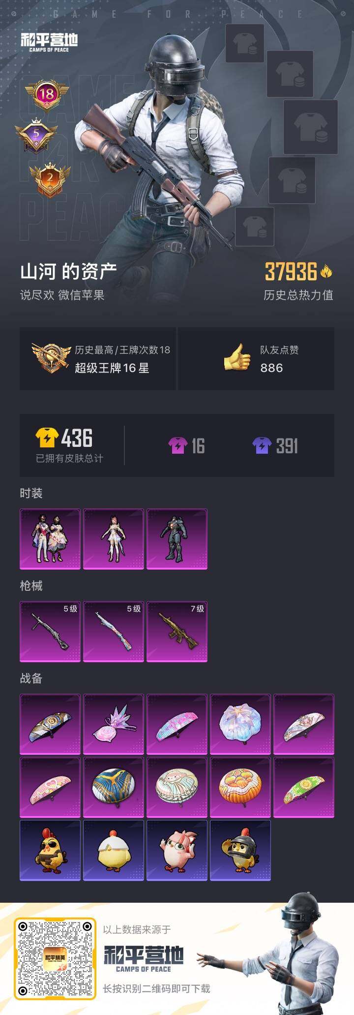 2441186微信-3粉装-3特效呛-满天赋-1粉色飞行器-37936热力值-18王牌印记-77套装-120呛皮 【热门品类】:套装-浪漫天命,套装-小丑鱼,套装-龟仙人 【粉色套装】:角色-复仇流浪者,角色-圣堂之誓,粉装-星穹咏叹调 【粉色呛皮等级】:m416-五爪金龙七级,kar98k-巳巳如意五级,dp-28-豹影疾电五级 【粉色呛皮】:m416-五爪金龙,kar98
