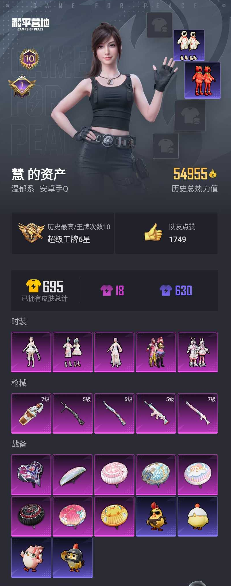 【和平精英】【lyhp21882】5粉装,5特效呛,0载具,历史最高段位:超级王牌6星 王牌印记10次 热力值:55311,151套装,188呛械,190装备,137战备;套装:套装-缤纷油彩,套装-太空嘟嘟,套装-蜜语绒猫,角色-烟云彩露,角色-千金淑猫,套装-特训学院,套装-猎鹰,套装-青年教官,套装-橘黑制服,套装-红色运动,套装-黄色运动,套装-蓝色运动,套装-黄色伏地魔,套装-白色伏地魔,套装-黑色伏地魔,套装-竞技名士,套装-深蓝色名流,套装-酒红色名流,套装-湖蓝色名流,套装-黄色名流,套装-猛禽,套装-长空猛禽,套装-漫步者,套装-海岛探路者,套装-雨林探路者,套装-旭日情侣,套装-冷焰舞者,套装-灼焰舞者,套装-浪漫天命,套装-战地督导,套装-青春校园,套装-鹰眼刺客,套装-完美偶像,套装-人气偶像,套装-幻影武者,套装-街头潮人,套装-红潮炫舞,套装-蓝彩潮人,套装-魅力单车,套装-绮丽涂鸦,套装-竞技达人朋克,套装-破晓战魂,套装-都市魅力,套装-幻世战舞者,套装-血色贵族,套装-甜蜜熊情侣,套装-缤纷果语,套装-滨海厨神,套装-青涩年华,套装-元素星魂,套装-极速红龙,套装-麻辣教官,套装-破蛋小黄鸡,套装-疯狂小兔子,套装-金鼠迎春,套装-霓虹街区,套装-白熊同盟,套装-萌黄之夏,套装-探宝勇士,套装-牛气满满,套装-白糯汤圆,套装-战术大师,套装-牛气冲天,套装-ss18特训,套装-耀粉歌者,套装-飞行日记,套装-吉莉礼服,套装-ss17特训,套装-福星高照,套装-空投萌叽,套装-ss19特训,套装-炫蓝之夏,套装-ss20特训,套装-圣诞惊喜,套装-ss21特训,套装-暖心熊熊,套装-萌趣咩咩,套装-娇憨猪猪,套装-红熊茄茄,套装-玉兔迎春,套装-ss22特训,套装-光之冒险,套装-绯格组合,套装-ss23特训,套装-数潮玩咖,套装-王牌教练,套装-柠萌假日,套装-日照花林,套装-恋恋初桃,套装-龟仙人,套装-ss25特训,套装-惊鸿侠骨,套装-锦衣飞扬,套装-双彩绵绵,套装-云霞荷露,套装-牛仔情诗,套装-深海梦境,套装-龙的传人,套装-ss26特训,套装-快闪甜心,套装-春光漫游,套装-漫游都市,套装-空岛之星,角色-星际旅行,套装-萌趣绒叽,套装-云魄琉璃,套装-贝斯之夜,套装-绵云熊熊,套装-焰鹰斗篷,套装-幻羽潜行,套装-ss27特训,套装-恋语绒绒,套装-老实芭蕉,套装-ss28特训,角色-银尘,套装-海盐绵绵冰,套装-蝶变,套装-小熊娃娃,套装-ss29特训,套装-雏菊兔兔,套装-萝兰蝴蝶,套装-异域银装,套装-星途旅人,套装-ss30特训,套装-青团波波,套装-糖糖葫芦,套装-绒宝小鹅,套装-ss31特训,套装-鱼渊荷华,套装-燕燕于飞,套装-智谋强哥,角色-海琴烟,套装-ss33特训,套装-云朵鹅,玩偶服-小狗蛇点点,套装-巳巳如意,套装-ss32特训,套装-青翼流星,套装-顶瓜瓜,套装-雪绒豹,套装-大橘大利,角色-乐音,套装-蓝海鲸歌,套装-ss34特训,套装-游乐,套装-薄荷星砂,套装-ss35特训,套装-ss37特训,套装-ss36特训,角色-霜刃之御,套装-红釉青花;呛皮:5级scar-l-锦绣绵绵,scar-l-红色方程式,scar-l-夜灯,scar-l-玉兔迎春,scar-l-拳皇·狂花道,scar-l-海盐豹豹,scar-l-小狗蛇点点,m16a4-蓝色火焰,m16a4-红色方程式,m16a4-幻世战舞者,m16a4-莲影清波,akm-影袭,akm-破晓战魂,akm-霓虹街区,akm-彩虹符号,akm-虎虎生威,akm-龙的传人,akm-灵猫魔法师,ac-val-乌木金纹,ac-val-彩虹甜喵,ac-val-天降萌叽,ac-val-快闪甜心,ac-val-玩趣呆呆,m416-蓝色火焰,m416-红色方程式,m416-糯团青竹,groza-彩虹符号,ace32-冰晶雪宝,m762-甜心宝贝,m762-彩虹符号,m762-天降萌叽,m762-雏菊兔兔,m762-云朵鹅,蜜獾-娇憨猪猪,蜜獾-天降萌叽,蜜獾-糖糖葫芦,蜜獾-乌木金纹,q-洛神天依,mk47-乌木金纹,mk47-炫光之旅,famas-乌木金纹,aug-耀粉歌者,aug-异域银装,aug-紫晶流影,g36c-星穹咏叹调,g36c-乌木金纹,awm-音爆索尼克,awm-天降萌叽,awm-圣堂之誓,awm-焰鹰斗篷,莫辛纳甘-乌木金纹,莫辛纳甘-蜜语绒猫,m24-影袭,m24-炫彩节奏,m24-乌木金纹,svd-冷漠罗丽,svd-云朵鹅,m200-惊鸿侠骨,m200-罪夜之冕,m200-乌木金纹,5级kar98k-巳巳如意,kar98k-红色方程式,kar98k-彩虹符号,kar98k-炫彩节奏,kar98k-顶峰精英,kar98k-乌木金纹,amr-雨过天青,amr-乌木金纹,mk14-乌木金纹,mk14-冰河战士,mk14-薄荷星砂,mini14-耀粉歌者,mini14-香桃花海,mini14-雏菊兔兔,vss-香桃花海,mk20-h-快闪甜心,mk20-h-糖糖葫芦,mk20-h-乌木金纹,sks-炫彩节奏,sks-糯团青竹,sks-夜幕颂歌,slr-娇憨猪猪,slr-彩虹符号,slr-乌木金纹,mk12-乌木金纹,m417-惊鸿侠骨,m417-玩趣呆呆,汤姆逊-耀粉歌者,汤姆逊-炫彩节奏,汤姆逊-天降萌叽,汤姆逊-灵猫魔法师,aks-74u-鸡智如我,aks-74u-乌木金纹,野牛-雏菊兔兔,野牛-燕燕于飞,野牛-乌木金纹,uzi-红色方程式,uzi-影袭,uzi-炫彩节奏,uzi-娇憨猪猪,uzi-天降萌叽,uzi-冰河战士,uzi-啾咪啾咪,uzi-绿洲时空,p90-快闪甜心,p90-玩趣呆呆,p90-巳巳如意,p90-紫矿核心,p90-乌木金纹,vect-生命誓言,vect-焰鹰斗篷,vect-燕燕于飞,ump45-夜灯,ump45-蓝色火焰,ump45-生命誓言,ump45-糖糖葫芦,ump45-绿洲时空,mp5k-乌木金纹,s686-红色方程式,s686-生命誓言,s686-彩虹符号,s686-蜜语绒猫,s686-巳巳如意,7级spas-12-蜜语绒猫,spas-12-天使羽翼,spas-12-燕燕于飞,spas-12-云朵鹅,spas-12-罪夜之冕,spas-12-乌木金纹,dbs-彩虹符号,dbs-焰鹰斗篷,dbs-荧海星豚,dbs-乌木金纹,s12k-破晓战魂,s12k-夜灯,s12k-娇憨猪猪,s12k-幻世战舞者,s12k-玩趣呆呆,s12k-霓彩脉冲,aa12-g-雨过天青,s1897-炫彩节奏,s1897-糯团青竹,mg-36-薄荷星砂,m249-破晓战魂,m249-彩虹符号,m249-糯团青竹,m249-冰晶雪宝,5级dp-28-豹影疾电,dp-28-彩虹符号,dp-28-焰鹰斗篷,mg3-幻世战舞者,mg3-乌木