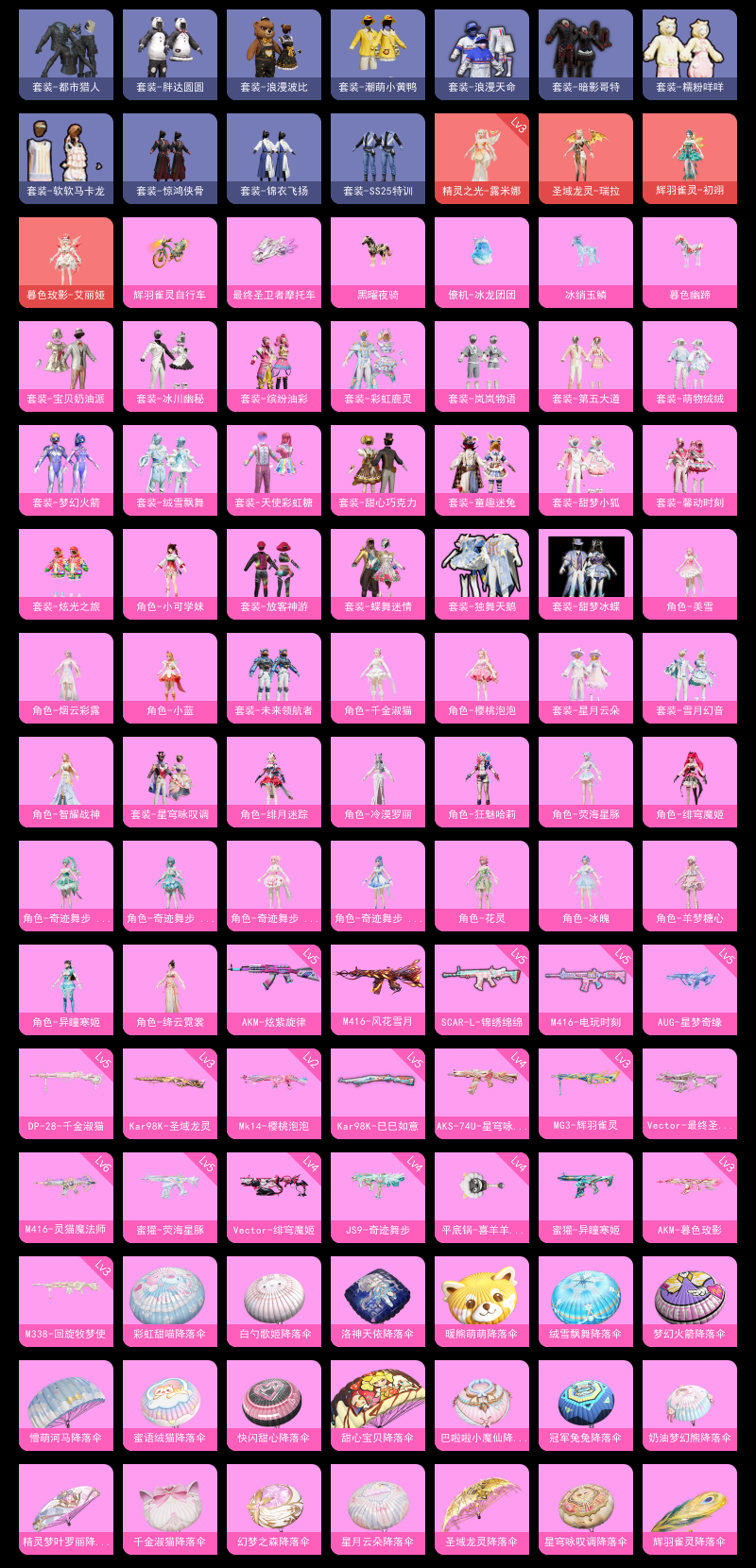 【和平精英】【lyhp21863】45粉装,23特效呛,6载具,历史最高段位:传奇王牌18星 王牌印记15次 热力值:153623,315套装,368呛械,573装备,271战备;套装:精灵之光-露米娜,辉羽雀灵-初翊,圣域龙灵-瑞拉,暮色玫影-艾丽娅,套装-甜心巧克力,套装-宝贝奶油派,套装-天使彩虹糖,套装-梦幻火箭,套装-蝶舞迷情,套装-缤纷油彩,套装-放客神游,套装-馨动时刻,套装-独舞天鹅,套装-甜梦冰蝶,套装-童趣迷兔,套装-彩虹鹿灵,套装-岚岚物语,套装-绒雪飘舞,套装-甜梦小狐,套装-冰川幽秘,角色-小可学妹,套装-第五大道,套装-萌物绒绒,套装-炫光之旅,角色-烟云彩露,角色-小蓝,角色-美雪,套装-星月云朵,角色-异瞳寒姬,套装-未来领航者,角色-千金淑猫,角色-樱桃泡泡,角色-绯穹魔姬,角色-智耀战神,套装-雪月幻音,角色-狂魅哈莉,角色-冷漠罗丽,套装-星穹咏叹调,角色-羊梦糖心,角色-荧海星豚,角色-绯月迷踪,角色-花灵,角色-奇迹舞步 美雪,角色-冰魄,角色-奇迹舞步 美琪,角色-奇迹舞步 贝贝,角色-奇迹舞步 雅雅,角色-绝对恒星,角色-绛云霓裳,套装-特训学院,套装-猎鹰,套装-青年教官,套装-橘黑制服,套装-红色运动,套装-黄色运动,套装-蓝色运动,套装-黄色伏地魔,套装-白色伏地魔,套装-黑色伏地魔,套装-竞技名士,套装-深蓝色名流,套装-酒红色名流,套装-湖蓝色名流,套装-黄色名流,套装-猛禽,套装-长空猛禽,套装-漫步者,套装-黎明保卫者,套装-海岛探路者,套装-旭日情侣,套装-冷焰舞者,套装-灼焰舞者,套装-都市猎人,套装-浪漫天命,套装-特战装甲,套装-浪漫假日,套装-战地督导,套装-特殊使命,套装-沙漠毒蛇,套装-鹰眼刺客,套装-冰冻风暴,套装-完美偶像,套装-人气偶像,套装-幻影武者,套装-街头潮人,套装-红潮炫舞,套装-蓝彩潮人,套装-神秘领域,套装-魅力单车,套装-绮丽涂鸦,套装-坚韧舞者,套装-竞技达人朋克,套装-野性战心,套装-破晓战魂,套装-荣耀,套装-热血青春,套装-幻世战舞者,套装-暗影哥特,套装-弄潮海豚,套装-呆萌铁蟹,套装-夏日倾情,套装-青涩时光,套装-缤纷果语,套装-龙魂突击队,套装-元素星魂,套装-胖达圆圆,套装-极速红龙,套装-格斗先锋,套装-麻辣教官,套装-黑夜传说,套装-破蛋小黄鸡,套装-好奇恐龙,套装-云虎纪,套装-浪漫波比,套装-云纹魔法士,套装-淡雅花蕊,套装-玲珑飞花,套装-鹤鸣,套装-霓虹街区,套装-纯白誓言,套装-激萌罗小黑,套装-潮萌小黄鸭,套装-软萌银虎,套装-白熊同盟,套装-萌黄之夏,套装-顽皮玉兔,套装-探宝勇士,套装-白糯汤圆,套装-特种颜团子,套装-战术大师,套装-ss18特训,套装-耀粉歌者,套装-梦起落英,套装-星河入梦,套装-曼妙人鱼,套装-热情海星,套装-纯真浪花,套装-ss17特训,套装-福星高照,套装-空投萌叽,套装-ss19特训,套装-兔兔白日梦,套装-炫蓝之夏,套装-ss20特训,套装-粉团憨憨,套装-恶魔喵喵,套装-ss21特训,套装-萌趣咩咩,套装-娇憨猪猪,套装-红熊茄茄,套装-暖心橘喵,套装-樱桃黑巧,套装-幸运萌趣趣,套装-玉兔迎春,套装-绯格组合,套装-ss23特训,套装-莱茵河畔,套装-香榭午后,套装-龙舌兰冰茶,套装-甜梦熊熊,套装-神气柴柴,套装-懵萌河马,套装-灵蜜圈圈,套装-妙红点点,套装-幻彩翩翩,套装-糯粉咩咩,套装-王牌教练,套装-柠萌假日,套装-青玉碎影,套装-ss24特训,套装-软软马卡龙,套装-恋恋初桃,套装-龟仙人,套装-涂山之恋,套装-ss25特训,套装-惊鸿侠骨,套装-锦衣飞扬,套装-诗意画廊,套装-奶油庭院,套装-云霞荷露,套装-元气发射,套装-香桃花海,套装-深海梦境,套装-龙的传人,套装-冰河战士,套装-ss26特训,套装-快闪甜心,套装-春光漫游,套装-漫游都市,套装-空岛之星,套装-萌趣绒叽,套装-湖泊玉兰,套装-贝斯之夜,套装-焰鹰斗篷,套装-幽夜迷踪,套装-幻羽潜行,套装-ss27特训,套装-恋语绒绒,套装-老实芭蕉,套装-ss28特训,角色-蝶吟花词,玩偶服-卖崽青蛙,角色-迎夏光舞,角色-极地流光,角色-粉雾星云,角色-白光莹,角色-情公主,套装-新风雅兰,套装-白辉玉蕊,套装-街头风暴,套装-海盐绵绵冰,套装-航行童话,套装-蝶变,套装-粉日山川,套装-雪夜云雾,套装-小熊娃娃,套装-ss29特训,套装-雏菊兔兔,套装-雁字回时,套装-萝兰蝴蝶,套装-晨曦轻云,角色-绯色魅影,角色-紫俏灵猫,套装-芝莓熊熊,套装-小熊蜂蜜罐,套装-异域银装,角色-摩登魅猫,角色-蜜桃派对,角色-都市丽猫,套装-星途旅人,角色-糖霜甜心,角色-俏兔智灵,套装-ss30特训,套装-青团波波,套装-棉花软糖,角色-夜瞳黯灵,角色-绛羽幽主,套装-糖糖葫芦,套装-纯白跃动,套装-小鸟芋圆,套装-诡诞巡游,角色-馥郁金蕊,套装-绒宝小鹅,套装-ss31特训,套装-鱼渊荷华,套装-燕燕于飞,套装-智谋强哥,套装-晶灵使者,角色-瑰梦爱神,套装-紫幽梦,套装-粉恋花,套装-晶辉守护,套装-ss33特训,套装-云朵鹅,套装-巳巳如意,套装-ss32特训,角色-琉璃花蕾,套装-彩虹兔,角色-冰晶湖光,套装-青翼流星,套装-蓝冰羽,套装-顶瓜瓜,套装-雪绒豹,套装-狂鲨锋刃,套装-脆脆薯条,套装-混沌火种,套装-大橘大利,套装-兰香蝶语,套装-极速光影,角色-时希公主,角色-灵公主,角色-鲛海歌灵,套装-星渊小夜曲,套装-霓虹热舞,套装-蜜露汐语,套装-炫彩糖果,套装-星影赞美诗,套装-香香汉堡,玩偶服-懒羊羊,套装-蓝海鲸歌,玩偶服-喜羊羊,玩偶服-美羊羊,角色-黯羽织刑,套装-元气之梦,角色-玫纹锢梦,套装-ss34特训,套装-擎苍青焰,套装-朱霞炽焰,套装-游乐,套装-凌霄紫焰,套装-薄荷星砂,套