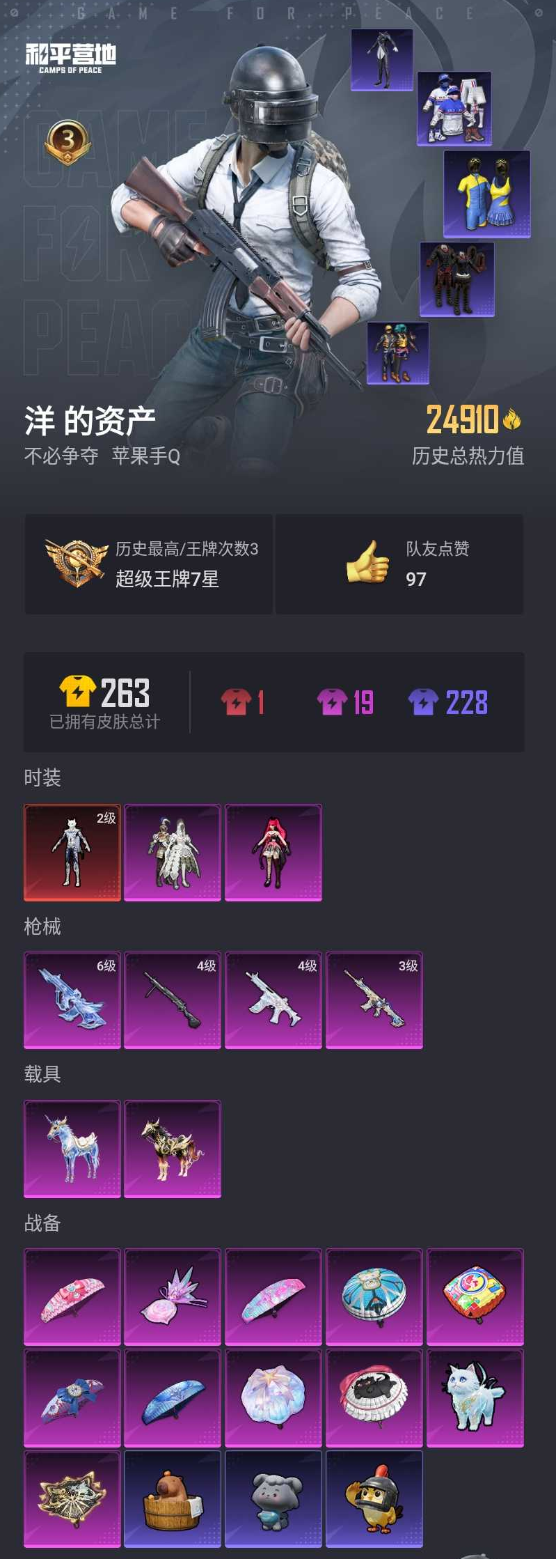 【和平精英】【lyhp21855】2粉装,4特效呛,2载具,历史最高段位:超级王牌7星 王牌印记3次 热力值:24910,44套装,68呛械,103装备,35战备;套装:灵猫魔法师-塞维尔,套装-冰霜白皇,角色-绯穹魔姬,套装-竞技名士,套装-长空猛禽,套装-漫步者,套装-浪漫天命,套装-特殊使命,套装-冷酷挑战者,套装-街头潮人,套装-蓝彩潮人,套装-魅力单车,套装-幻世保卫者,套装-暗影哥特,套装-弄潮海豚,套装-迅捷狂鲨,套装-呆萌铁蟹,套装-深海小丑鱼,套装-夏日倾情,套装-兔兔白日梦,套装-光之冒险,角色-极地流光,角色-无面战甲,角色-糖霜甜心,角色-夜瞳黯灵,套装-ss33特训,套装-云朵鹅,套装-青翼流星,套装-雪绒豹,套装-狂鲨锋刃,套装-蜜露汐语,玩偶服-懒羊羊,套装-元气之梦,套装-ss34特训,套装-擎苍青焰,套装-朱霞炽焰,套装-游乐,套装-凌霄紫焰,套装-ss35特训,套装-琴音绮想,套装-画境星梦,套装-ss36特训,套装-雪国风尚,套装-萌鸡速递;呛皮:scar-l-玉兔迎春,arx-凌霄紫焰,4级蜜獾-荧海星豚,蜜獾-绯穹魔姬,ace32-画境星梦,ace32-冰晶雪宝,groza-影袭,groza-无面战甲,groza-荧海星豚,groza-紫矿核心,akm-缤纷海域,akm-涂鸦街区,akm-灵猫魔法师,akm-霓彩脉冲,6级aug-星梦奇缘,aug-幻影战神,famas-霓彩脉冲,famas-乌木金纹,m762-云朵鹅,3级m416-灵猫魔法师,svd-云朵鹅,svd-霓彩脉冲,win94-乌木金纹,m24-影袭,sks-金玉无双,mini14-绯穹魔姬,m1加兰德-画境星梦,mk12-乌木金纹,slr-霓彩脉冲,mk20-h-星梦奇缘,mk20-h-狂鲨锋刃,ump45-夜灯,ump45-金玉无双,mp5k-画境星梦,aks-74u-乌木金纹,js9-凌霄紫焰,uzi-影袭,uzi-炫彩糖果,p90-紫矿核心,vect-生命誓言,汤姆逊-星梦奇缘,汤姆逊-灵猫魔法师,aa12-g-橘猫汽水,aa12-g-画境星梦,dbs-荧海星豚,spas-12-狂鲨锋刃,spas-12-云朵鹅,s1897-荧海星豚,m249-星之彼岸,m249-无面战甲,m249-绯穹魔姬,m249-冰晶雪宝,mg-36-凌霄紫焰,mg-36-薄荷星砂,mg3-幻世战舞者,4级dp-28-豹影疾电,信号呛-异瞳寒姬,p92-凌霄紫焰,p1911-无面战甲,沙墨之鹦-云朵鹅,撬棍-灵猫魔法师,撬棍-冰晶雪宝,大砍刀-云朵鹅,平底锅-凌霄紫焰,平底锅-画境星梦,破片手留单-呆爆全场,破片手留单-拽到爆炸,破片手留单-爆破雪人;载具:星梦玉骢,黑曜夜骑;降落伞:灵猫魔法师飞行器,炫彩糖果飞行器,狂鲨锋刃飞行器,登顶巅峰飞行器; 详情看图1红2粉装4特效呛2载具 2级塞维尔 深海小丑鱼 浪漫天命 6级aug星梦奇缘 3级m4灵猫魔法师 星空马 地铁满天赋