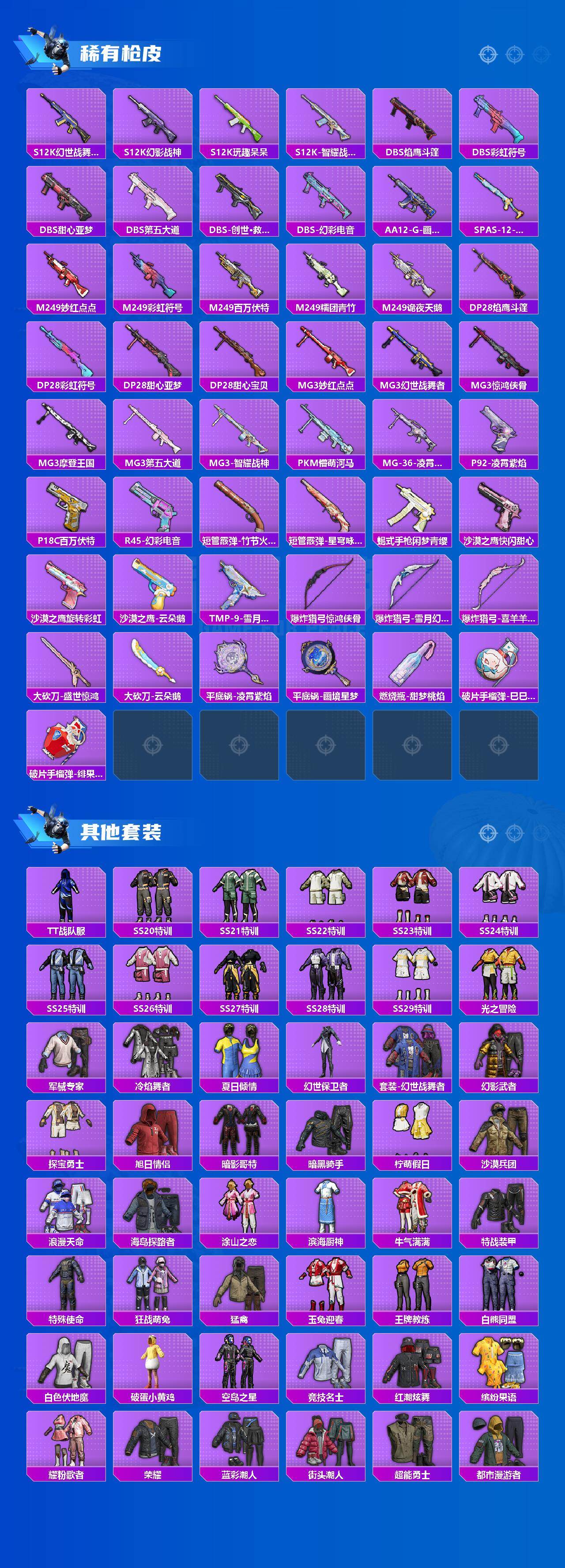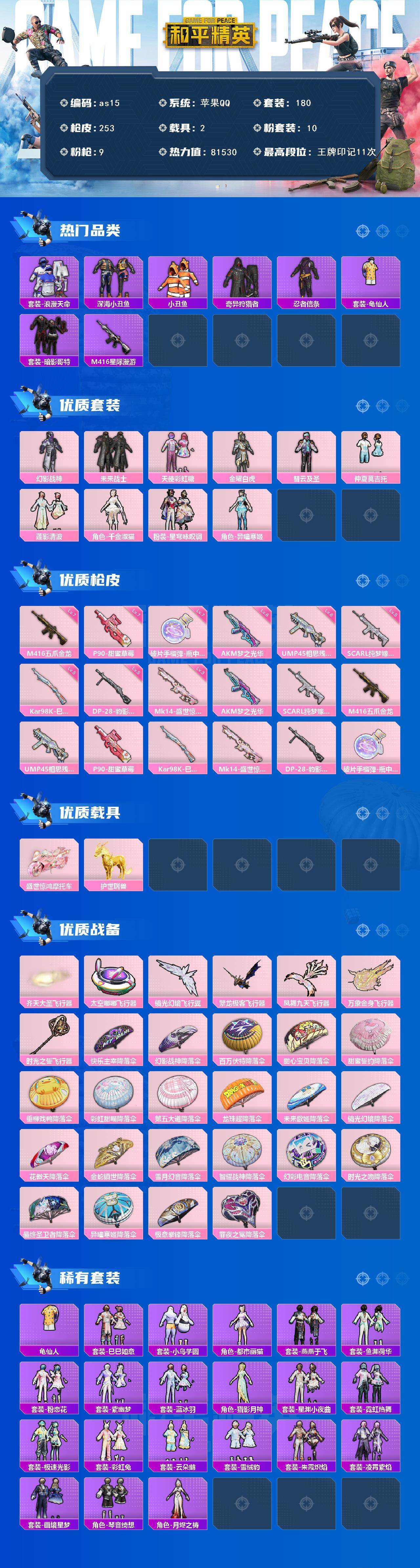 苹果 手q-10粉装-9特效呛-2载具-8粉色飞行器-81530热力值-11王牌印记-180套装-253呛皮 【热门品类】:套装-浪漫天命,套装-深海小丑鱼,套装-小丑鱼,套装-奇异狩猎者,套装-忍者信条,套装-龟仙人,套装-暗影哥特,m416-星际漫游 【粉色套装】:粉装-幻影战神,粉装-未来战士,粉装-天使彩虹糖,粉装-金曜白虎,粉装-彗云及圣,粉装-仲夏莫吉托,粉装-莲影清波,角色-千金