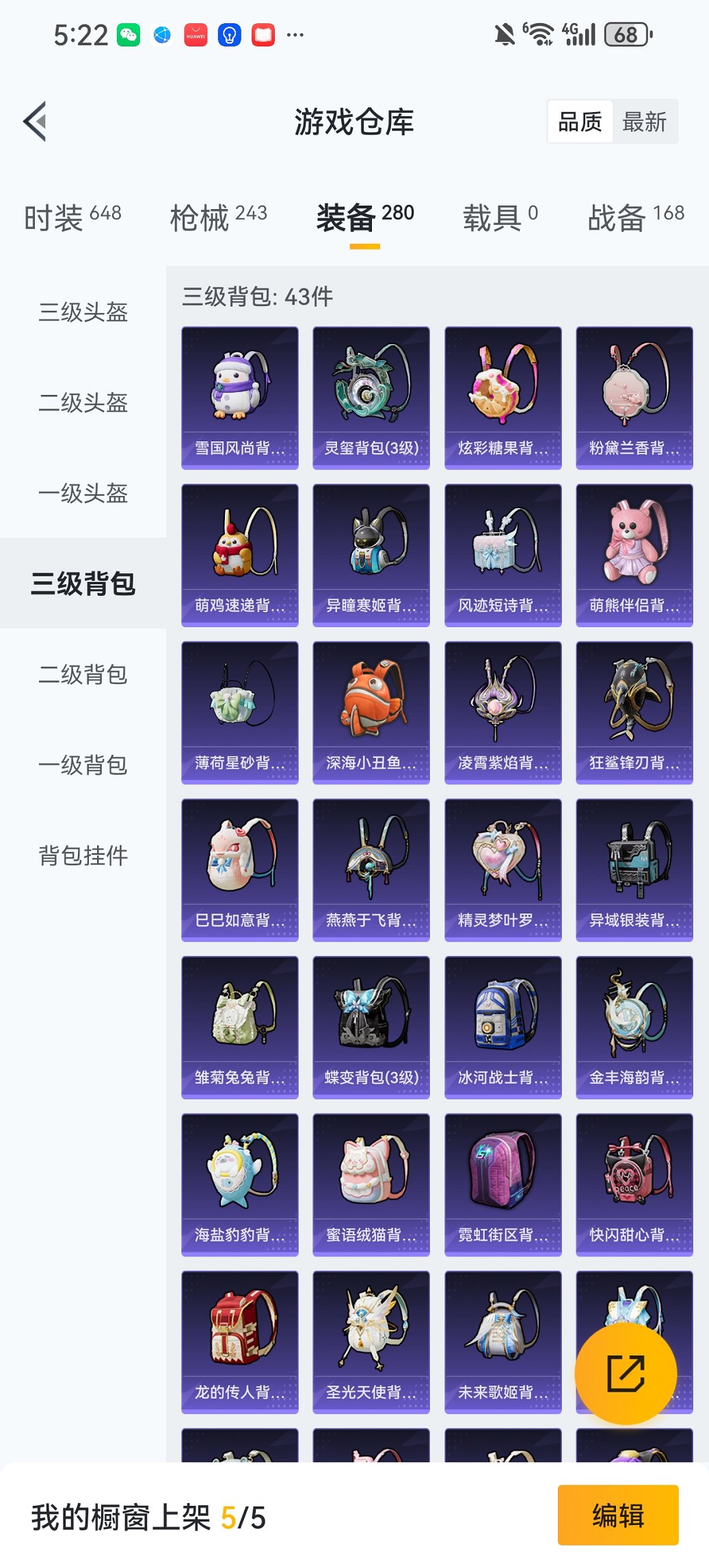 0载具-161套装-249呛皮-【女号战神框满级m4至情至圣小熊背包14特效呛10粉装 秒换绑不用等】 苹果q区-76631热力值-19印记-历史最高段位:无敌战神-161套装-249呛皮 【2稀有】 萌熊伴侣背包(小熊背包) mark.06蓝螳螂【10粉装】 天使彩虹糖 缤纷油彩(猪脸妹) 洛天依 寒光使者 白勺歌姬 呆萌星弥 小可学妹 角色-异瞳寒姬 角色-羊梦糖心【14特效呛】 m416-至情至圣9级