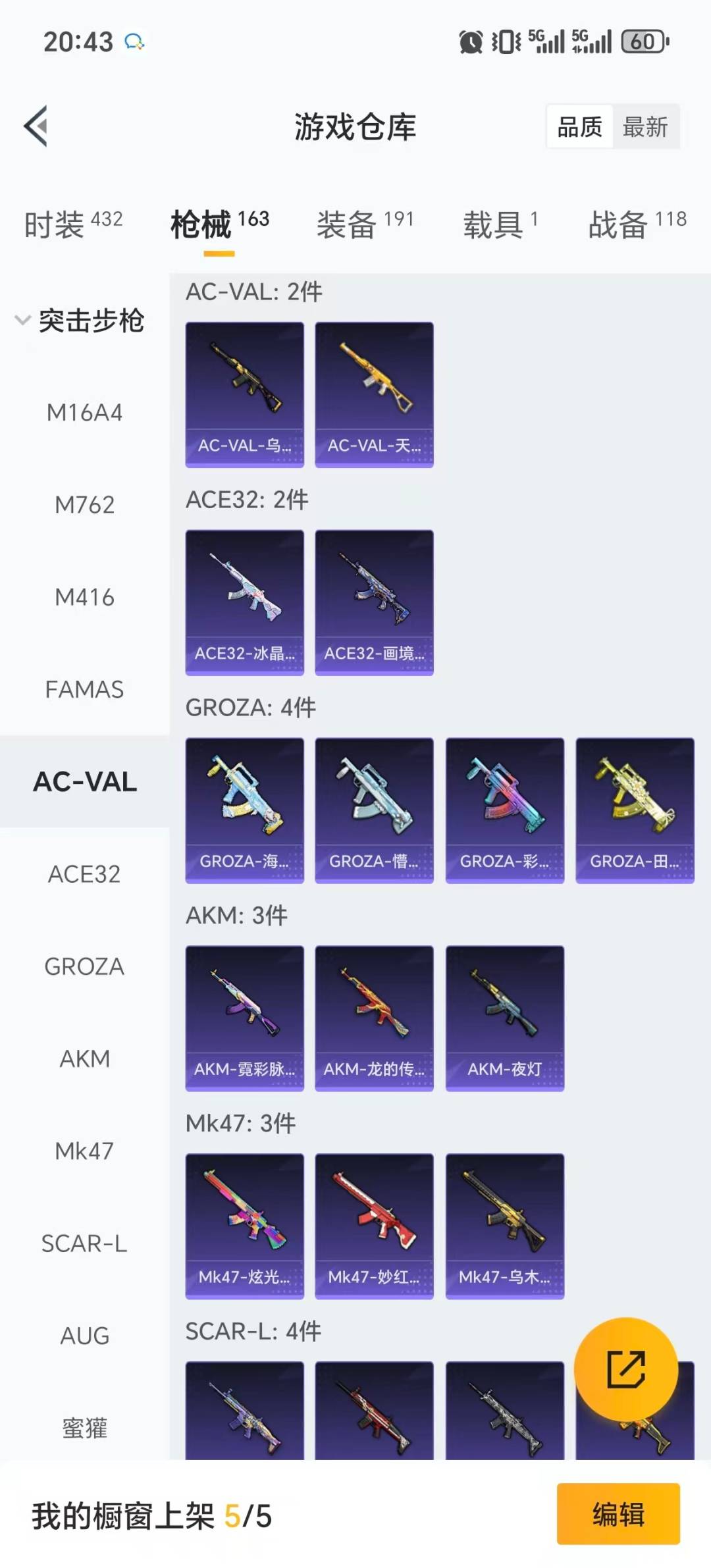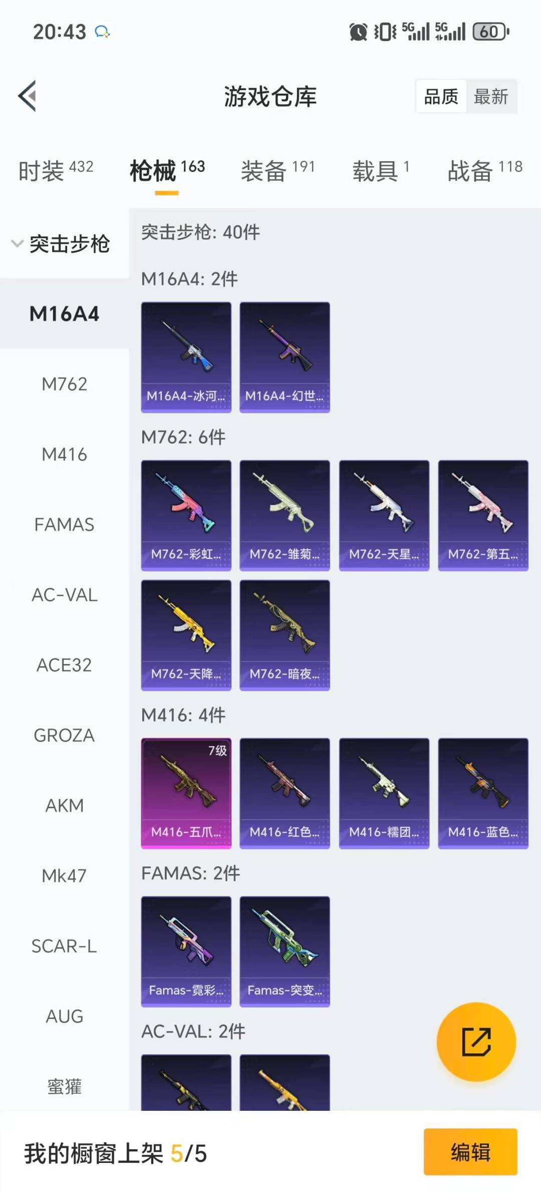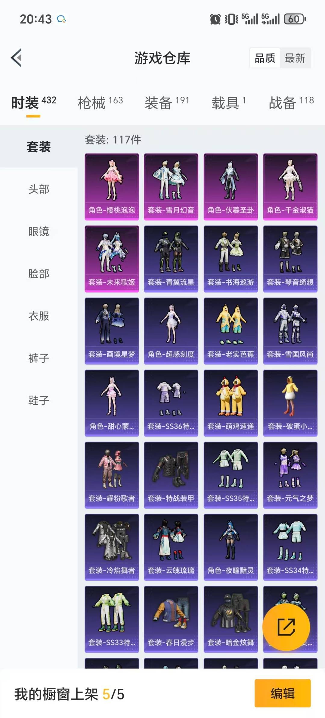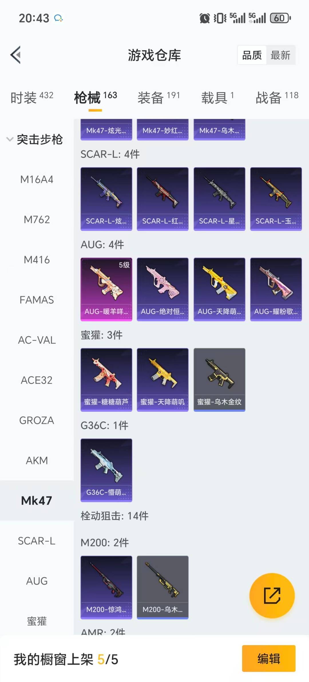 5粉装 7特效呛 1载具 6印记 可二次 可修改实名 【热门装扮】樱桃泡泡雪月幻音伏羲圣卦千金淑猫未来歌姬 【载具】迈凯伦570s旭日黄 【稀有呛皮】aug-暖羊咩咩14-樱桃泡泡kar98k-巳巳如意aks-74u-森灵之息dp-28-豹影疾电m416五爪金龙m417