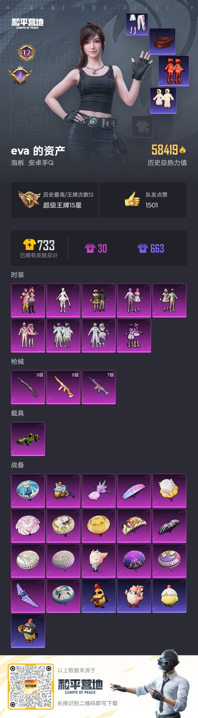 【和平精英】【txhp7120】9粉装,3特效呛,1载具,历史最高段位:超级王牌15星 王牌印记12次 热力值:58419,154套装,190呛械,239装备,121战备;套装:套装-甜心巧克力,套装-宝贝奶油派,套装-天使彩虹糖,套装-缤纷油彩,套装-馨动时刻,套装-彩虹鹿灵,套装-山涧鹿灵,套装-蓝莓炮弹,角色-千金淑猫,套装-特训学院,套装-猎鹰,套装-橘黑制服,套装-红色运动,套装-黄色运动,套装-蓝色运动,套装-黄色伏地魔,套装-白色伏地魔,套装-黑色伏地魔,套装-骑行爱好者,套装-竞技名士,套装-酒红色名流,套装-湖蓝色名流,套装-黄色名流,套装-猛禽,套装-长空猛禽,套装-漫步者,套装-黎明保卫者,套装-蓝色守护者,套装-西部风情,套装-冷焰舞者,套装-灼焰舞者,套装-浪漫天命,套装-特战装甲,套装-战地督导,套装-特殊使命,套装-青春校园,套装-灰色格斗者,套装-燃烧卡路里,套装-完美偶像,套装-人气偶像,套装-幻影武者,套装-街头潮人,套装-蓝彩潮人,套装-怒火燎原,套装-魅力单车,套装-绮丽涂鸦,套装-竞技达人朋克,套装-野性战心,套装-破晓战魂,套装-幻世保卫者,套装-都市魅力,套装-风行保卫者,套装-热血青春,套装-沙漠兵团,套装-幻世战舞者,套装-暗影哥特,套装-呆萌铁蟹,套装-甜蜜熊情侣,套装-青涩时光,套装-alan walker,套装-冰川特警,套装-元素星魂,套装-极速红龙,套装-格斗先锋,套装-wifi精灵,套装-麻辣教官,套装-破蛋小黄鸡,套装-鹤鸣,套装-霓虹街区,套装-激萌罗小黑,套装-ss8特训,套装-神秘黑猫,套装-萌黄之夏,套装-夏日音浪,套装-ss9特训,套装-探宝勇士,套装-牛气满满,套装-白糯汤圆,套装-牛气冲天,套装-ss18特训,套装-耀粉歌者,套装-治愈之星,套装-科技之星,套装-浪漫樱花,套装-ss14特训,套装-ss15特训,套装-ss16特训,套装-暗夜魅影,套装-ss17特训,套装-瑞龙福将,套装-团圆交子,套装-福星高照,套装-雪兔飞飞,套装-虎虎生威吉莉,套装-异彩先驱,套装-霓虹极客,套装-空投萌叽,套装-ss19特训,套装-飞驰魅影,套装-音速流光,套装-ss20特训,套装-甜心亚梦,套装-虚音幻奏,套装-ss21特训,套装-萌趣咩咩,套装-娇憨猪猪,套装-红熊茄茄,套装-樱桃黑巧,套装-玉兔迎春,套装-ss22特训,套装-和煦暖阳,套装-田园牧歌,套装-轻风白浪,套装-光之冒险,套装-绯格组合,套装-ss23特训,套装-妙红点点,套装-幻彩翩翩,套装-糯粉咩咩,套装-王牌教练,套装-柠萌假日,套装-ss24特训,套装-龟仙人,套装-ss25特训,套装-龙的传人,套装-漫游都市,套装-街头风暴,角色-紫俏灵猫,套装-异域银装,套装-ss33特训,套装-云朵鹅,套装-彩虹兔,套装-顶瓜瓜,套装-雪绒豹,套装-极速光影,套装-霓虹热舞,套装-炫彩糖果,套装-蓝海鲸歌,套装-元气之梦,套装-ss34特训,套装-擎苍青焰,套装-朱霞炽焰,套装-凌霄紫焰,套装-薄荷星砂,套装-ss35特训,套装-午间小调,套装-秘语星愿,套装-风迹短诗,套装-琴音绮想,套装-画境星梦,套装-ss36特训,套装-雪国风尚,套装-萌鸡速递,套装-玲珑侠影;呛皮:ace32-画境星梦,m762-甜心宝贝,m762-镭射皇者,m762-瑞龙福将,m762-彩虹符号,m762-天降萌叽,m762-云朵鹅,groza-春暖花开,groza-治愈之星,groza-林间仙鹿,groza-异彩先驱,groza-恐龙拽拽,groza-田园牧歌,groza-紫矿核心,groza-乌木金纹,7级scar-l-童趣迷兔,scar-l-红色方程式,scar-l-黄金龙骨,scar-l-炫彩节奏,scar-l-龙宫之主,scar-l-碧影闪光,scar-l-彩虹符号,scar-l-玉兔迎春,akm-缤纷海域,akm-百万伏特,akm-破晓战魂,akm-夜灯,akm-涂鸦街区,akm-彩虹符号,akm-虎虎生威,akm-筑梦精灵,akm-龙的传人,akm-霓彩脉冲,m416-蓝色火焰,m416-红色方程式,m416-糯团青竹,ac-val-甜心亚梦,ac-val-乌木金纹,ac-val-天降萌叽,m16a4-夜灯,m16a4-甜心亚梦,m16a4-幻世战舞者,mk47-林间仙鹿,mk47-天之羽翼,mk47-洛神天依,mk47-乌木金纹,mk47-妙红点点,mk47-风迹短诗,蜜獾-娇憨猪猪,蜜獾-风迹短诗,famas-霓彩脉冲,famas-乌木金纹,arx-凌霄紫焰,g36c-暗夜玫瑰,g36c-乌木金纹,q-彩虹符号,q-飞驰魅影,q-乌木金纹,aug-耀粉歌者,aug-异域银装,kar98k-梦幻火箭,kar98k-深海曼妙,kar98k-终极赛罗,kar98k-彩虹符号,kar98k-飞驰魅影,kar98k-乌木金纹,amr-妙趣可丽,amr-妙红点点,amr-喜羊羊与灰太狼,莫辛纳甘-乌木金纹,莫辛纳甘-风迹短诗,win94-瑞龙福将,win94-乌木金纹,m24-治愈之星,m24-香水柠檬,m24-炫彩节奏,m24-乌木金纹,awm-王牌四分卫,awm-恐龙拽拽,awm-音爆索尼克,svd-云朵鹅,slr-娇憨猪猪,slr-彩虹符号,slr-霓彩脉冲,mk20-h-狂鲨锋刃,mk12-风迹短诗,mk12-乌木金纹,mini14-梦幻火箭,mini14-林间仙鹿,mini14-异彩先驱,mini14-筑梦精灵,mini14-鸡智如我,mk14-治愈之星,mk14-乌木金纹,mk14-薄荷星砂,sks-夜灯,sks-糯团青竹,m417-玩趣呆呆,m1加兰德-画境星梦,vss-田园牧歌,5级汤姆逊-热量炸弹,汤姆逊-耀粉歌者,汤姆逊-林间仙鹿,汤姆逊-炫彩节奏,汤姆逊-异彩先驱,汤姆逊-暗夜鎏金,uzi-炫彩节奏,uzi-娇憨猪猪,uzi-天降萌叽,uzi-啾咪啾咪,uzi-炫彩糖果,mp5k-异彩先驱,mp5k-画境星梦,野牛-王牌四分卫,野牛-乌木金纹,js9-凌霄紫焰,vect-生命誓言,vect-彩虹符号,vect-治愈之星,vect-香水柠檬,vect-田园牧歌,ump45-夜灯,ump45-生命誓言,aks-74u-鸡智如我,aks-74u-乌木金纹,p90-飞驰魅影,p90-乌木金纹,s12k-夏日绵绵冰,s12k-瑞龙福将,s12k-娇憨猪猪,s12k-幻世战舞者,s12k-玩趣呆呆,s12k-极意拳锋,s12k-霓彩脉冲,s686-红色方程式,s686-生命誓言,s686-橘柚倾心,s686-彩虹符号,s1897-炫彩节奏,s1897-碧影闪光,s1897-飞驰魅影,dbs-甜心亚梦,dbs-彩虹符号,dbs-荧海星豚,dbs-风迹短诗,spas-12-田园牧歌,spas-12-狂鲨