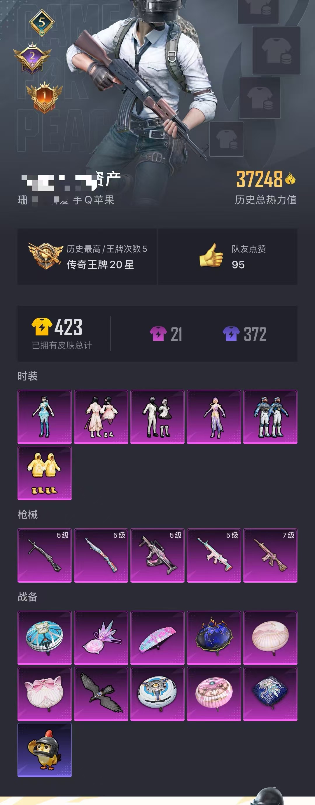 0载具-86套装-125呛皮-【小丑鱼 心之恋语满级6粉装5特效呛可秒换绑】 苹果q区-39277热力值-5印记-86套装-125呛皮 【6粉装】 傲傲奶龙 冰川幽秘 桃粉嫣然 角色-金域紫灵 套装-未来领航者 角色-异瞳寒姬【5特效呛】 scar-l-锦绣绵绵5级 m416-心之恋语7级 groza-镜光银凌5级 kar98k-巳巳如意5级 dp-28-豹影疾电5级【15热门】 m41