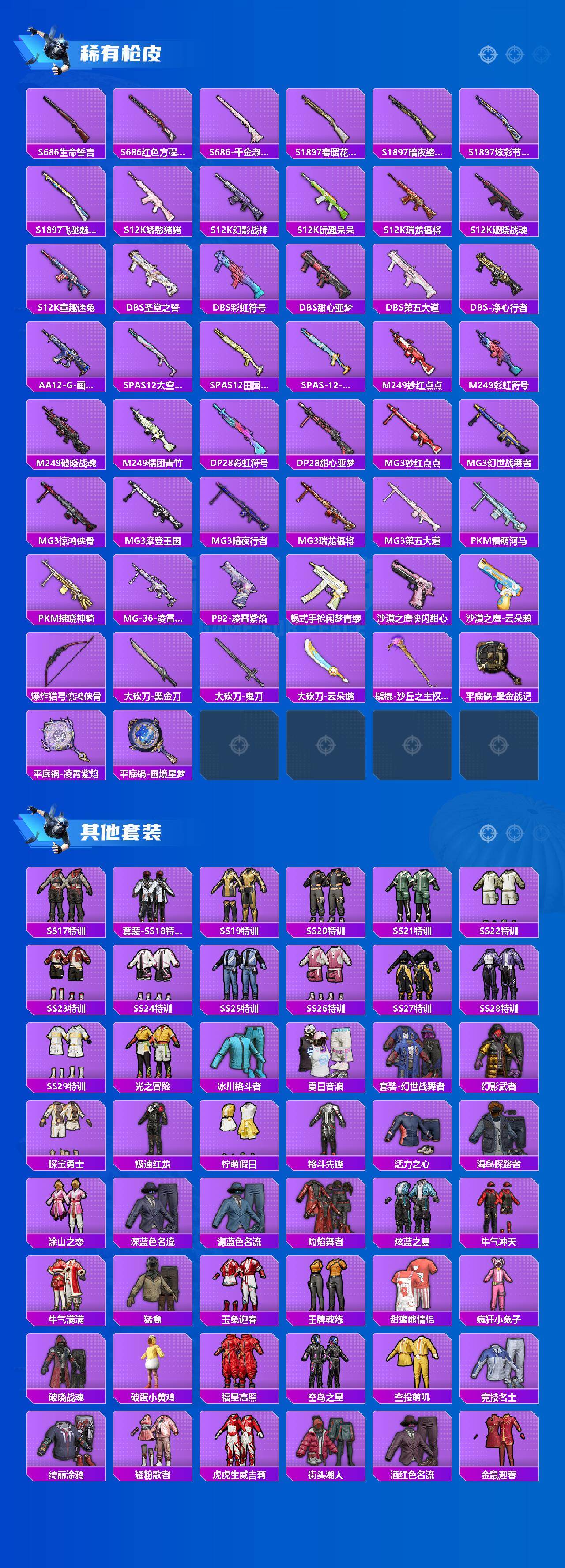 【1467】df苹果 微信-【极品公主号,素材号,老101,5级星梦aug,火箭头,小金鞋,小白龙】14粉装-8特效呛-1载具-6粉色飞行器-85610热力值-15王牌印记-181套装-239呛皮 【热门品类】:粉装-梦幻火箭,套装-火箭少女101,套装-派对舞王,角色-2b战斗服款,套装-龟仙人 【粉色套装】:粉装-幻影战神,粉装-天使彩虹糖,粉装-梦幻火箭,粉装-新星烈龙,角色-复仇流浪者,粉装-暗夜鎏金,粉装-第五大道,粉装-挚爱序曲,角色-阿尔茜,粉装-拂晓神骑,角色-宙之时溯,粉装-莲影清波,粉装-傲傲奶龙,粉装-桃粉嫣然 【粉色呛皮等级】:akm-梦之光华七级,scar-l-纯梦嫁纱七级,aug-星梦奇缘五级,vect-环太平洋七级,aks-74u-森灵之息四级,kar98k-巳巳如意五级,mk14-精灵梦叶罗丽七级,dp-28-豹影疾电五级 【粉色载具】:星梦玉骢 【粉色呛皮】:akm-梦之光华,scar-l-纯梦嫁纱,aug-星梦奇缘,vect-环太平洋,aks-74u-森灵之息,kar98k-巳巳如意,mk14-精灵梦叶罗丽,dp-28-豹影疾电 【粉色飞行器】:齐天大圣飞行器,太空嘟嘟飞行器,黄族统领飞行器,萌物绒绒飞行器,沙丘之主天马 【粉色降落伞】:快乐主宰降落伞,幻影战神降落伞,梦幻火箭降落伞,洛神天依降落伞,庄周梦蝶降落伞,炙焰牛王降落伞,环太平洋降落伞,暗夜鎏金降落伞,第五大道降落伞,仲夏莫吉托降落伞,龙珠超降落伞,闲梦青缨降落伞,熔岩统帅降落伞,圣堂之誓降落伞,祥瑞锦鲤降落伞,辉耀战甲降落伞,星梦奇缘降落伞,幽焰骑士降落伞,临安公主降落伞,智耀战神降落伞,绯穹魔姬降落伞,炫彩糖果降落伞 【稀有套装】:套装-龟仙人,套装-巳巳如意,套装-炫彩糖果,套装-火种守卫者,套装-糖糖葫芦,套装-青团波波,角色-都市丽猫,角色-摩登魅猫,角色-临安公主,角色-怀庆长公主,套装-燕燕于飞,套装-鱼渊荷华,角色-海琴烟,套装-风舞幻音,套装-紫幽梦,套装-蓝冰羽,套装-极速光影,套装-彩虹兔,套装-云朵鹅,套装-雪绒豹,套装-朱霞炽焰,套装-凌霄紫焰,套装-书海巡游,套装-画境星梦,套装-琴音绮想 【稀有呛皮】:akm-彩虹符号,akm-灼热熔岩,akm-王牌投手,akm-破晓战魂,akm-虎虎生威,akm-龙的传人,m16a4-幻世战舞者,m16a4-快乐主宰,m16a4-甜心亚梦,m16a4-红色方程式,scar-l-玉兔迎春,scar-l-红色方程式,m416-快乐主宰,m416-糯团青竹,m416-红色方程式,groza-2b战斗服款,groza-异彩先驱,groza-恐龙拽拽,groza-懵萌河马,groza-春暖花开,groza-田园牧歌,aug-天降萌叽,aug-幻影战神,aug-灵符少年,q-未来歌姬,q-银碳小老虎,q-飞驰魅影,m762-天降萌叽,m762-快乐主宰,m762-暗夜鎏金,m762-瑞龙福将,m762-甜心宝贝,m762-第五大道,m762-萌物绒绒,m762-云朵鹅,mk47-妙红点点,mk47-摩登王国,g36c-懵萌河马,ac-val-天降萌叽,ac-val-快闪甜心,ac-val-甜心亚梦,蜜獾-垂柳戏鸭,蜜獾-天降萌叽,蜜獾-娇憨猪猪,ace32-画境星梦,arx-凌霄紫焰,uzi-啾咪啾咪,uzi-娇憨猪猪,uzi-幻影战神,uzi-炫彩节奏,uzi-红色方程式,ump45-繁龙极客,ump45-仲夏莫吉托,ump45-快乐主宰,ump45-涂山之恋,ump45-生命誓言,vect-暗夜玫瑰,vect-田园牧歌,汤姆逊-天降萌叽,汤姆逊-幻影战神,汤姆逊-庄周梦蝶,汤姆逊-异彩先驱,汤姆逊-暗夜鎏金,mp5k-异彩先驱,mp5k-画境星梦,js9-凌霄紫焰,p90-快闪甜心,p90-飞驰魅影,kar98k-彩虹符号,kar98k-梦幻火箭,kar98k-炫彩节奏,kar98k-红色方程式,kar98k-飞驰魅影,m24-炫彩节奏,m24-幻彩电音,awm-垂柳戏鸭,awm-音爆索尼克,sks-未来歌姬,sks-焦糖拿铁,sks-糯团青竹,sks-迅猛狂鲨,vss-星之彼岸,vss-田园牧歌,mini14-千面幻镜,mini14-异彩先驱,mini14-旋转彩虹,mini14-梦幻火箭,mini14-涂山之恋,win94-瑞龙福将,win94-萝萝小趴兔,slr-娇憨猪猪,slr-彩虹符号,slr-墨龙九天,莫辛纳甘-懵萌河马,amr-妙红点点,m417-惊鸿侠骨,m417-幻影飞狐,mk20-h-快闪甜心,m200-仲夏莫吉托,m200-惊鸿侠骨,svd-云朵鹅,m1加兰德-画境星梦,s686-生命誓言,s686-红色方程式,s686-千金淑猫,s1897-春暖花开,s1897-暗夜鎏金,s1897-炫彩节奏,s1897-飞驰魅影,s12k-玩趣呆呆,s12k-瑞龙福将,s12k-破晓战魂,s12k-童趣迷兔,s12k-娇憨猪猪,s12k-幻影战神,dbs-圣堂之誓,dbs-彩虹符号,dbs-甜心亚梦,dbs-第五大道,dbs-净心行者,aa12-g-画境星梦,spas-12-太空嘟嘟,spas-12-田园牧歌,spas-12-云朵鹅,m249-妙红点点,m249-彩虹符号,m249-破晓战魂,m249-糯团青竹,dp-28-彩虹符号,dp-28-甜心亚梦,mg3-妙红点点,mg3-幻世战舞者,mg3-惊鸿侠骨,mg3-摩登王国,mg3-暗夜行者,mg3-瑞龙福将,mg3-第五大道,pkm-懵萌河马,pkm-拂晓神骑,mg-36-凌霄紫焰,p92-凌霄紫焰,蝎式手呛-闲梦青缨,沙墨之鹦-快闪甜心,沙墨之鹦-云朵鹅,爆炸猎弓-惊鸿侠骨,大砍刀-云朵鹅,大砍刀-黑金刀,大砍刀-鬼刀,撬棍-沙丘之主权杖,平底锅-凌霄紫焰,平底锅-墨金战记,平底锅-画境星梦 【其他套装】:套装-ss17特训,套装-ss18特训,套装-ss19特训,套装-ss20特训,套装-ss21特训,套装-ss22特训,套装-ss23特训,套装-ss24特训,套装-ss25特训,套装-ss26特训,套装-ss27特训,套装-ss28特训,套装-ss29特训,套装-光之冒险,套装-冰川格斗者,套装-夏日音浪,套装-幻世战舞者,套装-幻影武者,套装-探宝勇士,套装-极速红龙,套装-柠萌假日,套装-格斗先锋,套装-活力之心,套装-海岛探路者,套装-涂山之恋,套装-深蓝色名流,套装-湖蓝色名流,套装-灼焰舞者,套装-炫蓝之夏,套装-牛气冲天,套装-牛气满满,套装-猛禽,套装-玉兔迎春,套装-王牌教练,套装-甜蜜熊情侣,套装-疯狂小兔子,套装-破晓战魂,套装-破蛋小黄鸡,套装-福星高照,套装-空岛之星,套装-空投萌叽,套装-竞技名士,套装-绮丽涂鸦,套装-耀粉歌者,套装-