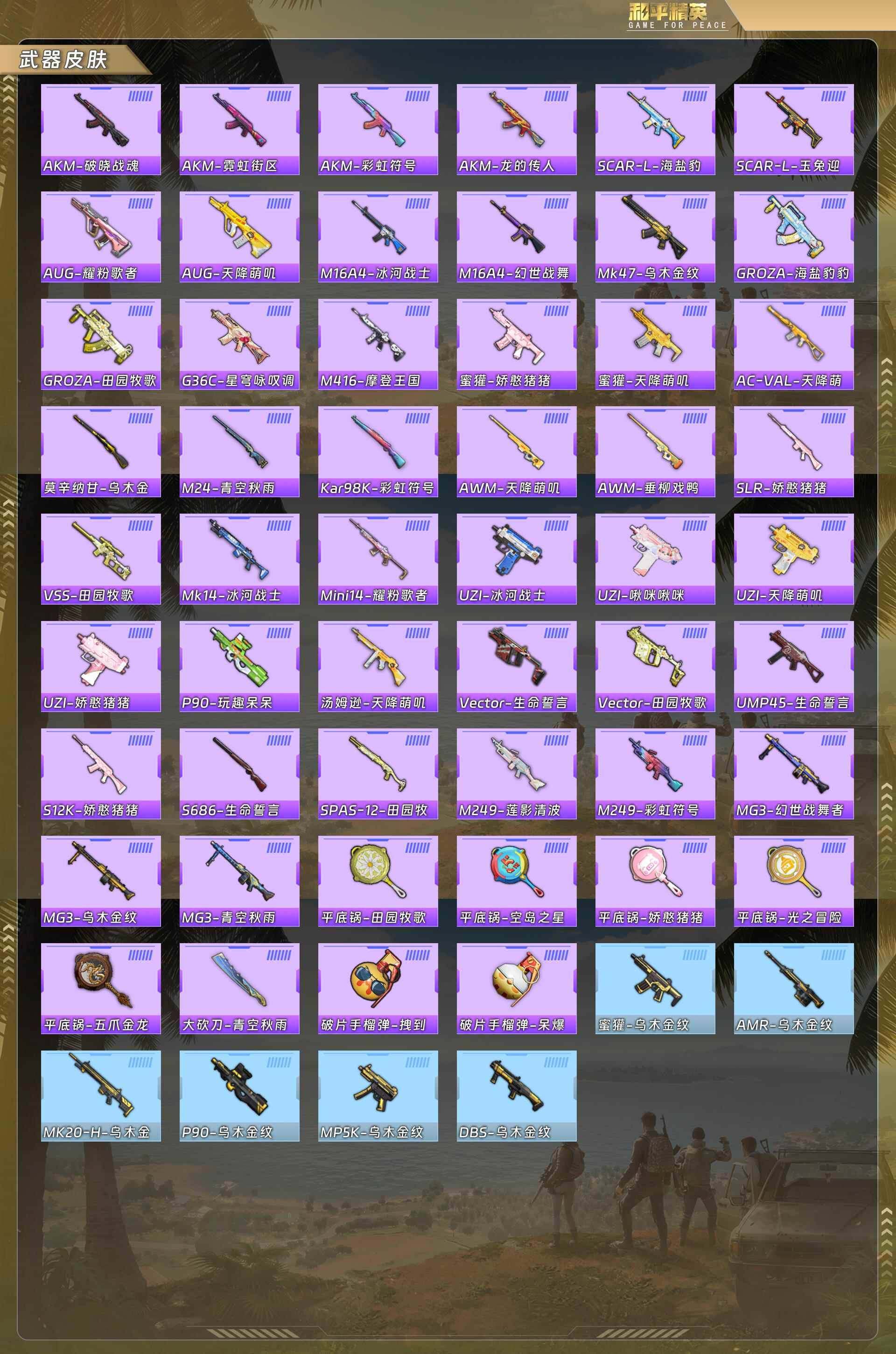 浪漫天命/新星烈龙/青空秋雨/akm-星际浪客[5级]/野牛-青空秋雨[4级]/没战神框 hp5665 【热门品类】:套装-浪漫天命,套装-龟仙人 【粉色套装】:粉装-新星烈龙,粉装-青空秋雨 【粉色呛皮等级】:akm-星际浪客五级,野牛-青空秋雨四级 【粉色呛皮】:akm-星际浪客,野牛-青空秋雨 【粉色降落伞】:垂柳戏鸭降落伞,彩虹甜喵降落伞,青空秋雨降落伞,闲梦青缨降落伞 【稀有套装】:套装-龟仙人 【稀有呛皮】:akm-彩虹符号,akm-破晓战魂,akm-霓虹街区,akm-龙的传人,m16a4-幻世战舞者,scar-l-玉兔迎春,m416-摩登王国,groza-田园牧歌,aug-天降萌叽,aug-耀粉歌者,g36c-星穹咏叹调,ac-val-天降萌叽,蜜獾-天降萌叽,蜜獾-娇憨猪猪,uzi-啾咪啾咪,uzi-天降萌叽,uzi-娇憨猪猪,ump45-生命誓言,vect-生命誓言,vect-田园牧歌,汤姆逊-天降萌叽,kar98k-彩虹符号,m24-青空秋雨,awm-垂柳戏鸭,vss-田园牧歌,mini14-耀粉歌者,slr-娇憨猪猪,s686-生命誓言,s12k-娇憨猪猪,spas-12-田园牧歌,m249-彩虹符号,m249-莲影清波,mg3-幻世战舞者,mg3-青空秋雨,大砍刀-青空秋雨 【其他套装】:套装-ss21特训,套装-ss22特训,套装-ss23特训,套装-ss25特训,套装-ss26特训,套装-ss27特训,套装-ss28特训,套装-ss29特训,套装-人气偶像,套装-冷焰舞者,套装-吉莉礼服,套装-夏日倾情,套装-完美偶像,套装-橘黑制服,套装-浪漫天命,套装-燃烧卡路里,套装-牛气满满,套装-白色伏地魔,套装-破蛋小黄鸡,套装-空岛之星,套装-竞技名士,套装-红色运动,套装-绮丽涂鸦,套装-缤纷果语,套装-长空猛禽,套装-霓虹街区,套装-青春校园,套装-魅力单车,套装-麻辣教官,套装-黄色运动,套装-黑色伏地魔,套装-龙的传人,套装-龟仙人,套装-极地朋克,套装-夜莺强袭者,套装-雪山征服者,套装-智慧之神,套装-潮流游乐家,套装-竞技角斗士,套装-娇憨猪猪,套装-萌趣咩咩,角色-赵灵儿,套装-酸甜橘柚,套装-田园牧歌,套装-轻风白浪,套装-照水倚天,套装-白啸长虹,角色-蝶吟花词 【营地id】:916935326