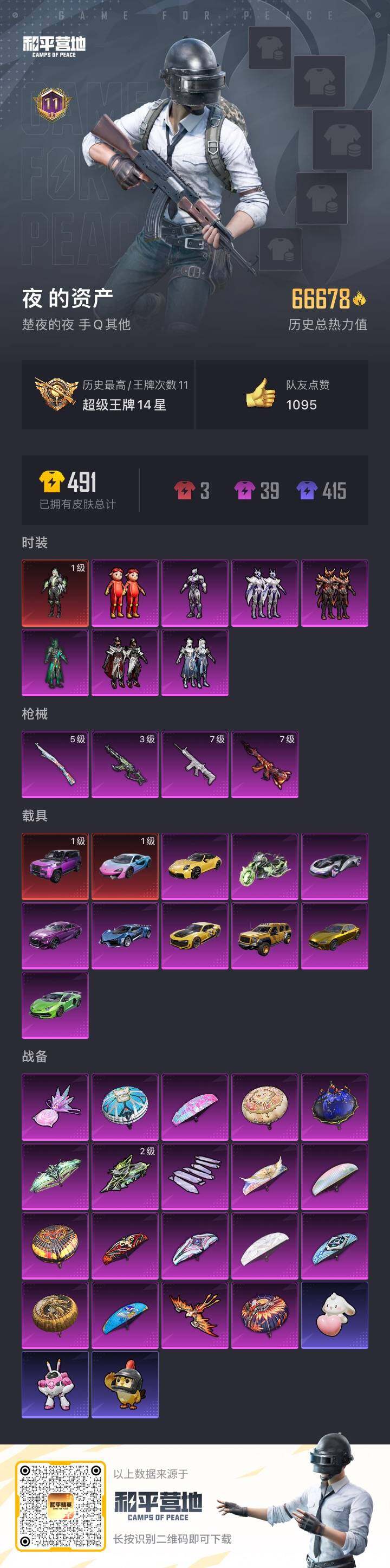 [16614125]"dfz377有二次 钱包未注销 安卓q-1红装11载具7粉装4特效呛6热门90套装132呛皮 66678热力值 11印记 历史超级王牌14星 幽焰骑士-维塔 1级 scar-l-纯梦嫁纱 7级 akm-幽焰骑士 3级 仰望u8雷霆紫 1级 乔治巴顿辉煌金 【1红装】 幽焰骑士-维塔 1级 【11载具】 仰望u8雷霆紫 1级 乔治巴顿辉煌金 玛莎拉蒂金色 保时捷911敞篷版极速黄 宾利batur极速紫 迈凯伦570s炫冰蓝 1级 兰博svj绿色 时空跃影星辉银 幻影随行 永恒黄蜂 幽焰风驰摩托车 【7粉装】 猪猪侠 木曜青龙 紫钛骑兵 紫电风暴 赤焰黑爵 沙场疾风 吟月归客 【4特效呛】 scar-l-纯梦嫁纱 7级 akm-幽焰骑士 3级 kar98k-巳巳如意 5级 m416-风花雪月 7级 【6热门】 mark.06 龟仙人 迪迦奥特曼 破蛋小黄鸡 vect-风花雪月 m762-风花雪月 【1飞行器】 风花雪月飞行器 【1头盔】 心之恋语头盔 【1背包】 水曜玄武背包"