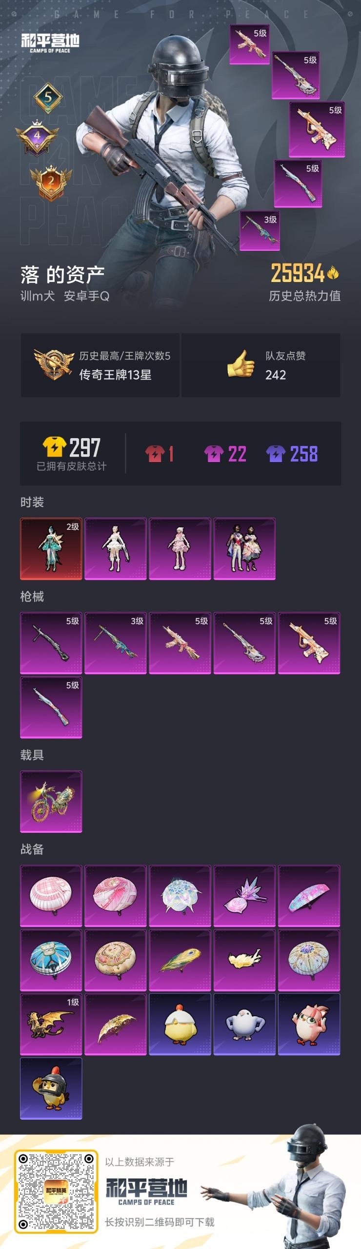 1载具-42套装-66呛皮-[]1红装 3粉装 6特效呛 1载具 5印记 可二次 【二级神装】二级辉羽雀灵-初翊2初翊级 【热门装扮】千金淑猫羊梦糖心星穹咏叹调 【载具】辉羽雀灵自行车 【稀有呛皮】aug-暖羊咩咩amr-智耀战神aks-74u-星穹咏叹调mg3-辉羽雀灵kar98k-巳巳如意