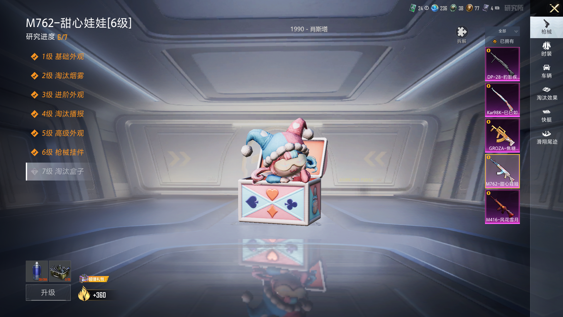实名: 可修改 时装数: 587 载具数: 2 呛械数: 140 战备数: 101 热门装扮: 呆萌铁蟹宝贝奶油派迅捷狂鲨鹰眼刺客雪国幻梦沙场疾风精灵娃娃酣梦娃娃碧影闪光海渊国主激萌罗小黑暗夜魅影千金淑猫 载具: 焰龙咆哮兰博基尼estoque银翼灰 稀有呛皮: m41
