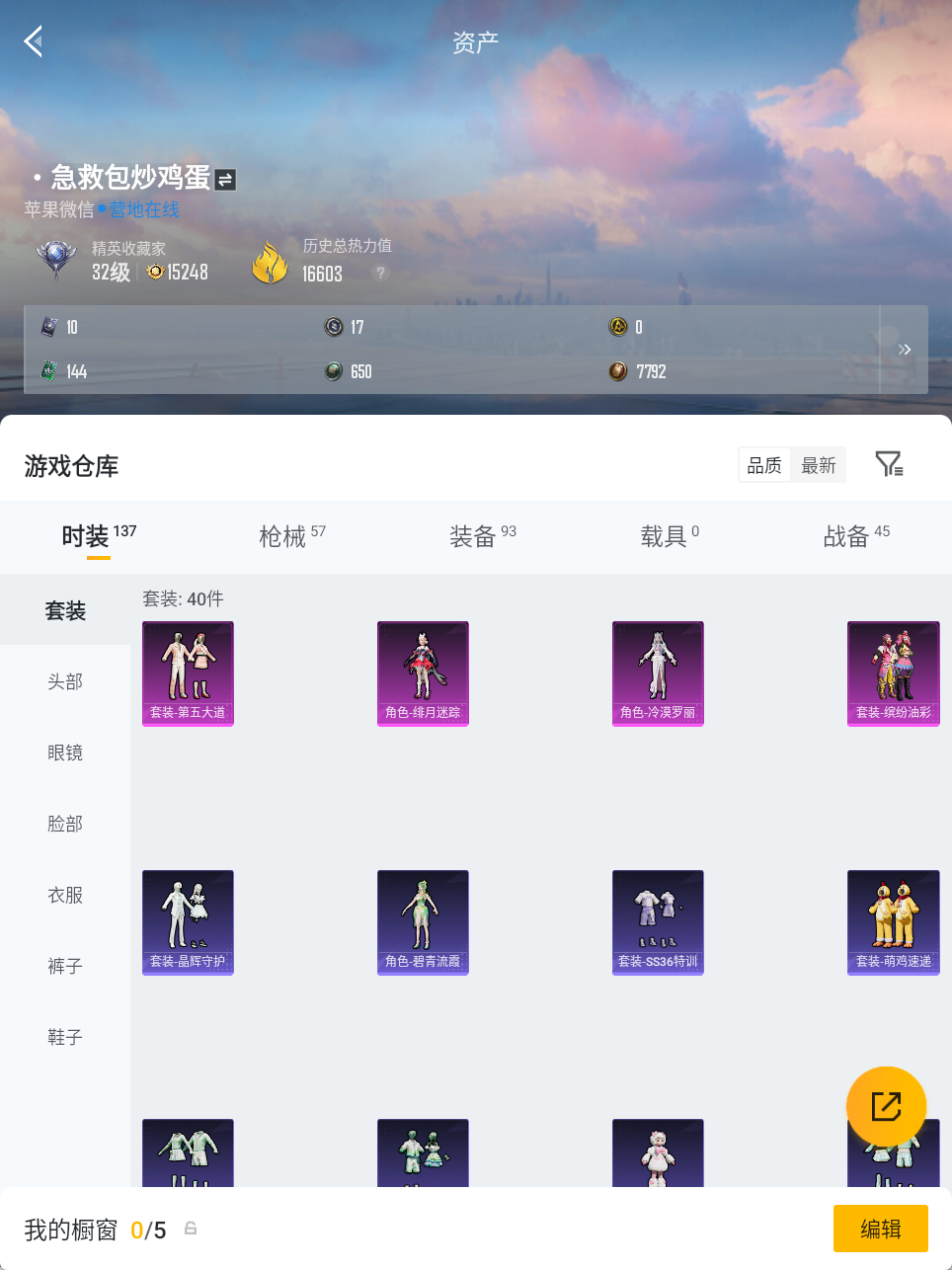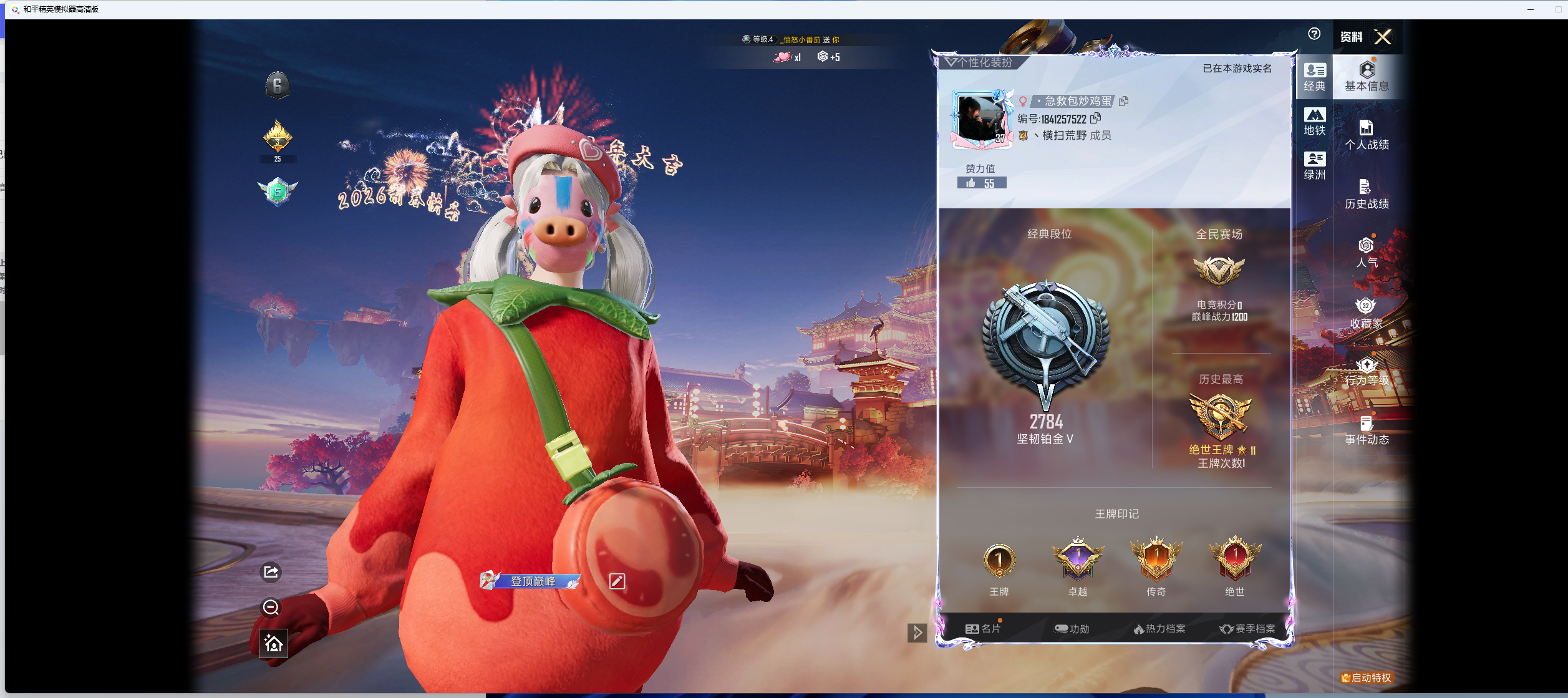 【精品号手慢无】1王牌印记1卓越1传奇1绝世 32收藏家 16603热力值 热门装扮小番茄 4粉装 1粉呛 10粉降落伞 1滑翔尾迹..