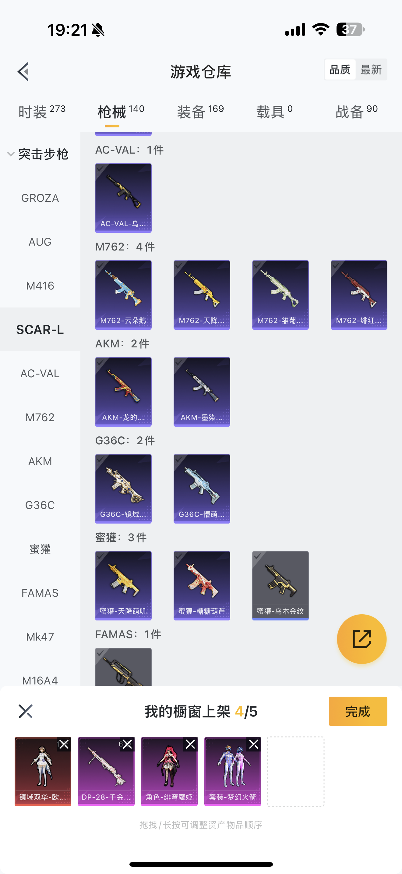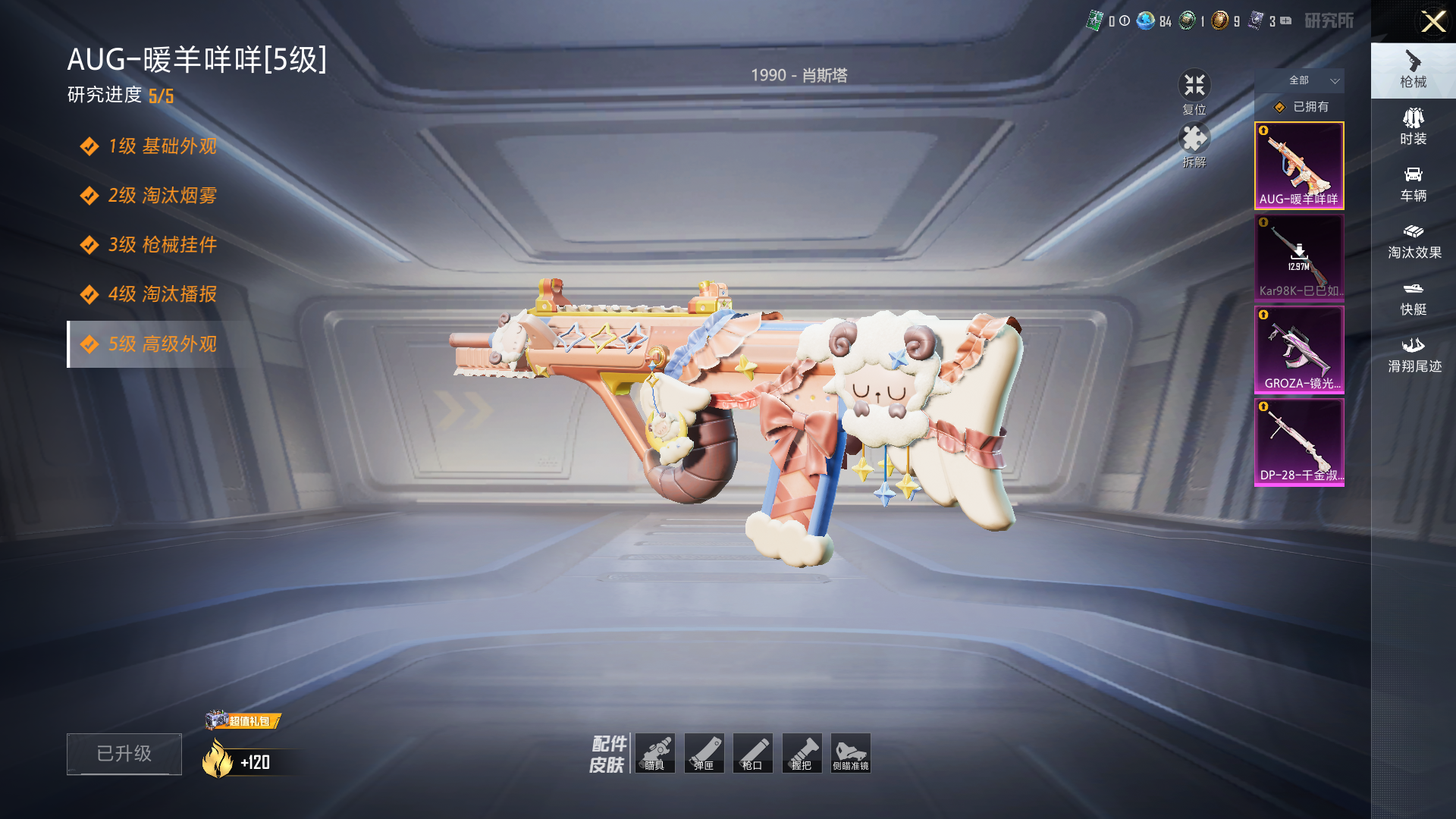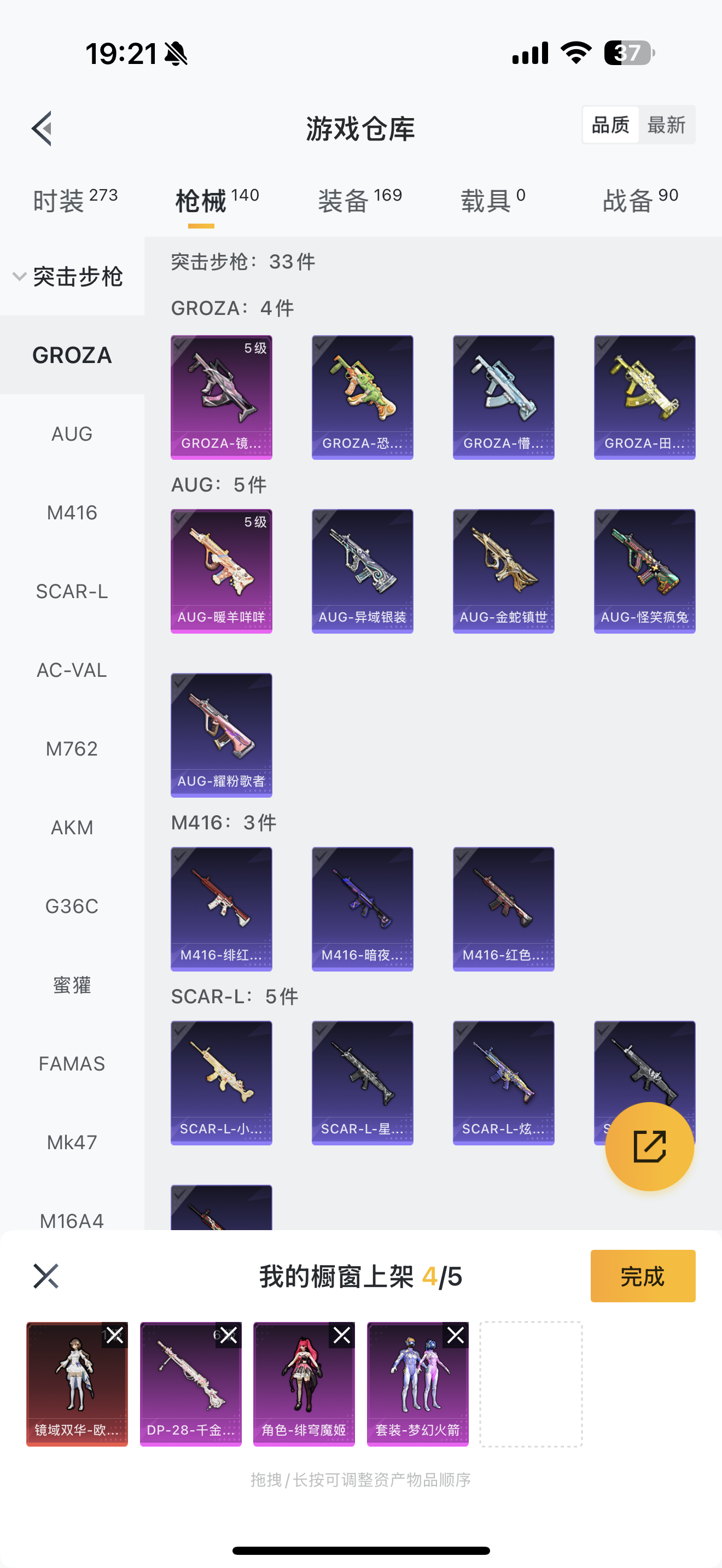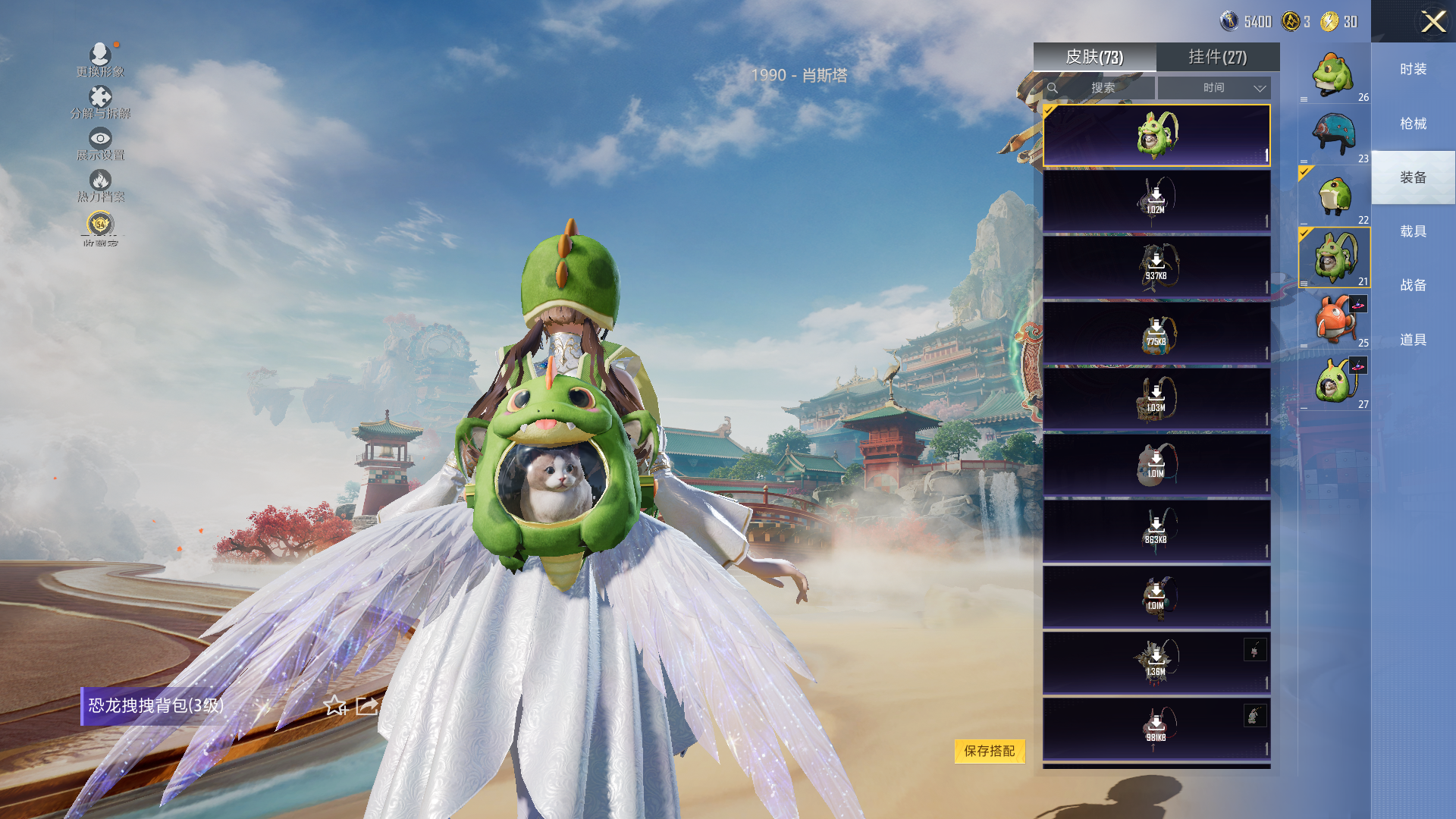 0载具-0套装-140呛皮-实名: 可修改 时装数: 273 呛械数: 140 战备数: 90 神级装扮: 镜域双华-欧若拉 热门装扮: 梦幻火箭新101深海小丑鱼猪猪侠萨利娅绯穹魔姬 稀有呛皮: dp-28-千金淑猫groza-镜光银凌kar98k-巳巳如意aug-暖羊咩咩