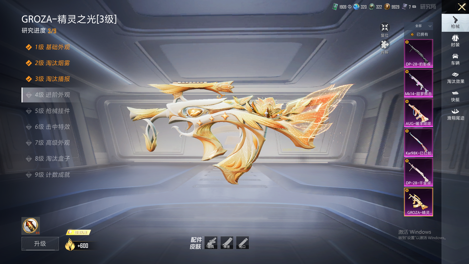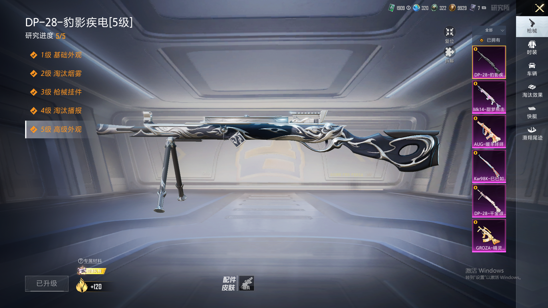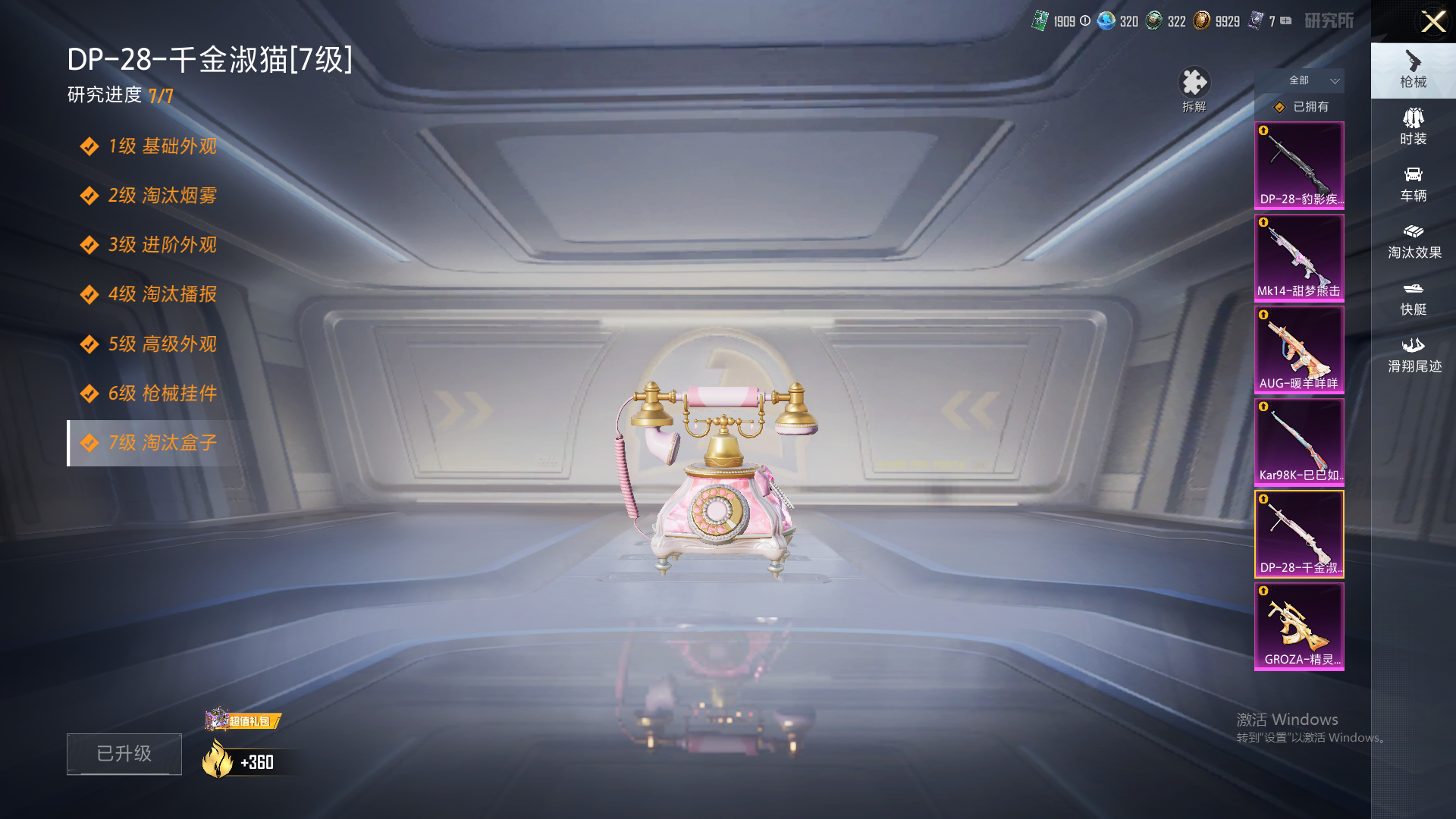 【精品号手慢无】可换绑 时装318 呛械144 载具1 战备86 英伦信使千金淑猫雪月幻音 星河领航磐石银 七级dp-28-千金淑猫 五级kar98k-巳巳如意五级aug-暖羊咩咩五级14-甜梦熊击五级dp-28-豹影疾电 三级groza-精灵之光