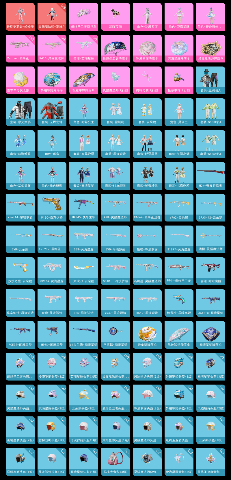 【和平精英】【lyhp21971】3粉装,5特效呛,2载具,历史最高段位:卓越王牌12星 王牌印记4次 热力值:33821,66套装,97呛械,113装备,61战备;套装:最终圣卫者-帕修斯,灵猫魔法师-塞维尔,角色-冷漠罗丽,角色-荧海星豚,角色-奇迹舞步 美琪,套装-竞技名士,套装-长空猛禽,套装-六六大吉,套装-冷焰舞者,套装-战地菁英,套装-迎春赐吉,套装-幻影武者,套装-海滨突袭者,套装-酷萌兔限定,套装-坚韧舞者,套装-夜莺强袭者,套装-野性战魂,套装-都市魅力,套装-ss2特训,套装-派对绅士,套装-极地朋克,套装-摩艾涂鸦,套装-幻世战舞者,套装-无烬之地,套装-甜蜜菠萝,套装-半糖蓝莓,套装-蓝调潮人,套装-恒星战甲,套装-午夜朋克,套装-青涩时光,套装-缤纷果语,套装-滨海厨神,套装-ss3特训,套装-破蛋小黄鸡,套装-疯狂小兔子,套装-圣诞大吉,套装-老实芭蕉,角色-绯色魅影,角色-紫俏灵猫,角色-无面战甲,套装-异域银装,套装-ss33特训,套装-云朵鹅,套装-雪绒豹,角色-时希公主,角色-灵公主,套装-蜜露汐语,套装-炫彩糖果,角色-乐音,套装-蓝海鲸歌,套装-元气之梦,套装-ss34特训,套装-薄荷星砂,套装-ss35特训,套装-午间小调,套装-秘语星愿,套装-风迹短诗,套装-琴音绮想,套装-画境星梦,套装-书海巡游,套装-阳光菠萝,套装-ss37特训,套装-ss36特训,套装-红釉青花,套装-雨过天青,套装-萌鸡速递;呛皮:groza-生命誓言,groza-无面战甲,groza-荧海星豚,groza-紫矿核心,groza-福马献瑞,m762-云朵鹅,m762-乌木金纹,ace32-画境星梦,akm-冰凉西瓜,akm-灵猫魔法师,akm-霓彩脉冲,scar-l-彩虹符号,scar-l-冷漠罗丽,5级蜜獾-荧海星豚,蜜獾-绯穹魔姬,蜜獾-风迹短诗,蜜獾-乌木金纹,famas-霓彩脉冲,famas-乌木金纹,m16a4-最终圣卫者,m16a4-雨过天青,aug-异域银装,aug-冰晶雪宝,3级m416-灵猫魔法师,m416-蓝色火焰,mk47-风迹短诗,svd-冷漠罗丽,svd-云朵鹅,svd-霓彩脉冲,win94-乌木金纹,amr-雨过天青,awm-天降萌叽,kar98k-王子的夏天,kar98k-最终圣卫者,莫辛纳甘-风迹短诗,m24-奇异狩猎者,mk14-薄荷星砂,mk12-风迹短诗,mk12-乌木金纹,sks-乌木金纹,m417-玩趣呆呆,mk20-h-狂鲨锋刃,slr-乌木金纹,m1加兰德-画境星梦,mini14-生命誓言,mini14-耀粉歌者,ump45-生命誓言,ump45-快乐主宰,3级vect-最终圣卫者,vect-魅夜紫皇,uzi-生命誓言,uzi-天降萌叽,uzi-啾咪啾咪,uzi-炫彩糖果,uzi-乌木金纹,3级aks-74u-森灵之息,aks-74u-鸡智如我,aks-74u-乌木金纹,野牛-最终圣卫者,汤姆逊-魅夜紫皇,汤姆逊-灵猫魔法师,mp5k-画境星梦,aa12-g-画境星梦,aa12-g-雨过天青,spas-12-狂鲨锋刃,spas-12-云朵鹅,s686-幽冥伯爵,dbs-荧海星豚,dbs-风迹短诗,s1897-炫彩节奏,s1897-荧海星豚,s12k-霓彩脉冲,m249-糯团青竹,m249-无面战甲,pkm-雨过天青,mg3-幻世战舞者,5级dp-28-豹影疾电,dp-28-清新柠檬,蝎式手呛-欢乐香蕉,p1911-无面战甲,信号呛-异瞳寒姬,沙墨之鹦-云朵鹅,沙墨之鹦-雨过天青,p18c-百万伏特,p92-雷霆特警,撬棍-冷漠罗丽,撬棍-灵猫魔法师,大砍刀-云朵鹅,平底锅-火吻草莓,平底锅-属我最6,平底锅-画境星梦,破片手留单-拽到爆炸,破片手留单-爆破雪人,铝热弹-炫彩糖果,十子怒-异域银装,盐雾蛋-冰氧夏日,燃烧瓶-福马献瑞;载具:最终圣卫者摩托车,黑曜夜骑;降落伞:终晖之翼飞行器,灵猫魔法师飞行器,炫彩糖果飞行器,极意拳锋飞行器,紫色滑翔尾迹,狂鲨锋刃飞行器,鸡智如我飞行器,马上有福飞行器; 详情看图2红装3粉装5特效呛2载具 3级灵猫魔法师 1级帕修斯 奇迹舞步 荧海星豚 阳光菠萝 5级蜜獾荧海星豚 3级m4灵猫魔法师 3级vect最终圣卫者 黑曜夜骑地铁满天赋